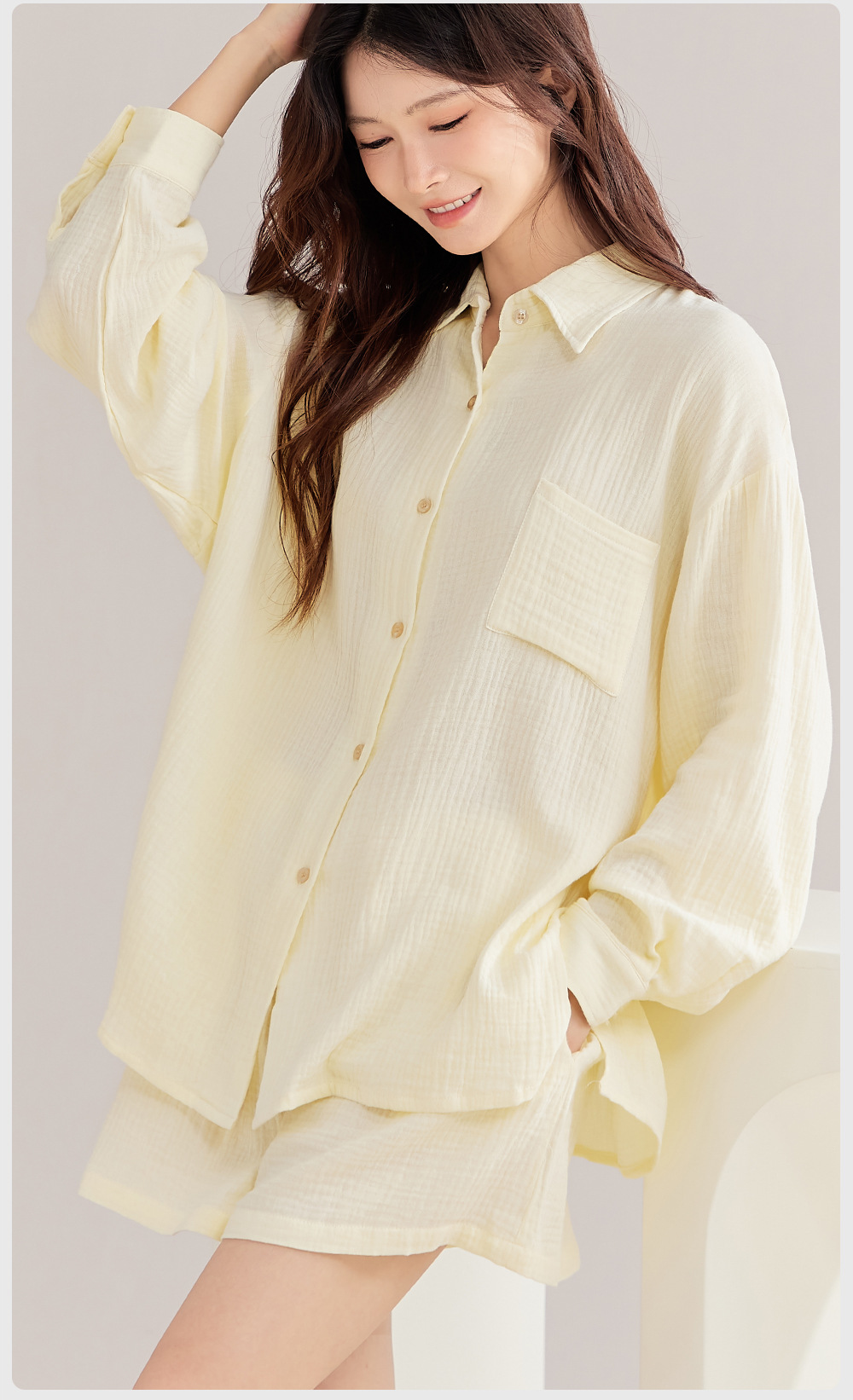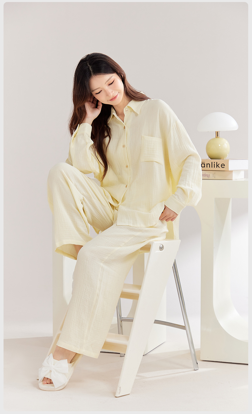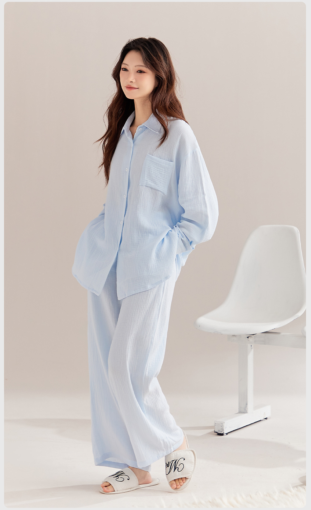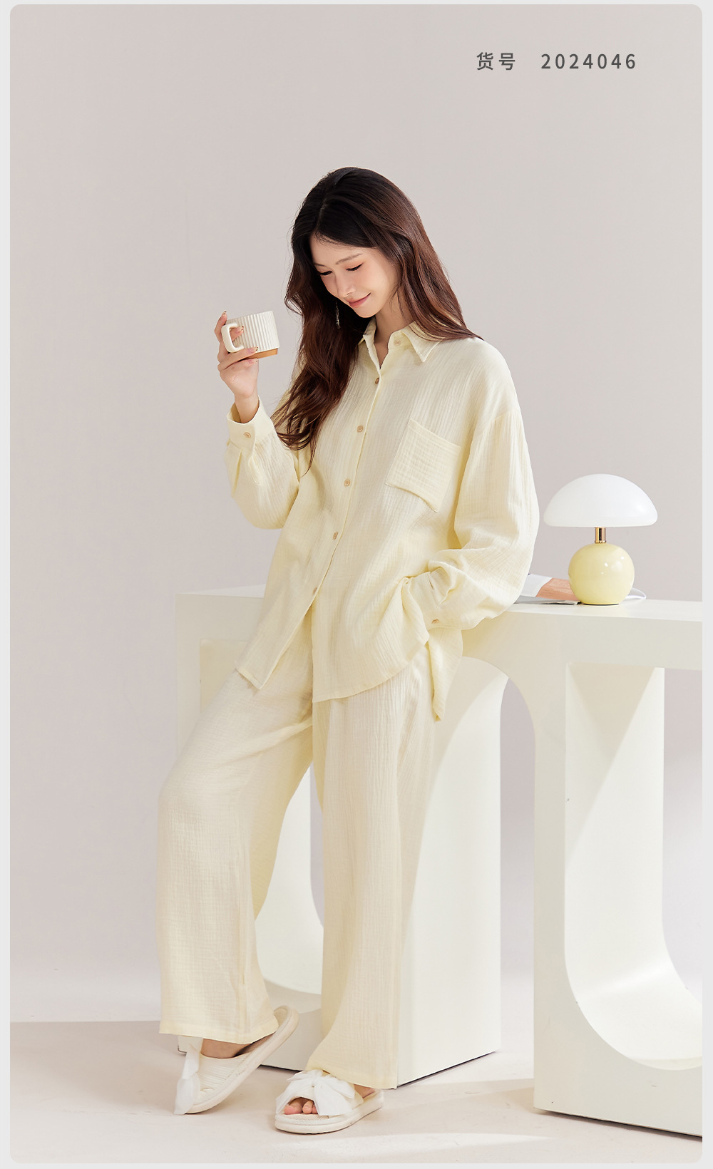 纯棉a类母婴级春秋季吸汗纱布睡衣月子服月子睡衣哺乳衣宽松版