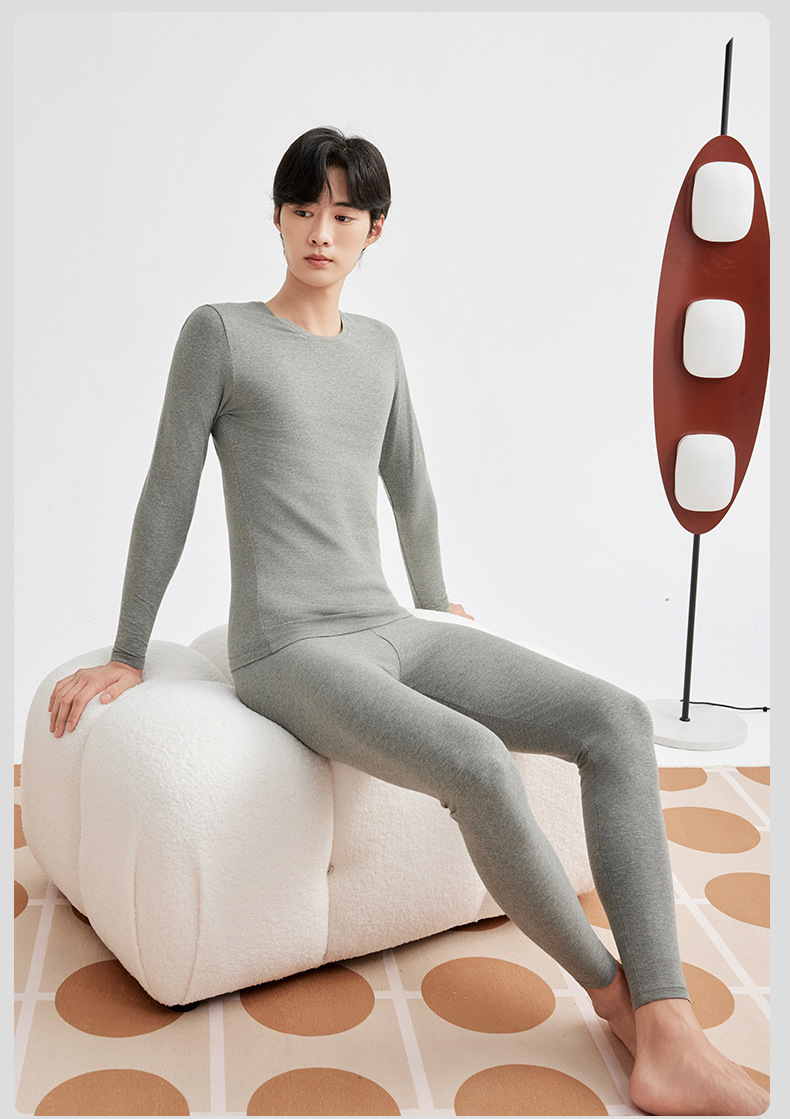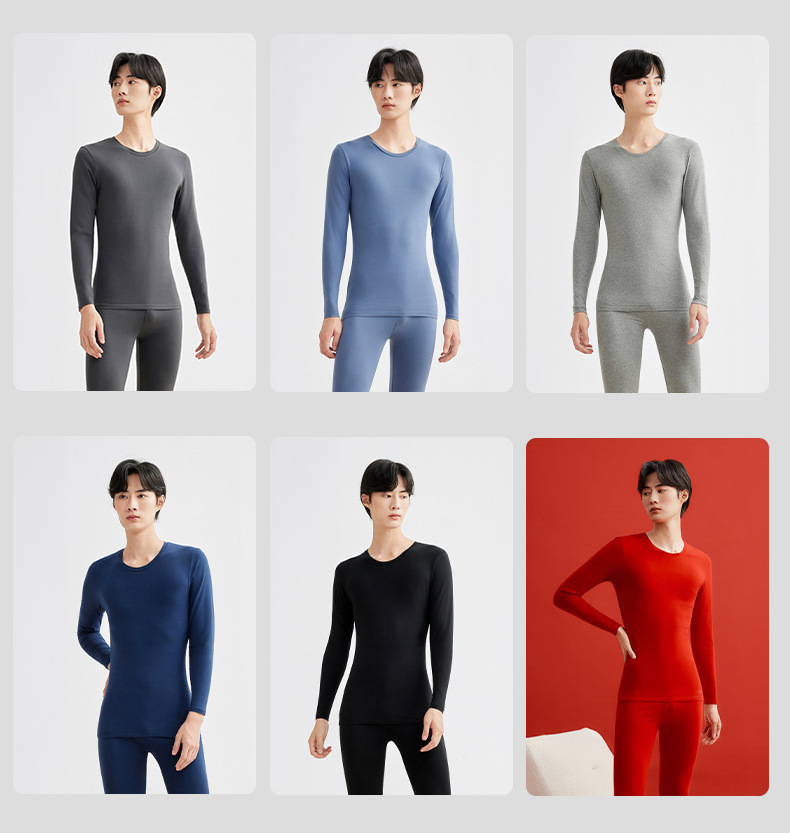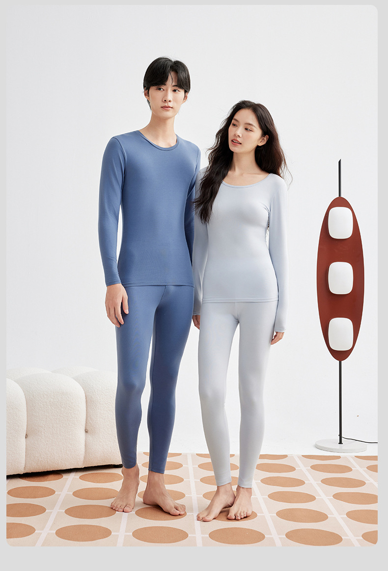 190克秋冬保暖内衣男女士套装纯棉秋衣秋裤女打底衫圆领套头发热