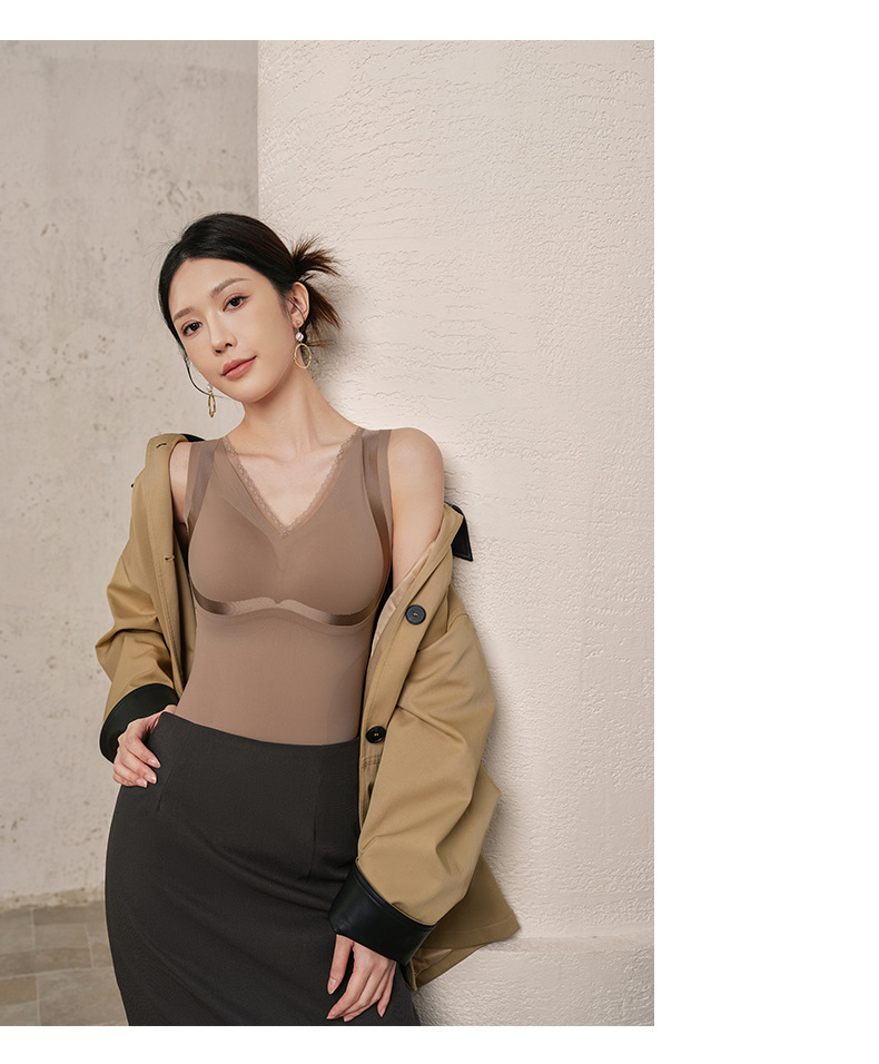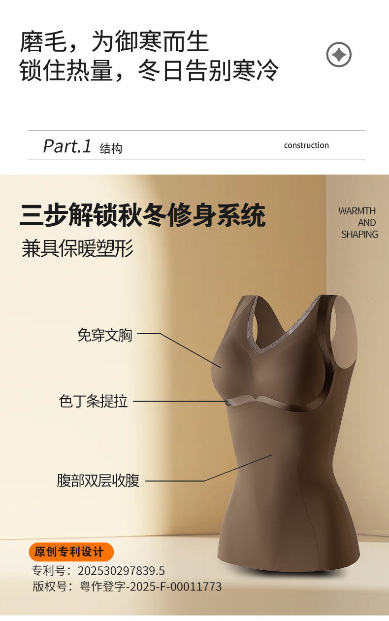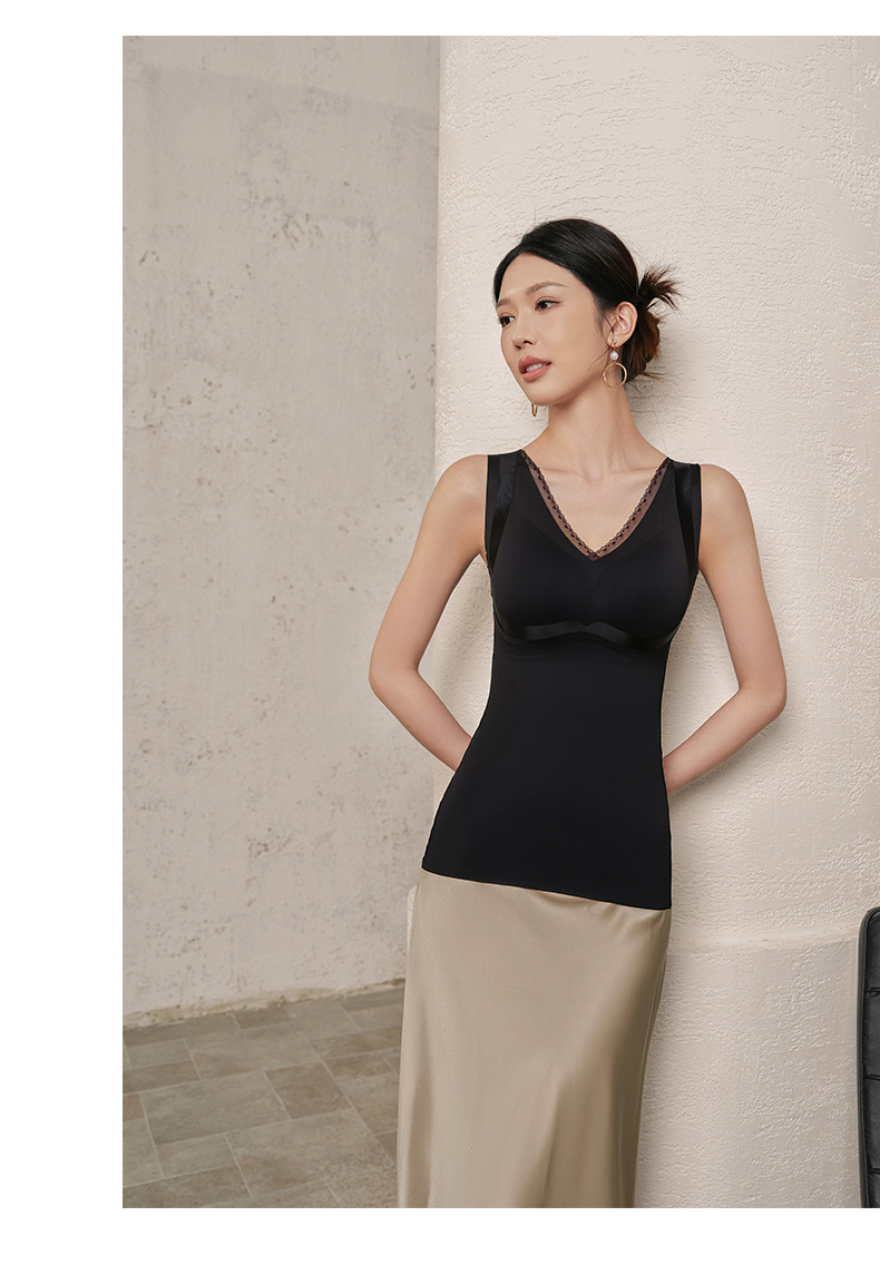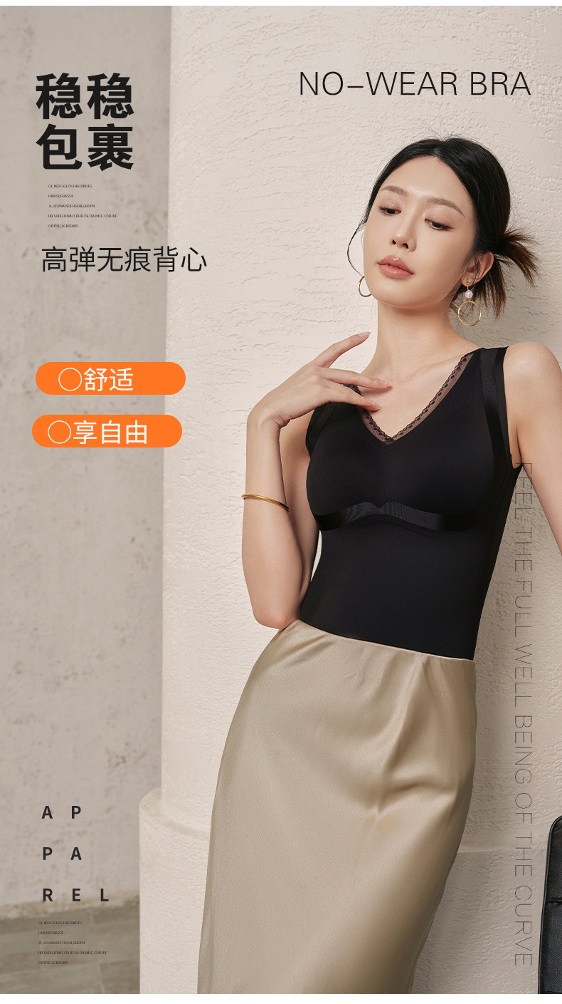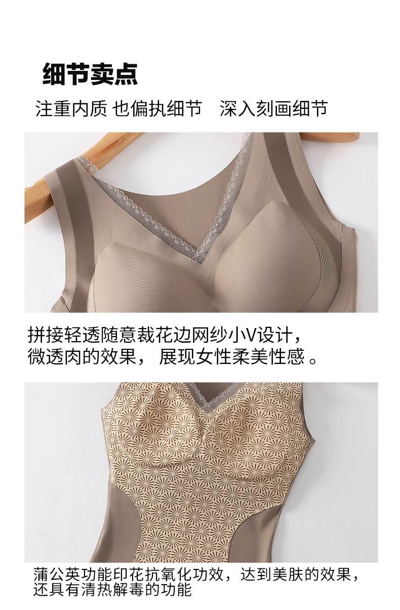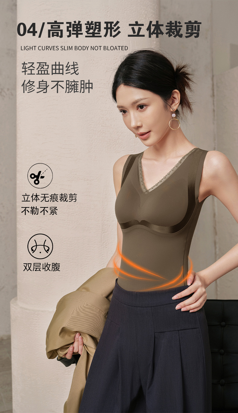 秋冬暖绒固定一体杯免穿文胸罩内搭保暖内衣女士修身打底无痕背心