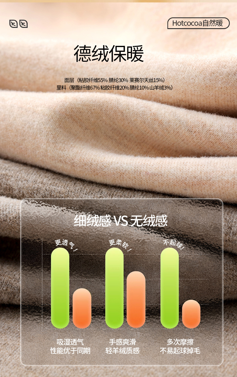 德绒保暖内衣天丝山羊绒女上衣秋冬新款秋衣发热防寒加厚修身打底