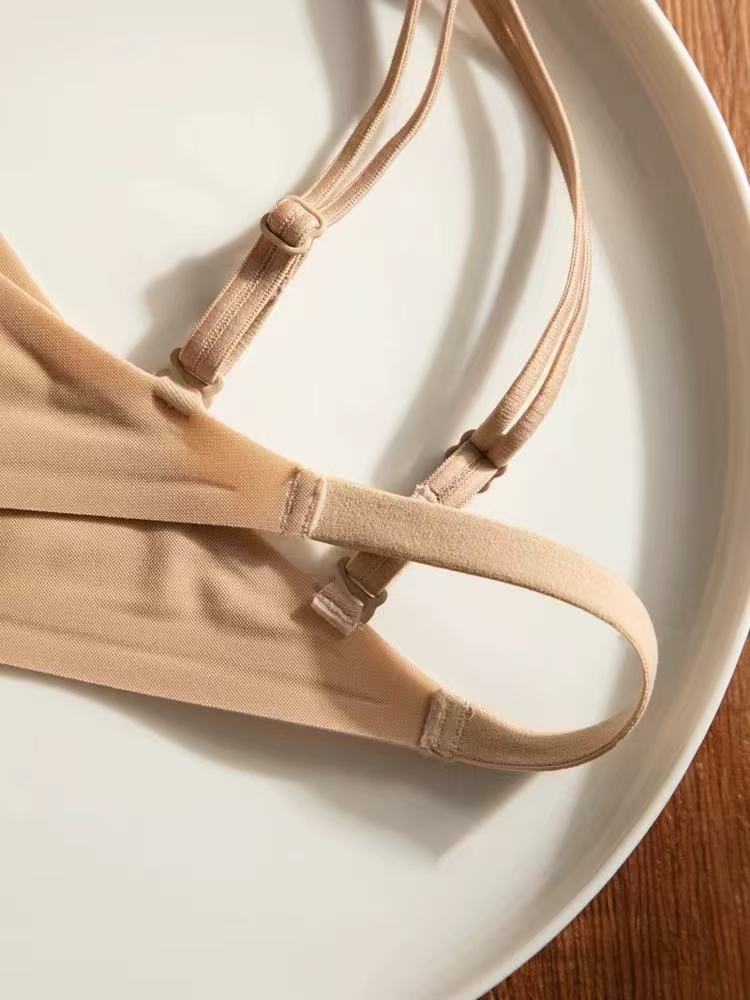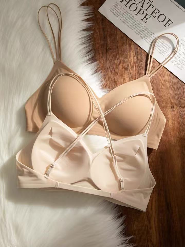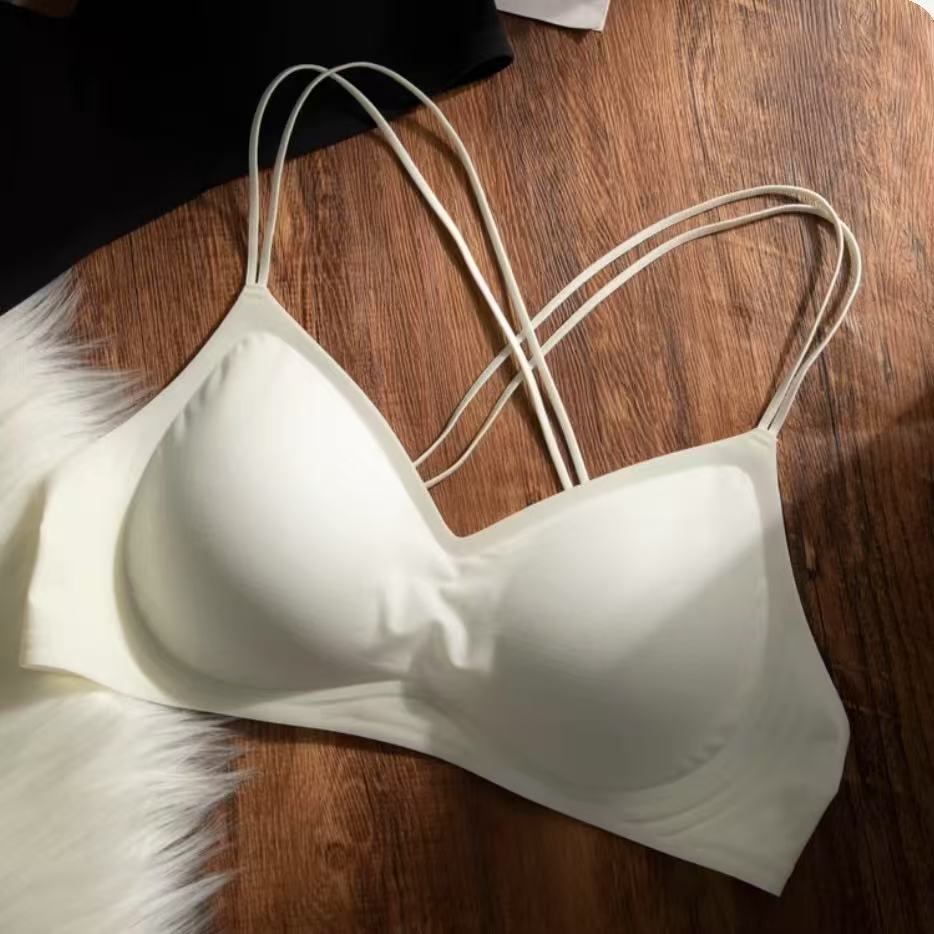 粉底液交叉美背内衣女秋季薄款小胸聚拢防下垂隐形无痕大露背文胸
