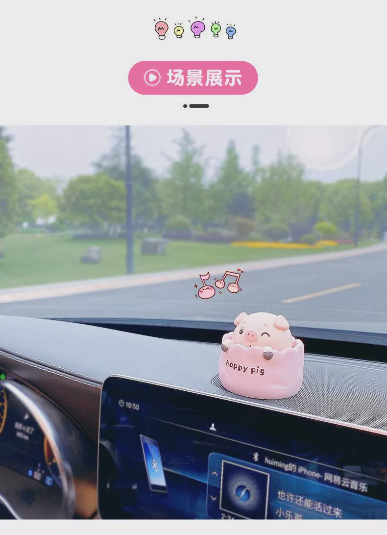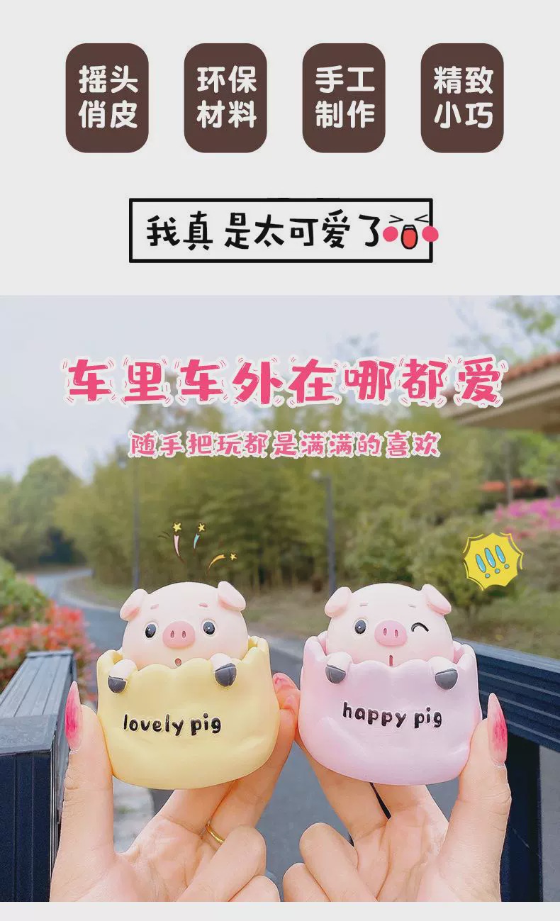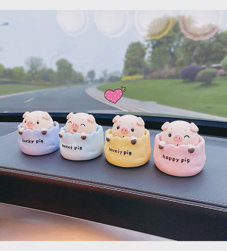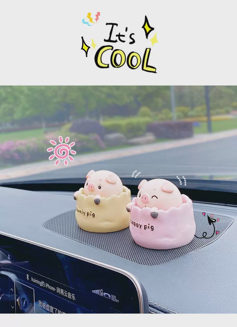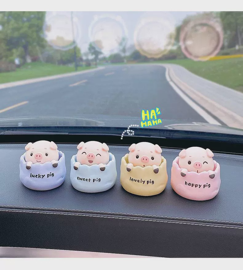 可爱精致摇头小猪汽车摆件卡通公仔电动车装饰用品车载中,控台摆