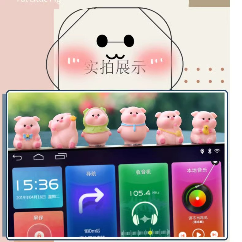 车载迷你可爱屏幕中控台摆件小猪公仔玩偶汽车装饰用品车内车上