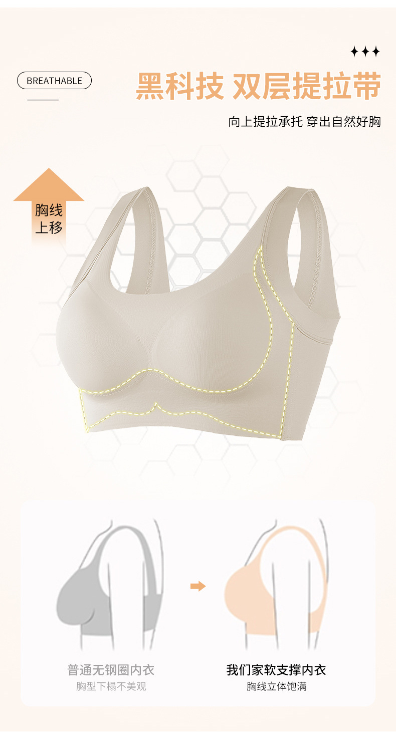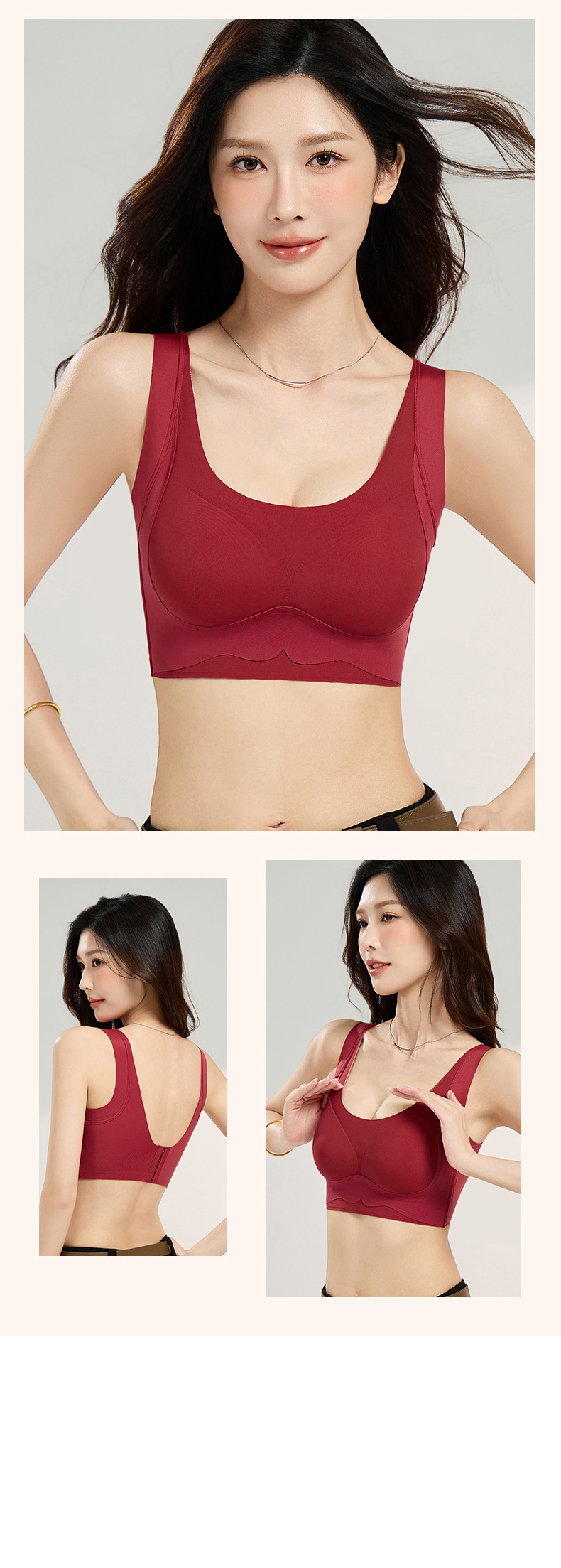 秋冬新款双层U型提拉无痕内衣女安可拉红防下垂调整型文胸罩大码