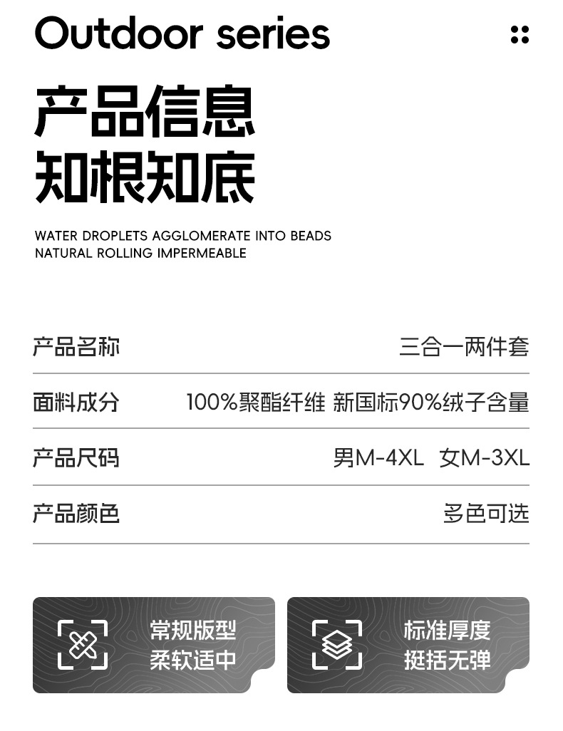 新国标90羽绒冲锋衣三合一男女防风防水可拆卸保暖外套企业团购