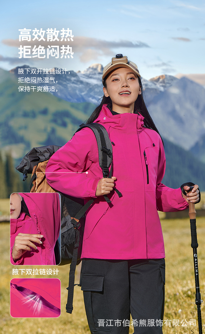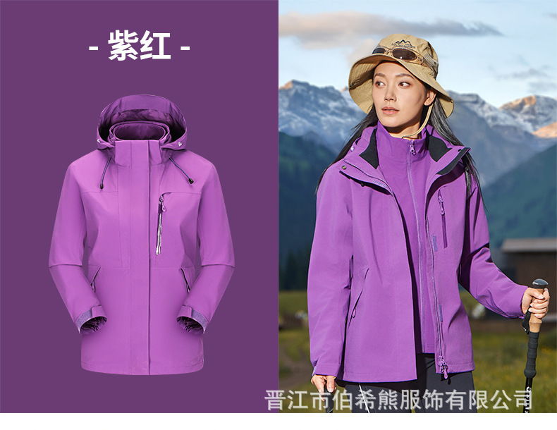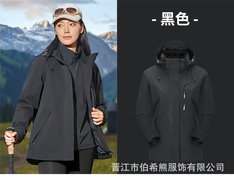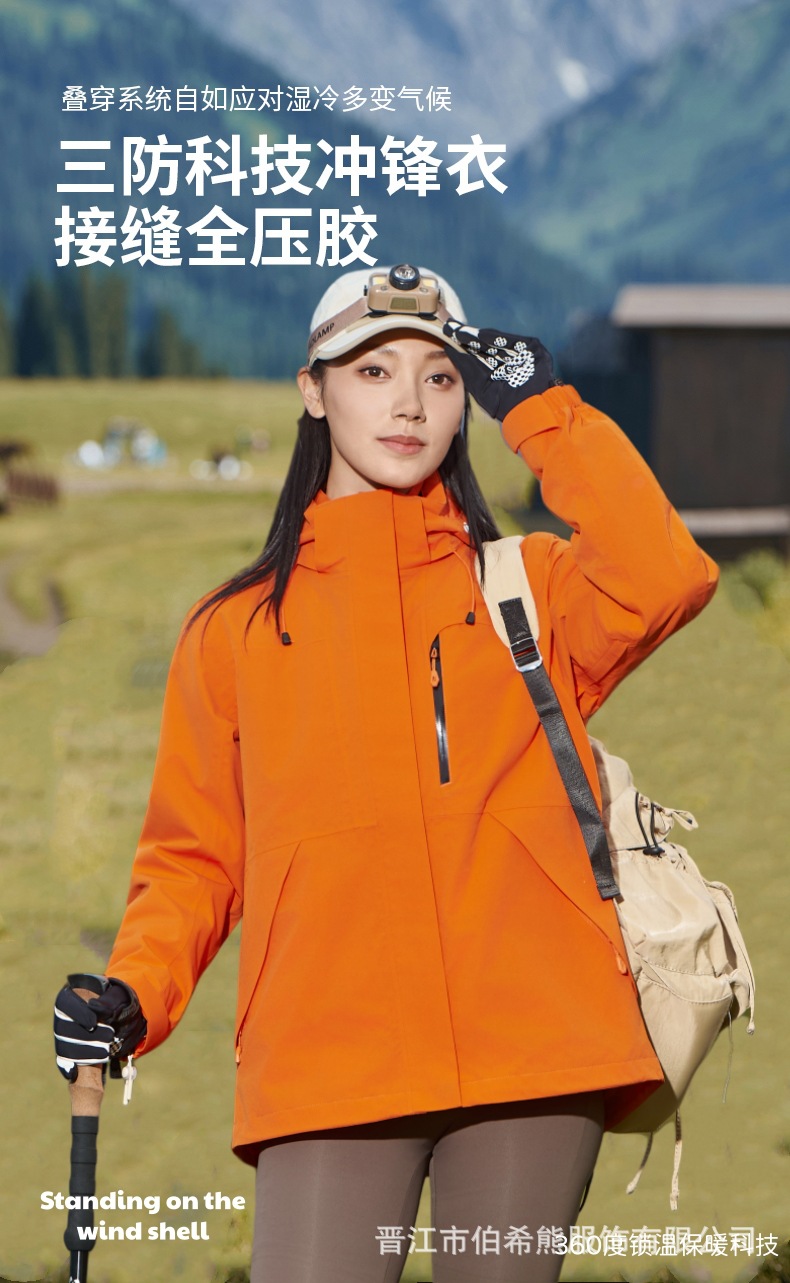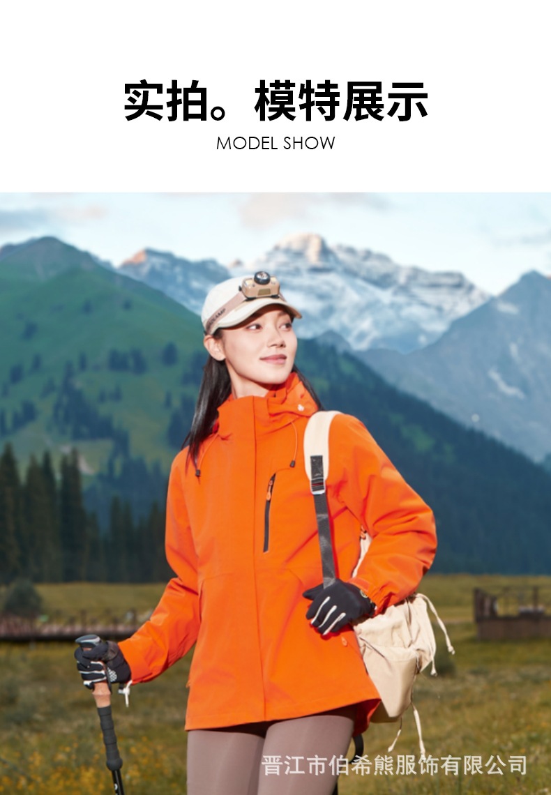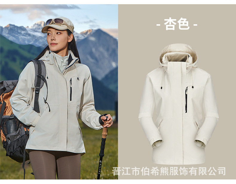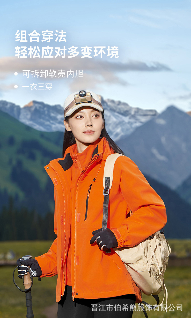 国标新款户外冲锋衣三合一女防风防水登山服外套可拆卸露营两件套