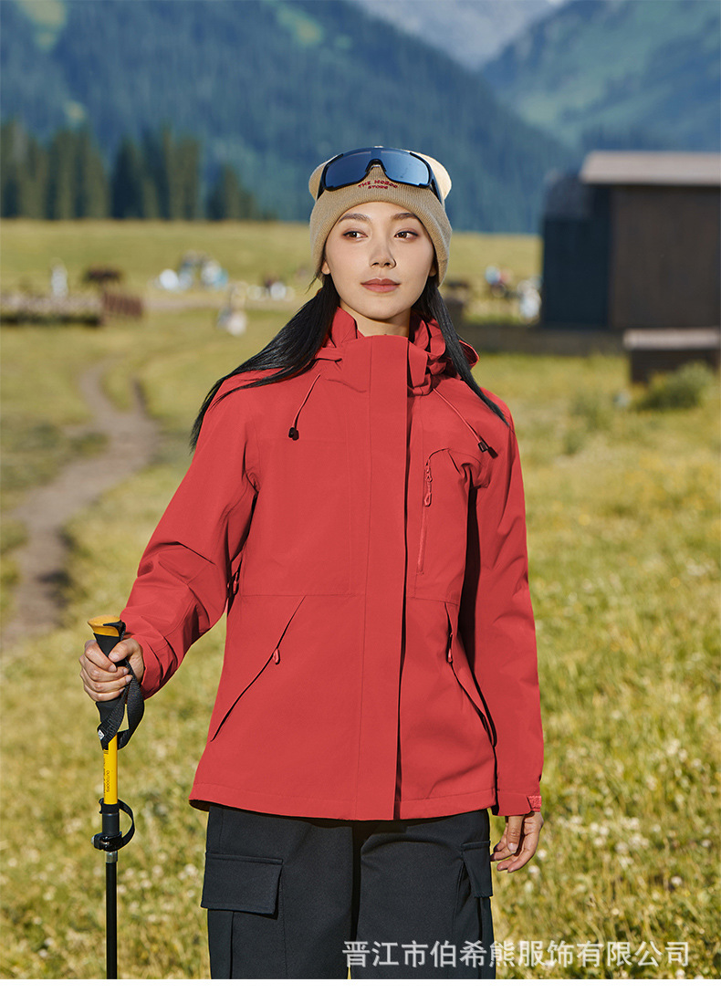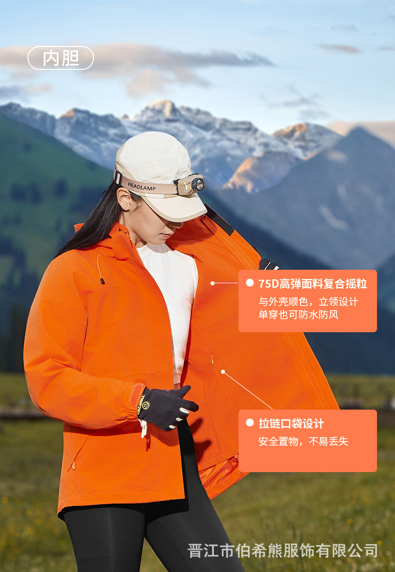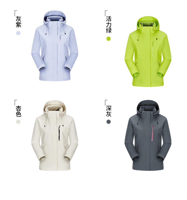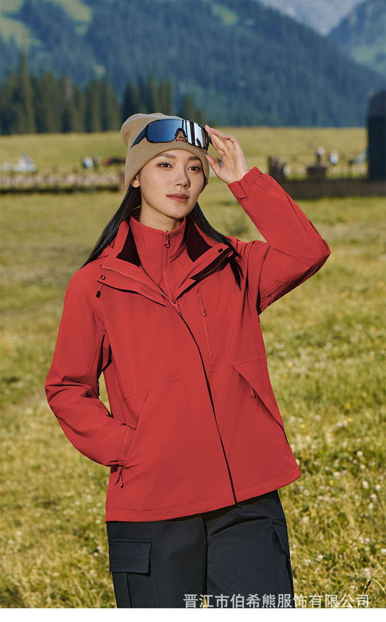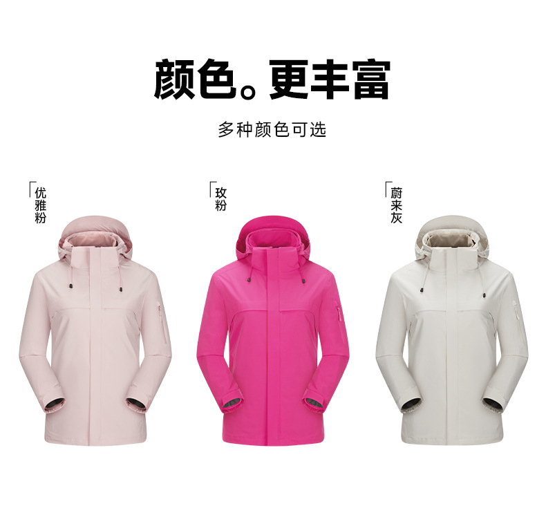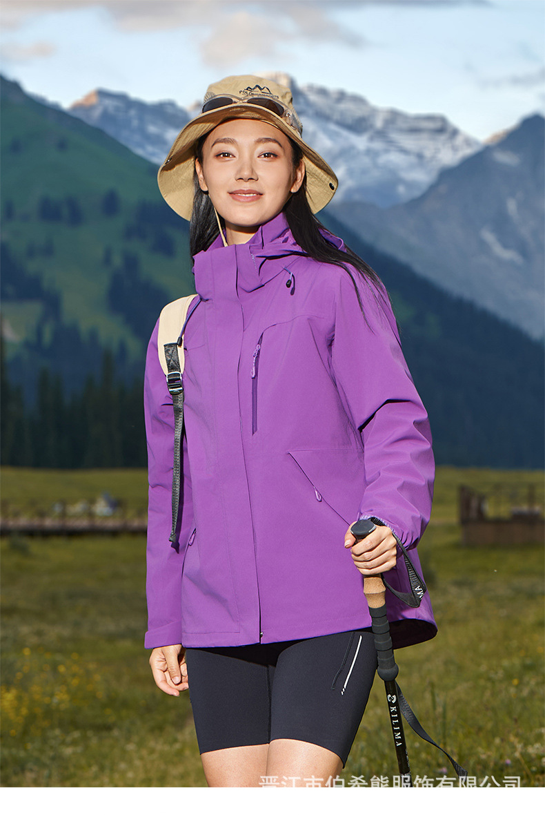 国标新款户外冲锋衣三合一女防风防水登山服外套可拆卸露营两件套