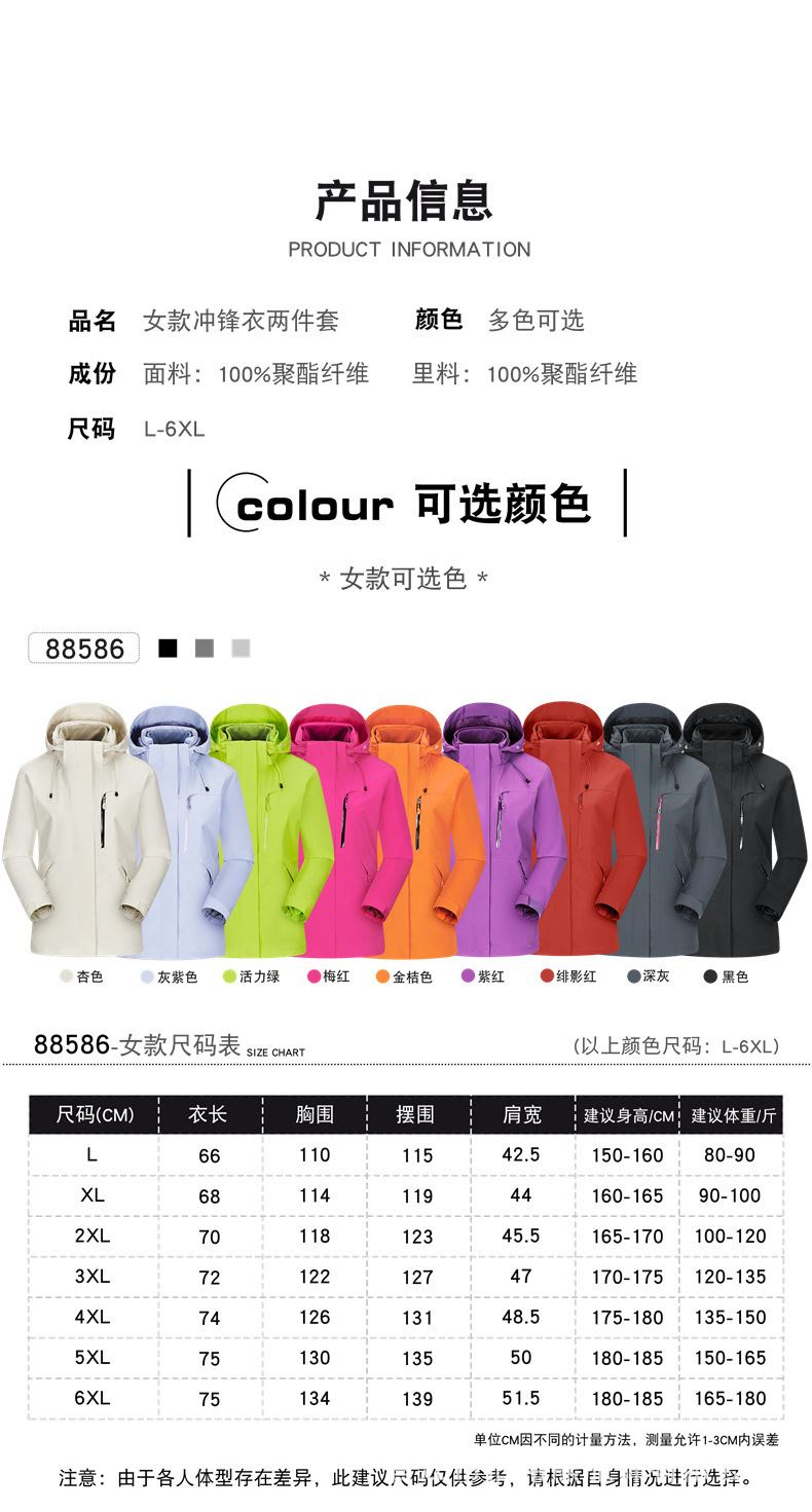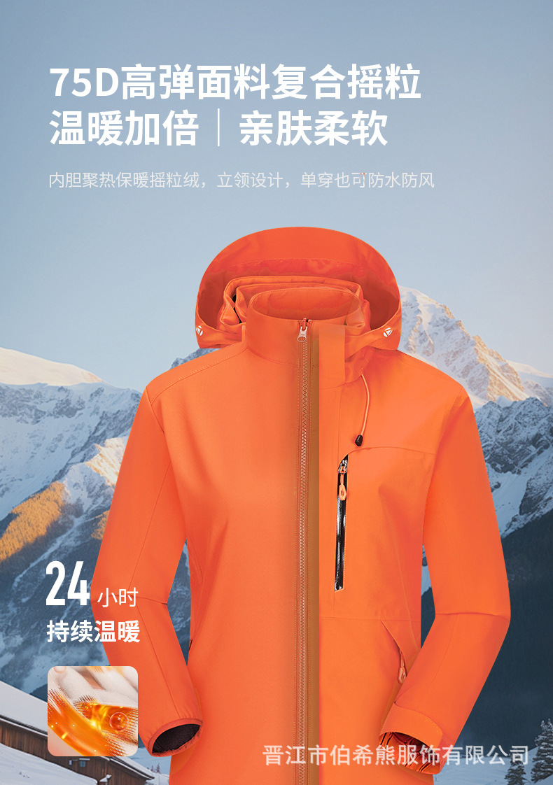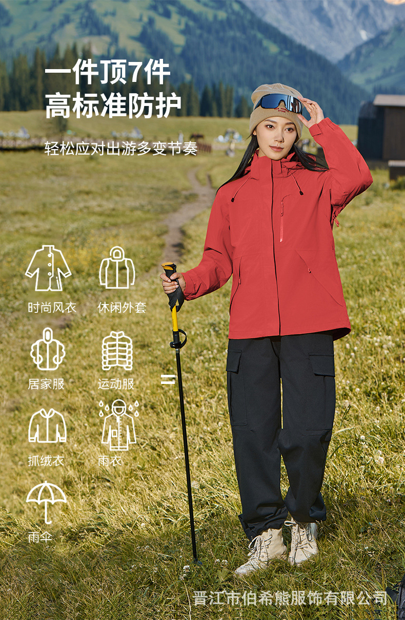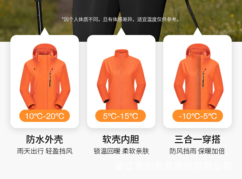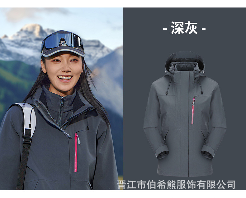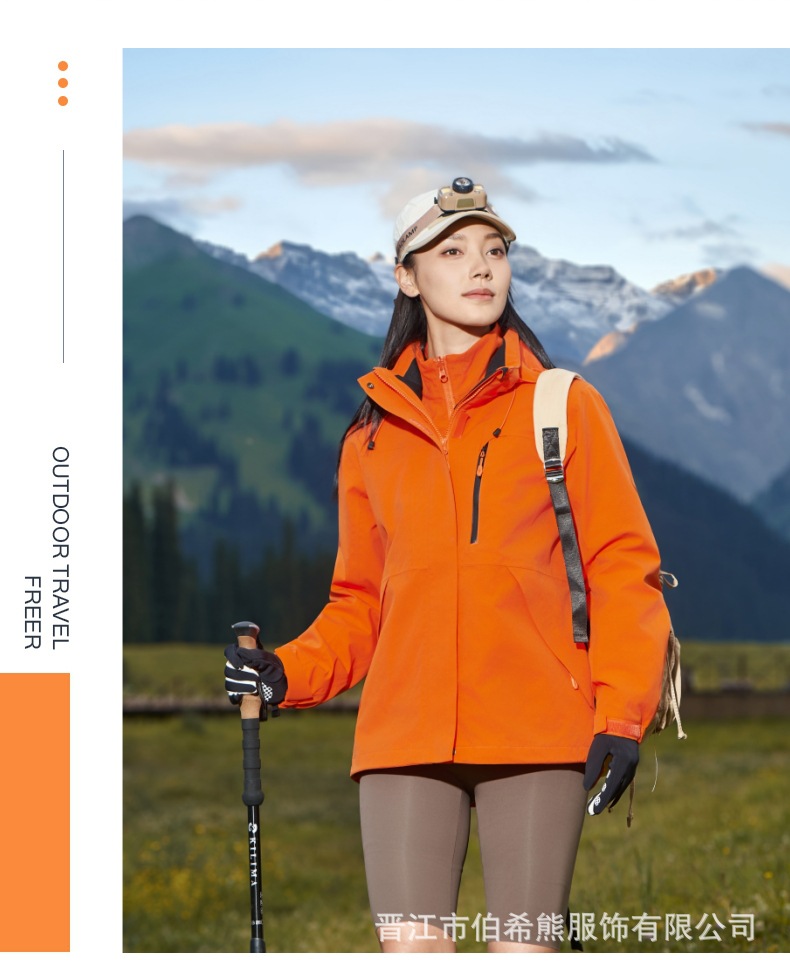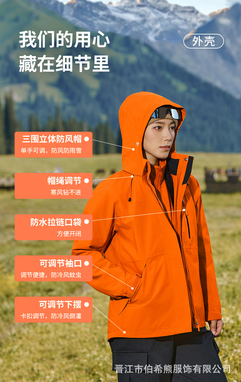 国标新款户外冲锋衣三合一女防风防水登山服外套可拆卸露营两件套