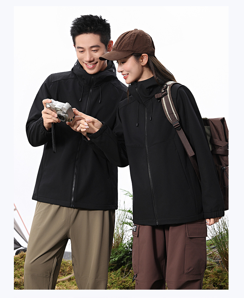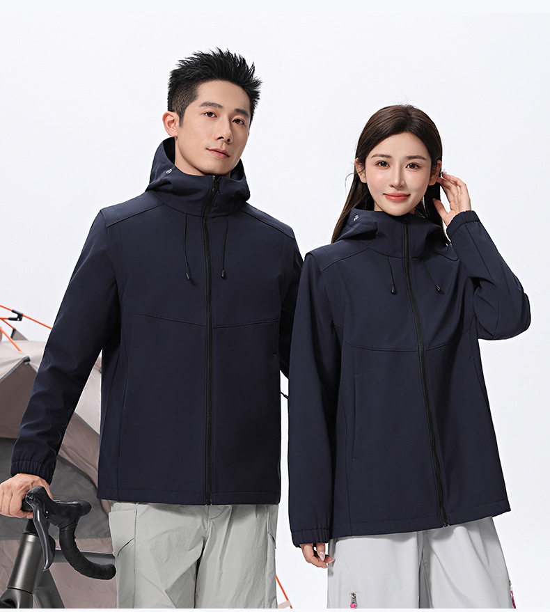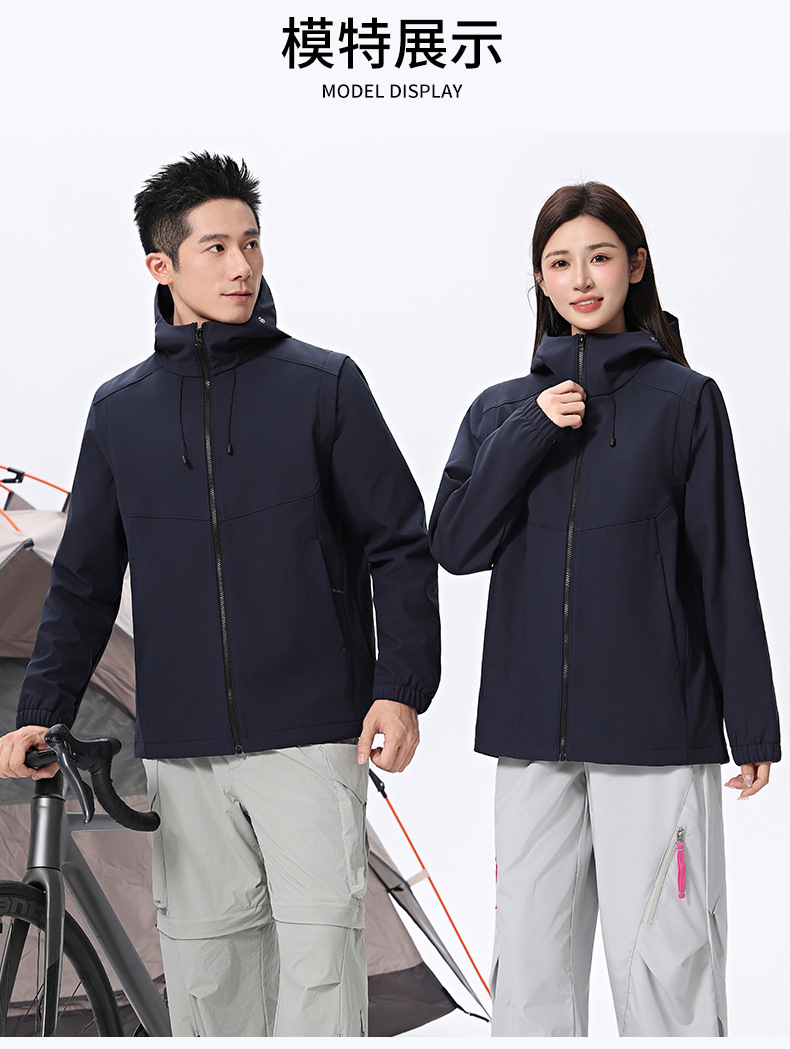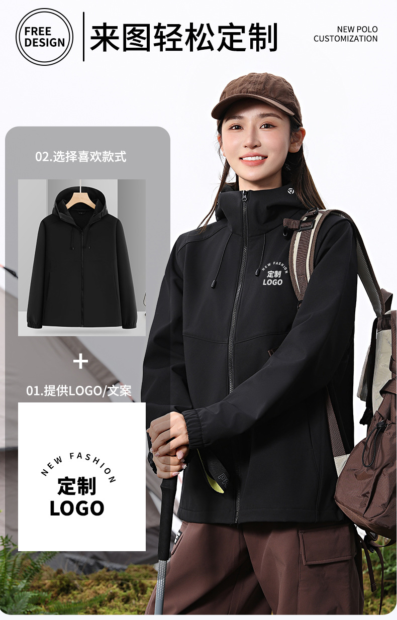 防水加绒工装户外服装女连帽防风夹克外套工作服男软壳冲锋衣定制