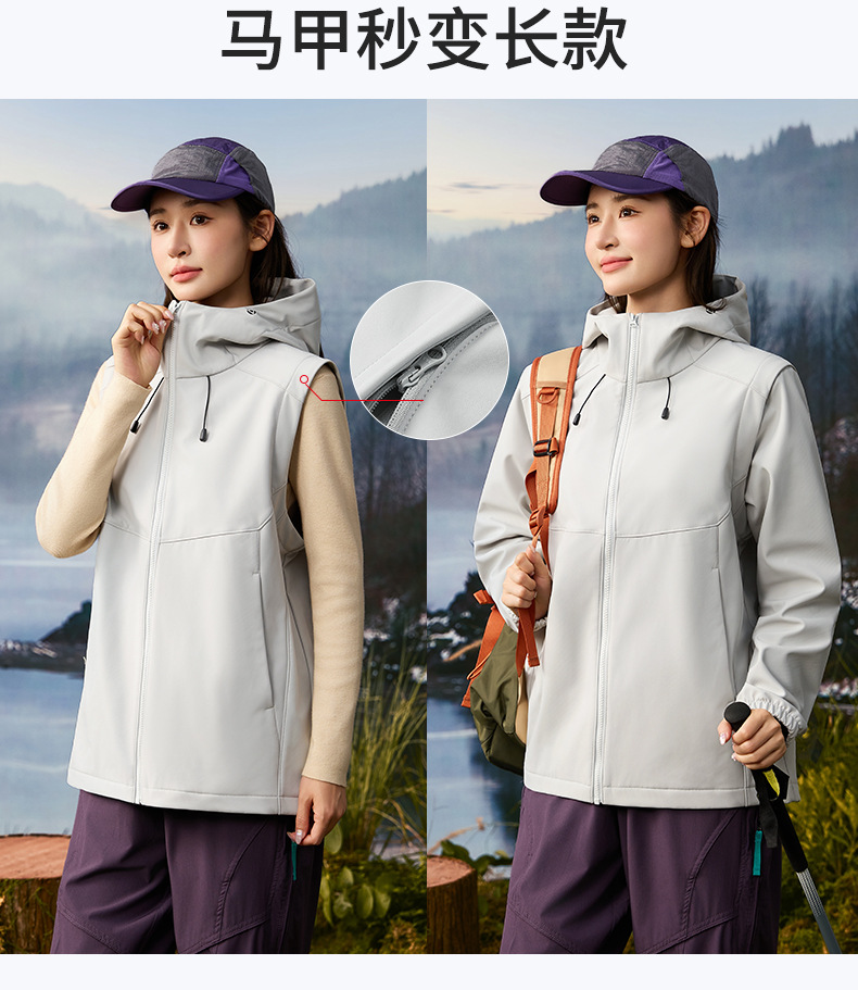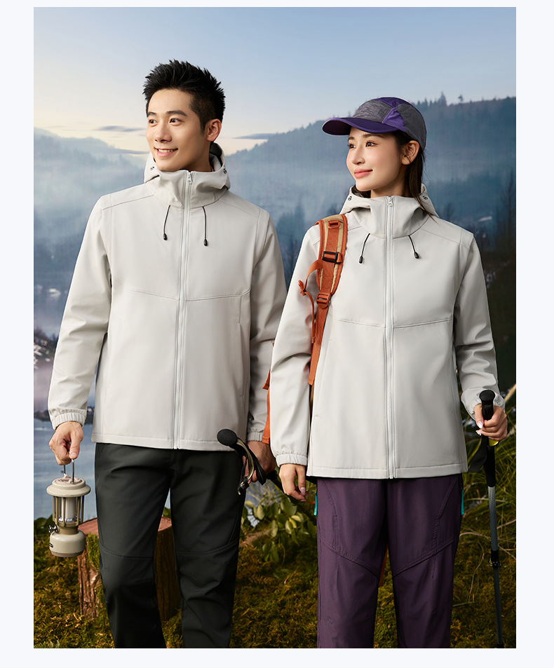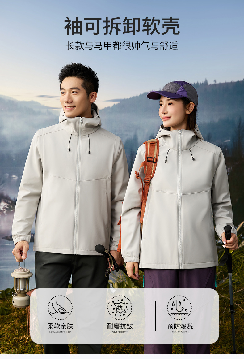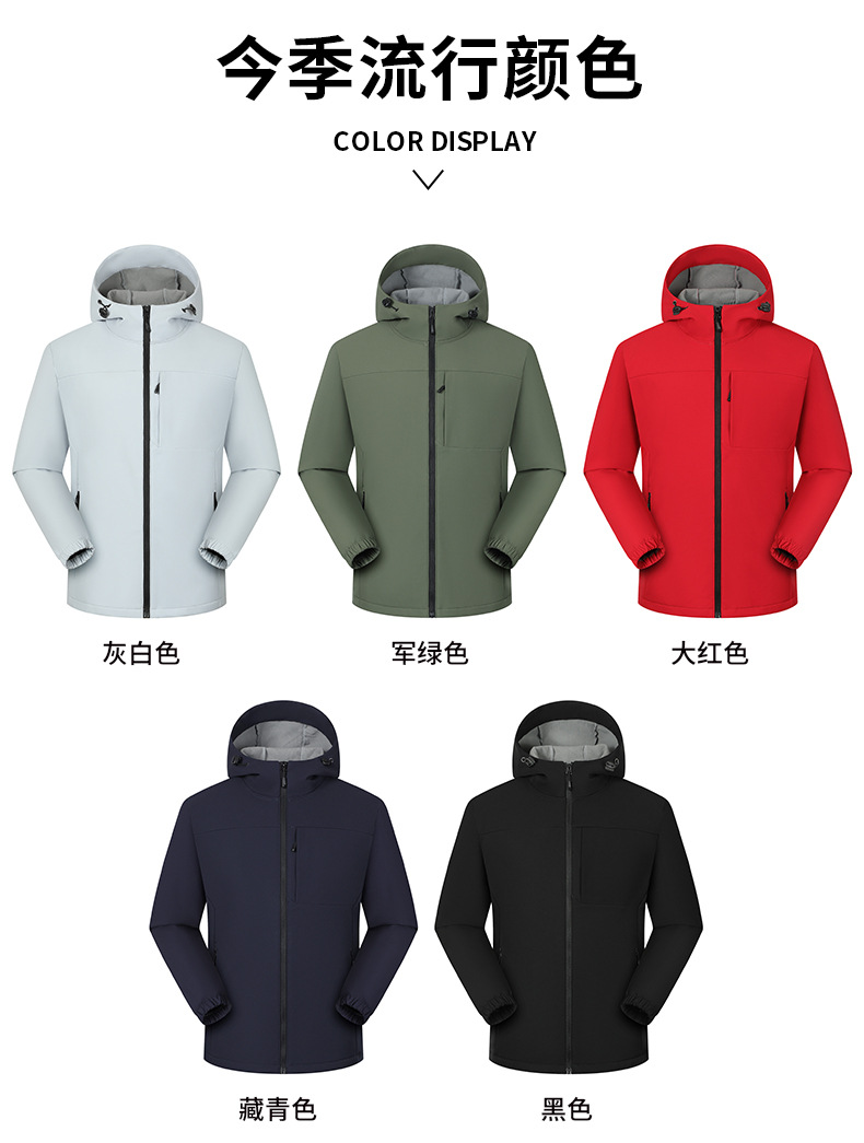 防水加绒工装户外服装女连帽防风夹克外套工作服男软壳冲锋衣定制