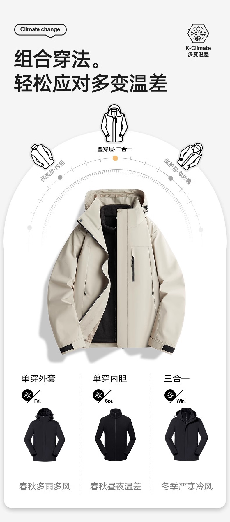 NASA户外冲锋衣外套女款冬新款三合一防风防水高级感登山加厚
