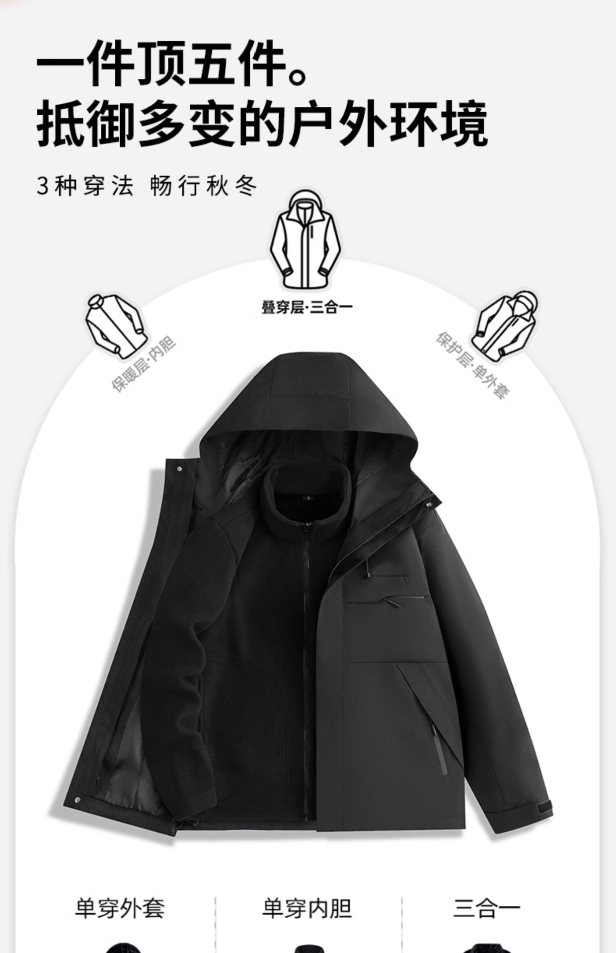 啄木鸟橙色冲锋衣2025新款三合一小个子户外川西旅游穿搭薄款外套