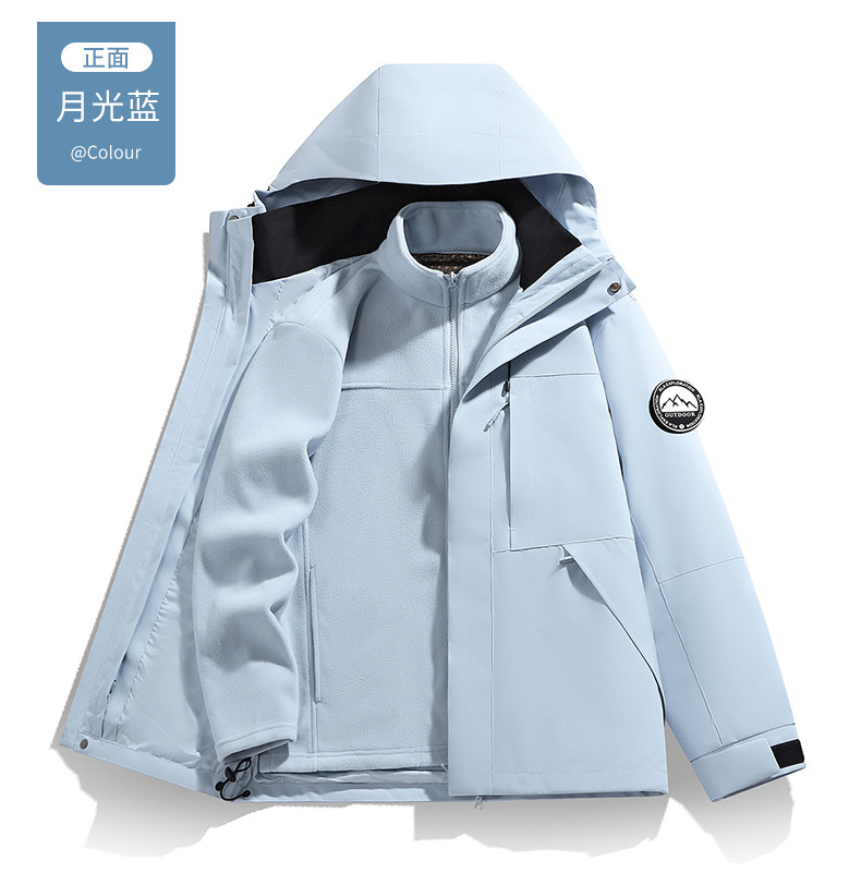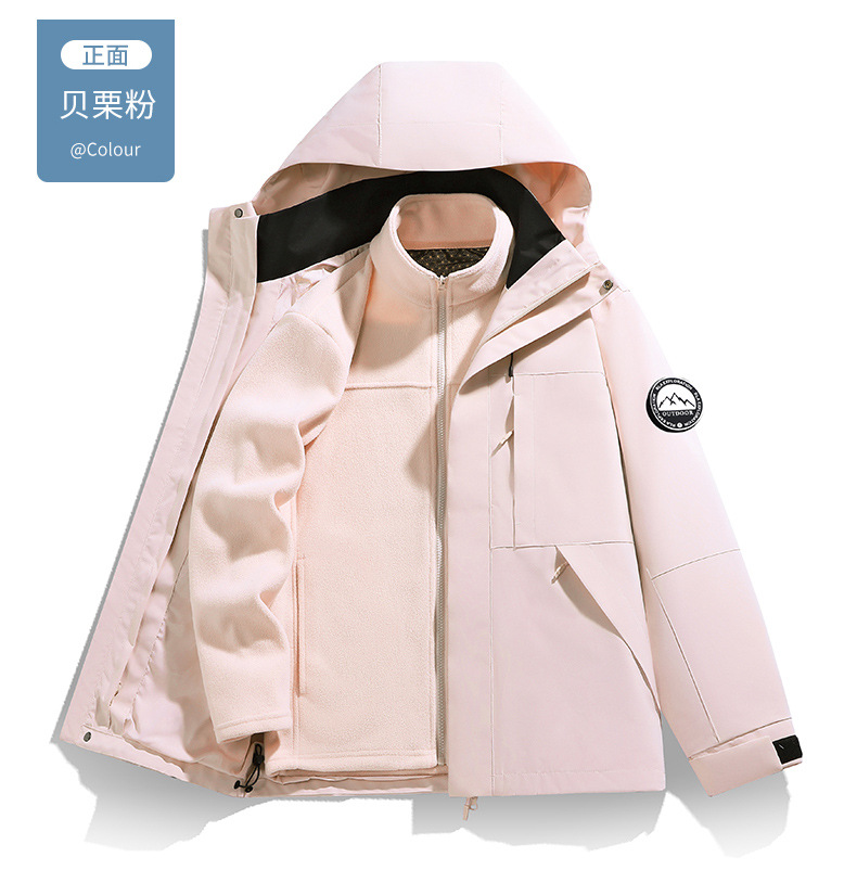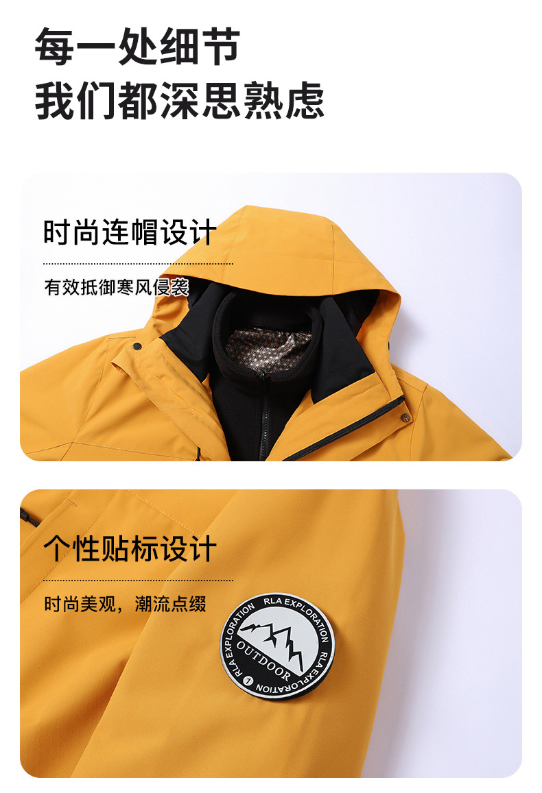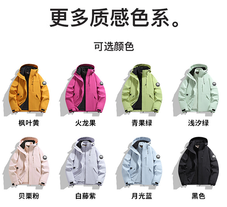 谷子黄冲锋衣男女2025新款户外三合一防风防水露营徒步外套