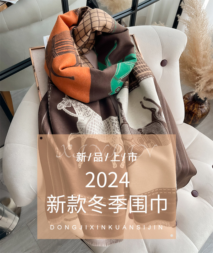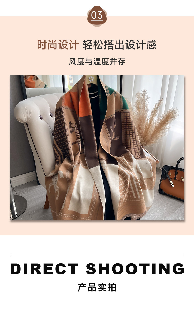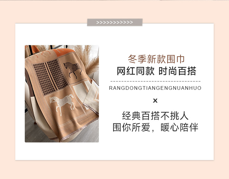 秋冬季网格色块马匹碰撞时尚大气女士仿羊绒保暖围巾空调披肩围脖