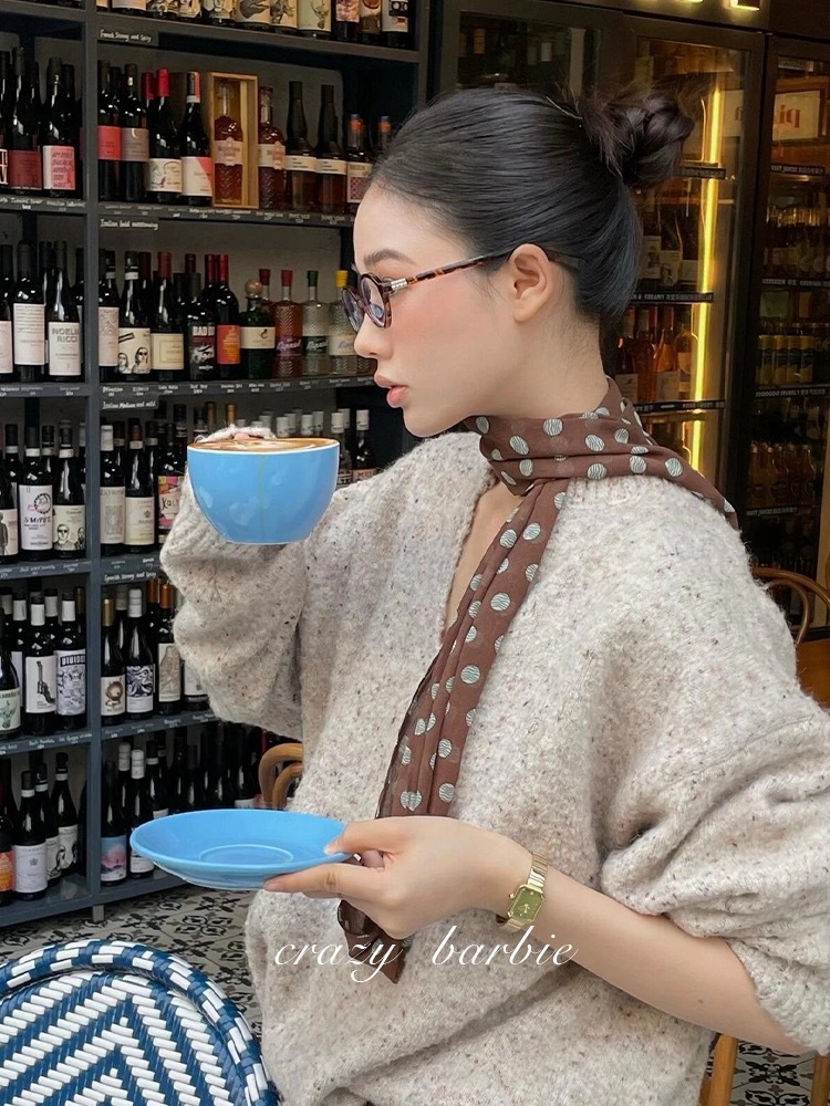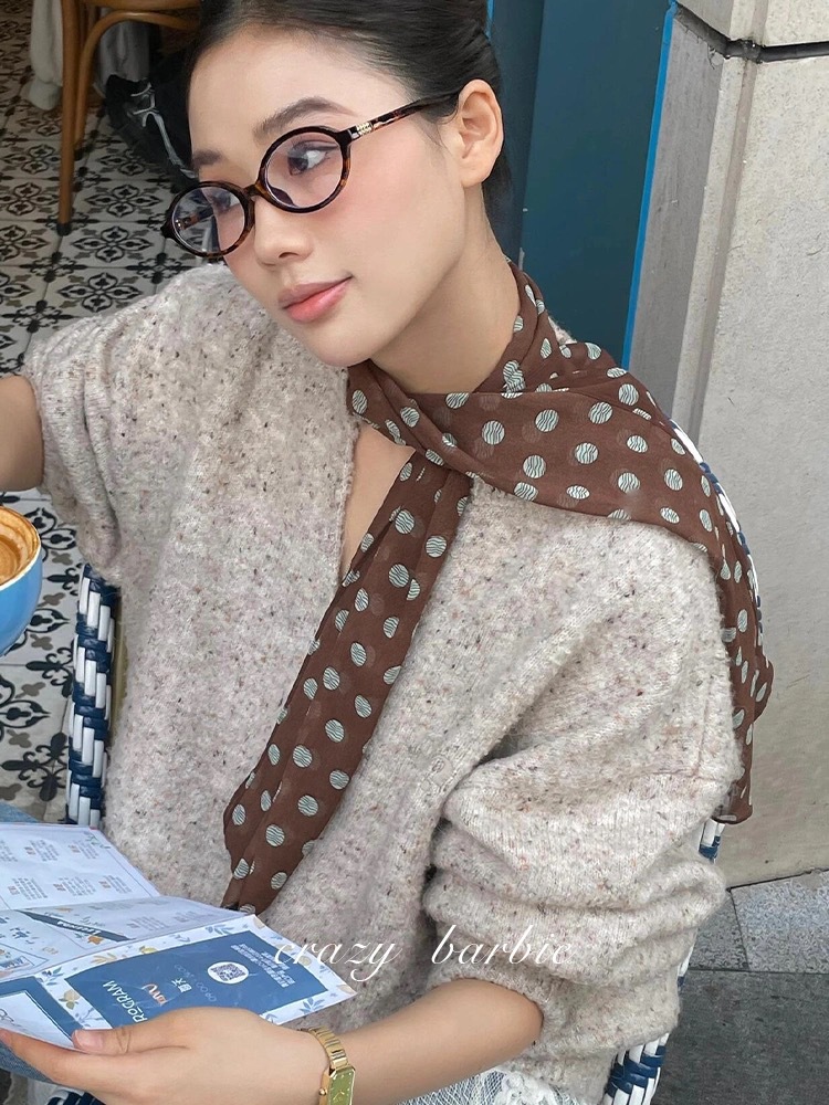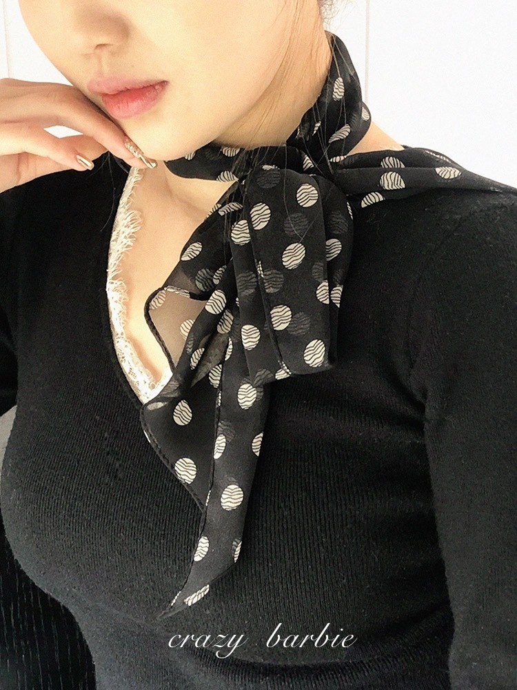 棕色波点丝巾印花高级百搭配饰系脖女2025年新款发带绑发长条围巾