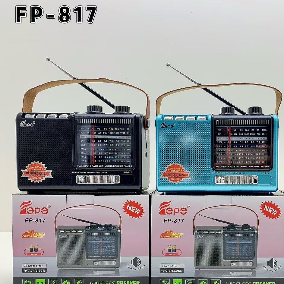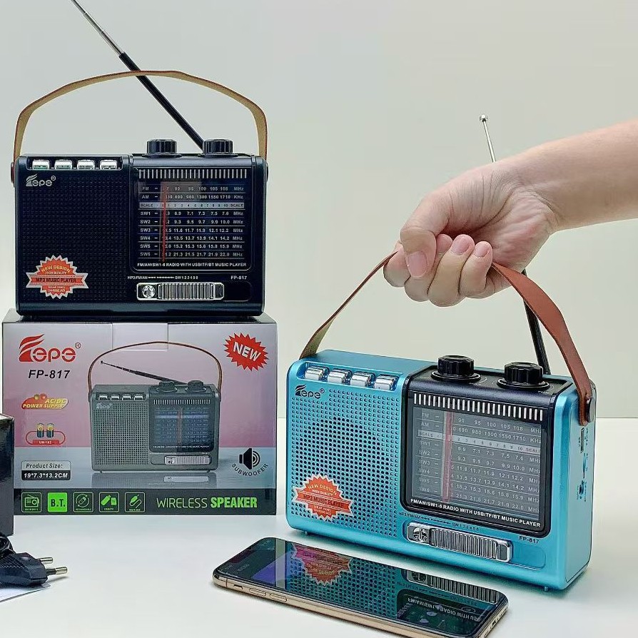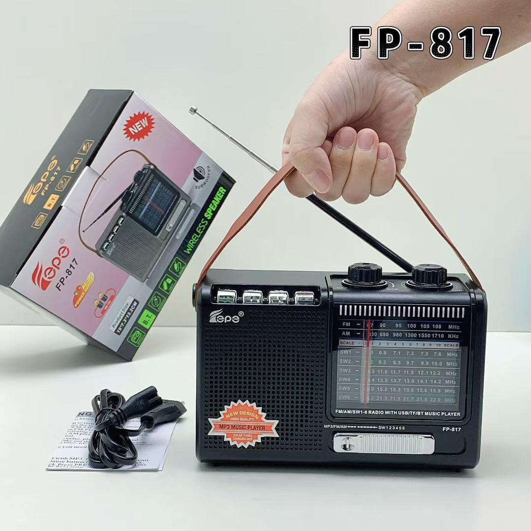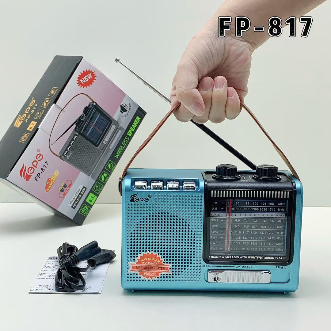 FP-817跨境热销蓝牙音响多功能AM/FM/SW便携家用带天线手提收音机