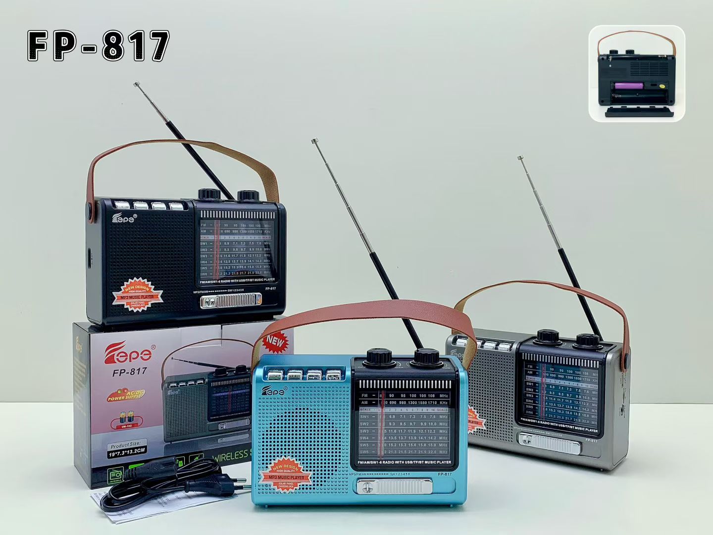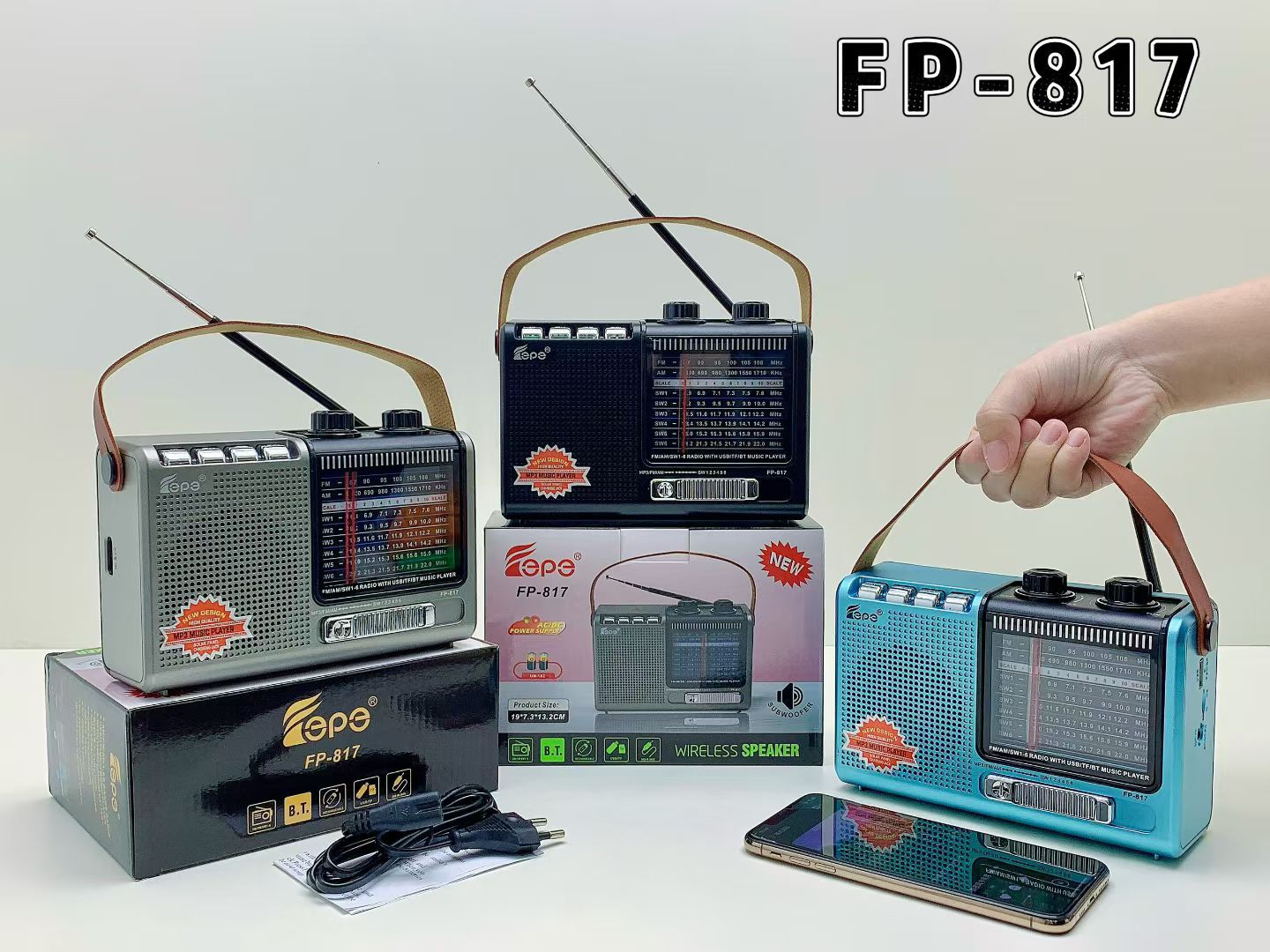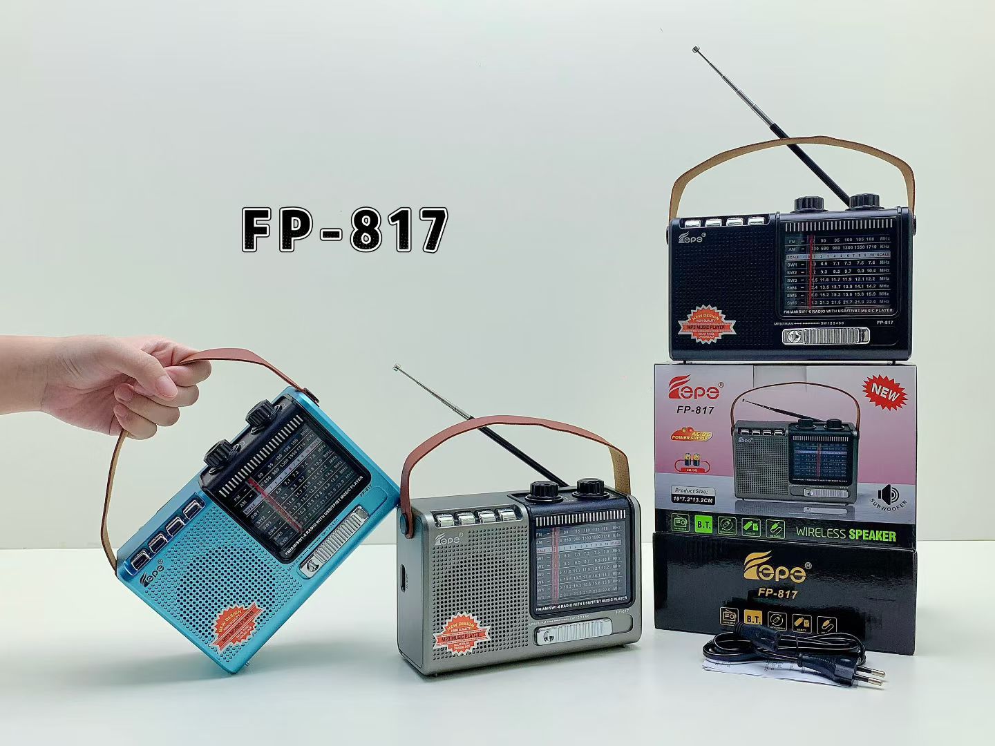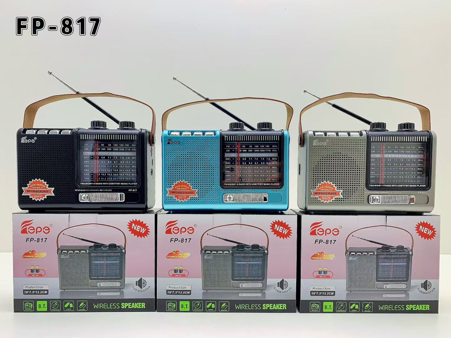 FP-817跨境热销蓝牙音响多功能AM/FM/SW便携家用带天线手提收音机