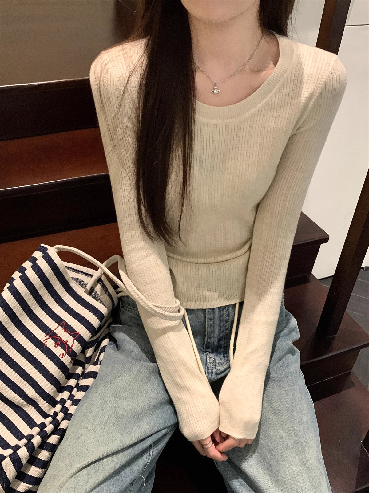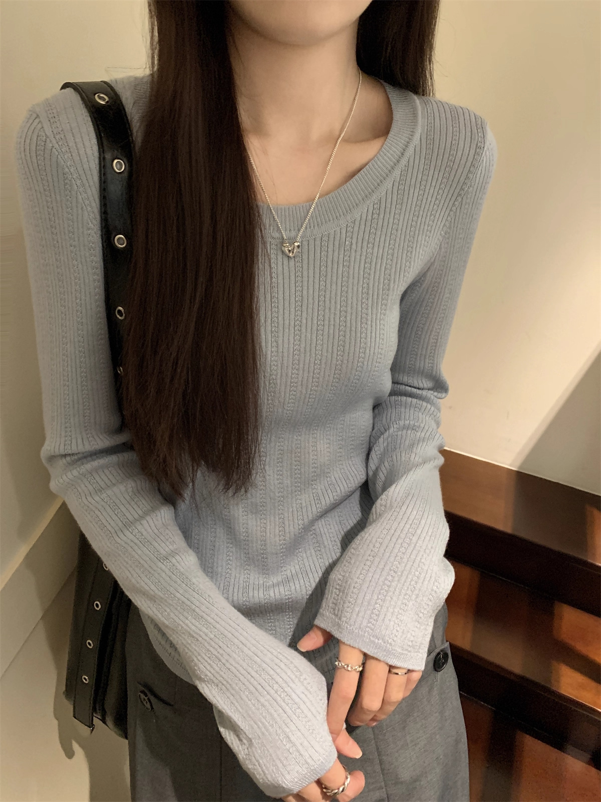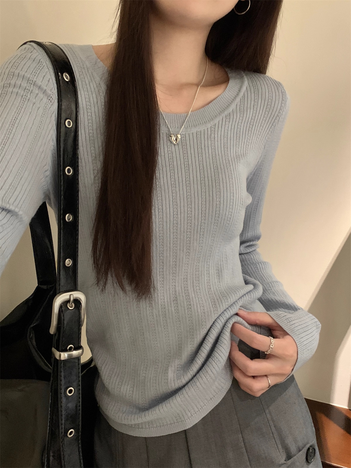 早秋2025新款气质圆领毛衣打底衫女内搭高级感韩系穿搭针织衫上衣