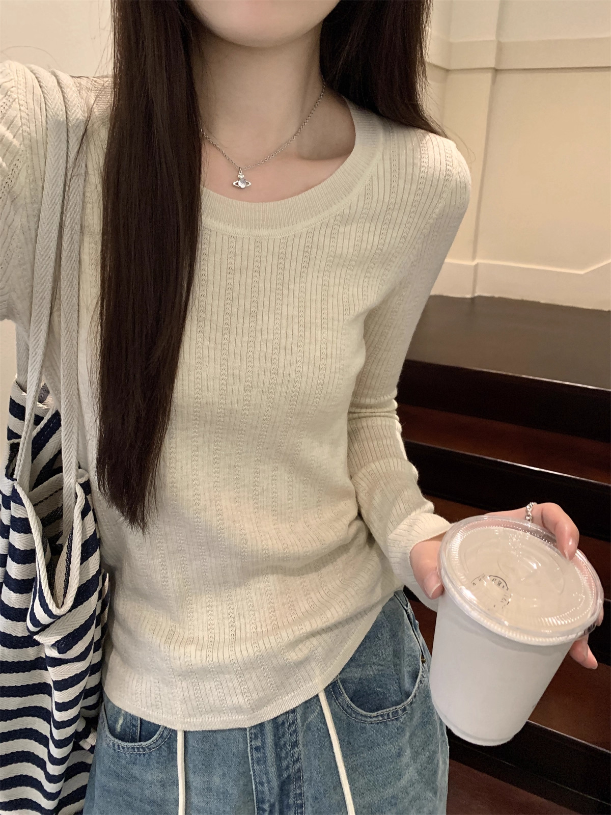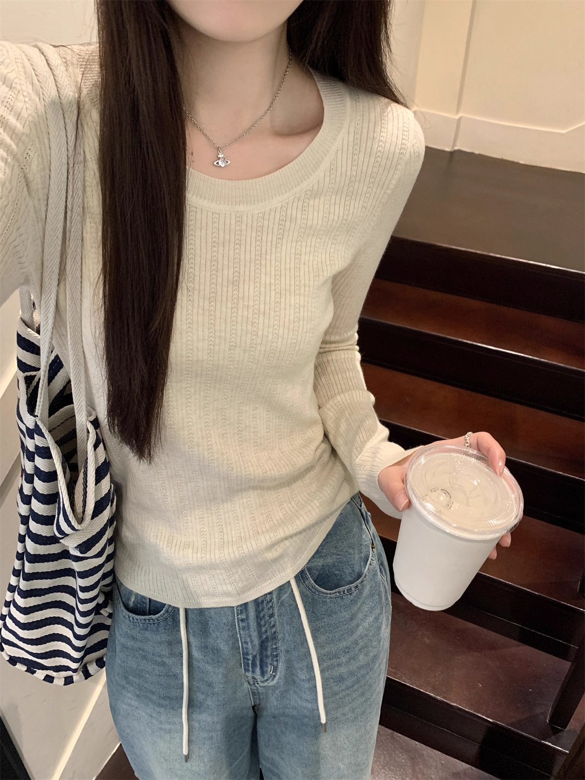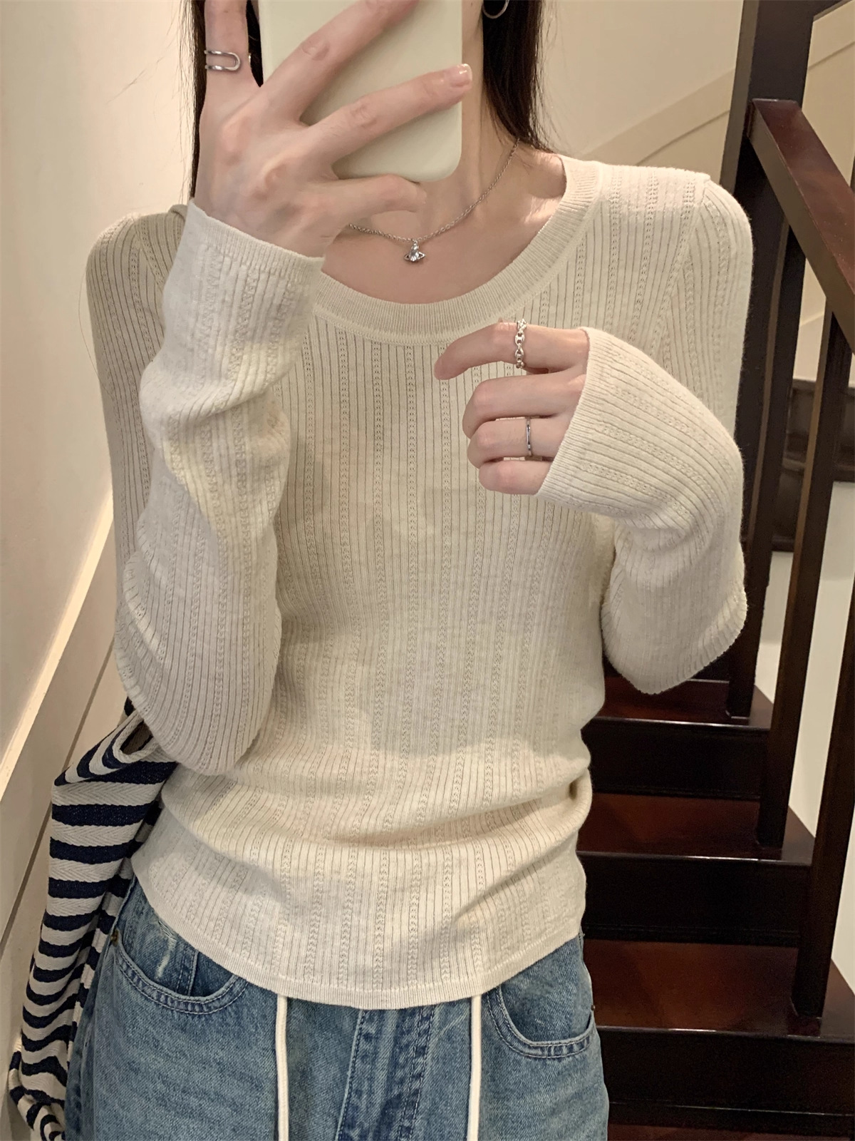 早秋2025新款气质圆领毛衣打底衫女内搭高级感韩系穿搭针织衫上衣