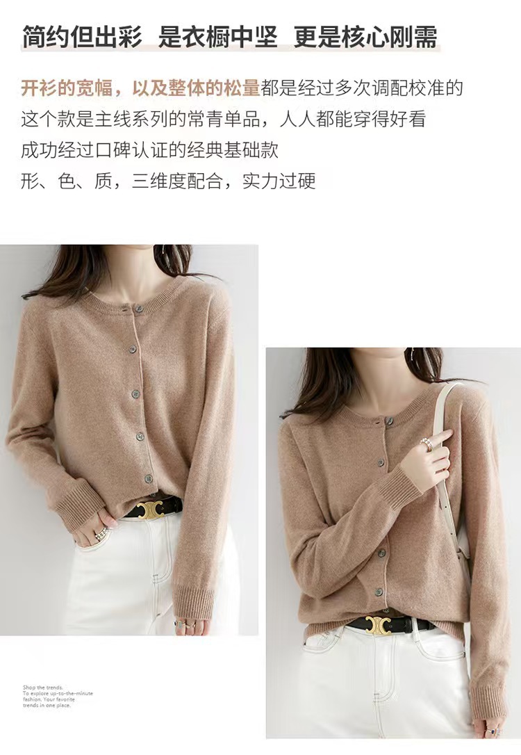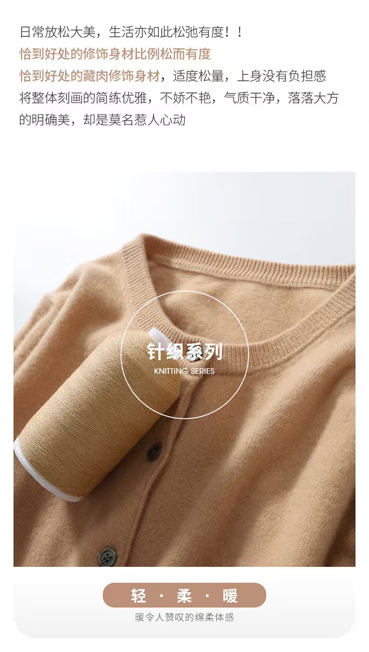 圆领针织开衫女士2025秋季新款洋气慵懒宽松大码上衣韩版毛衣外套
