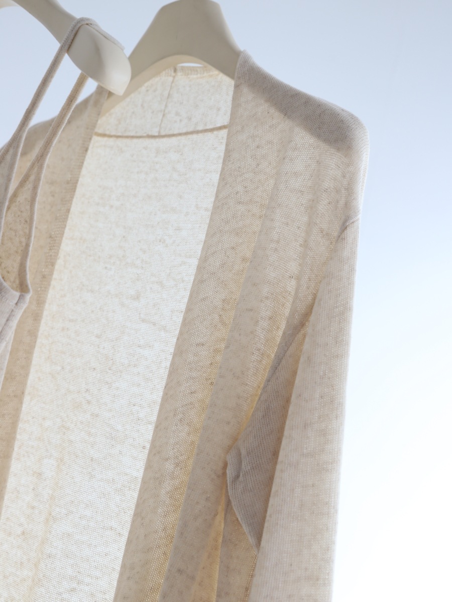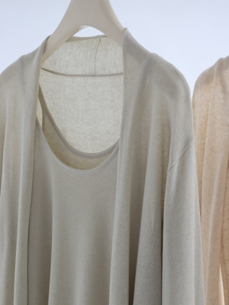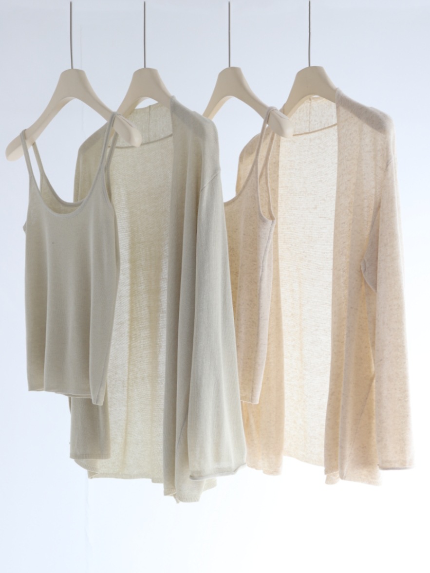 老钱风无扣天丝亚麻针织开衫女夏季长袖宽松外套+无袖背心上衣