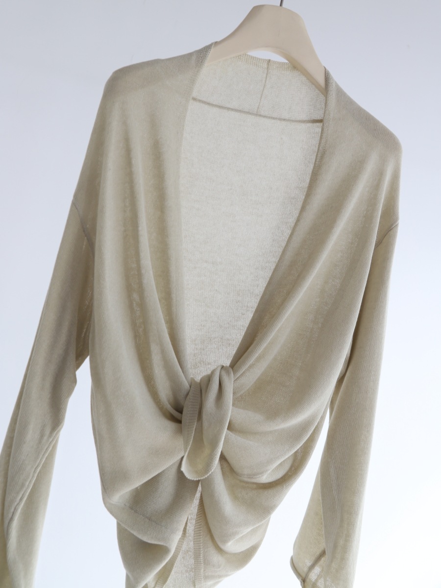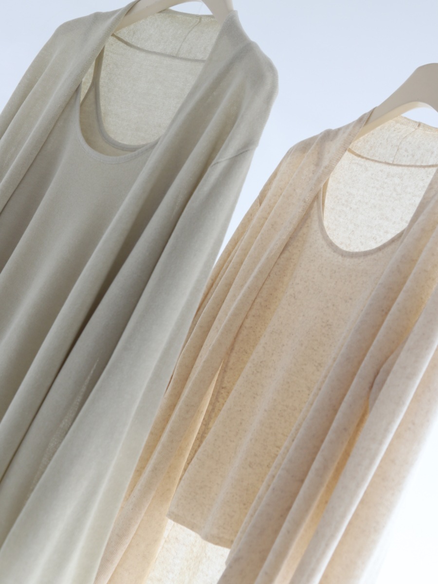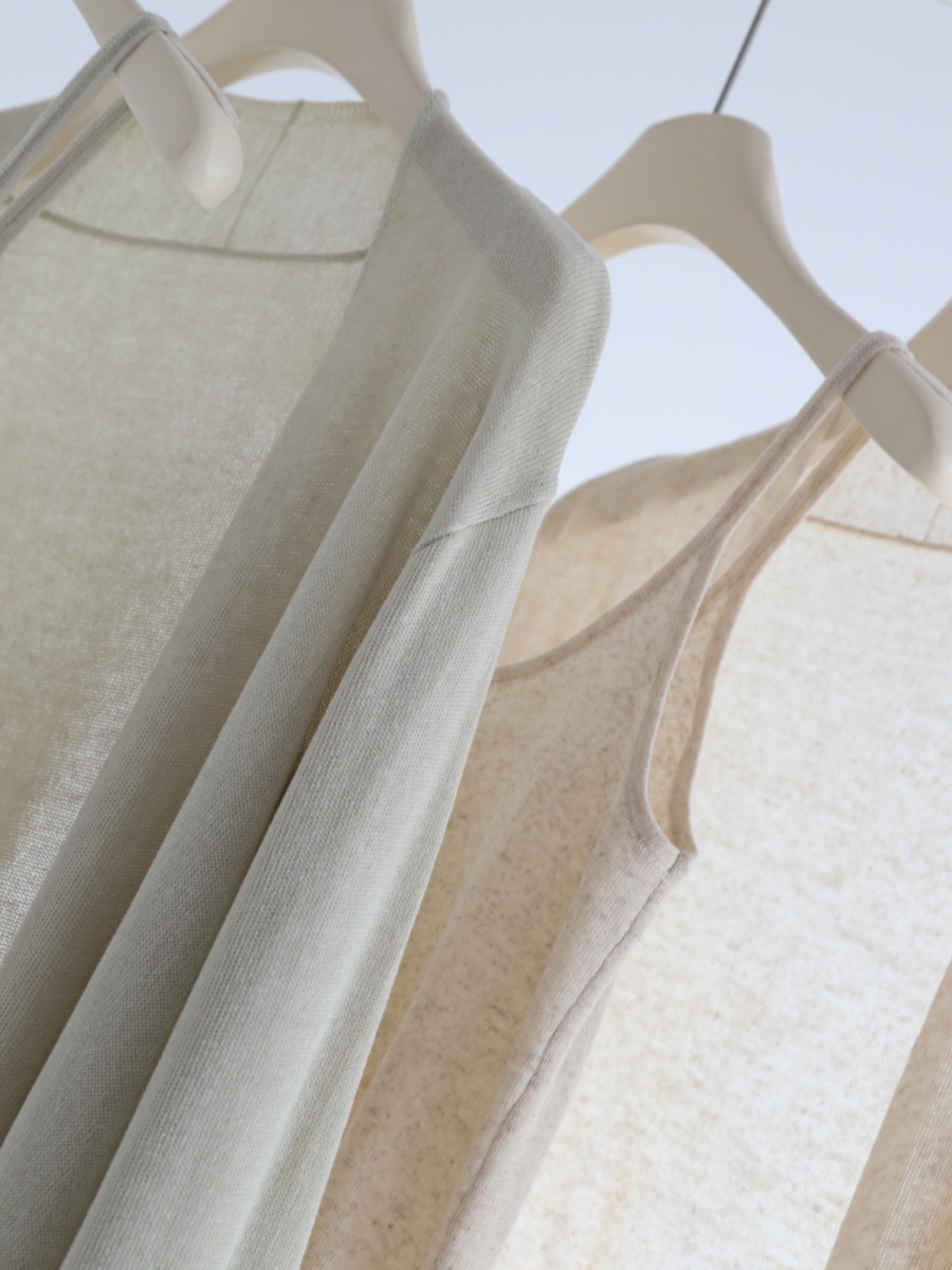 老钱风无扣天丝亚麻针织开衫女夏季长袖宽松外套+无袖背心上衣