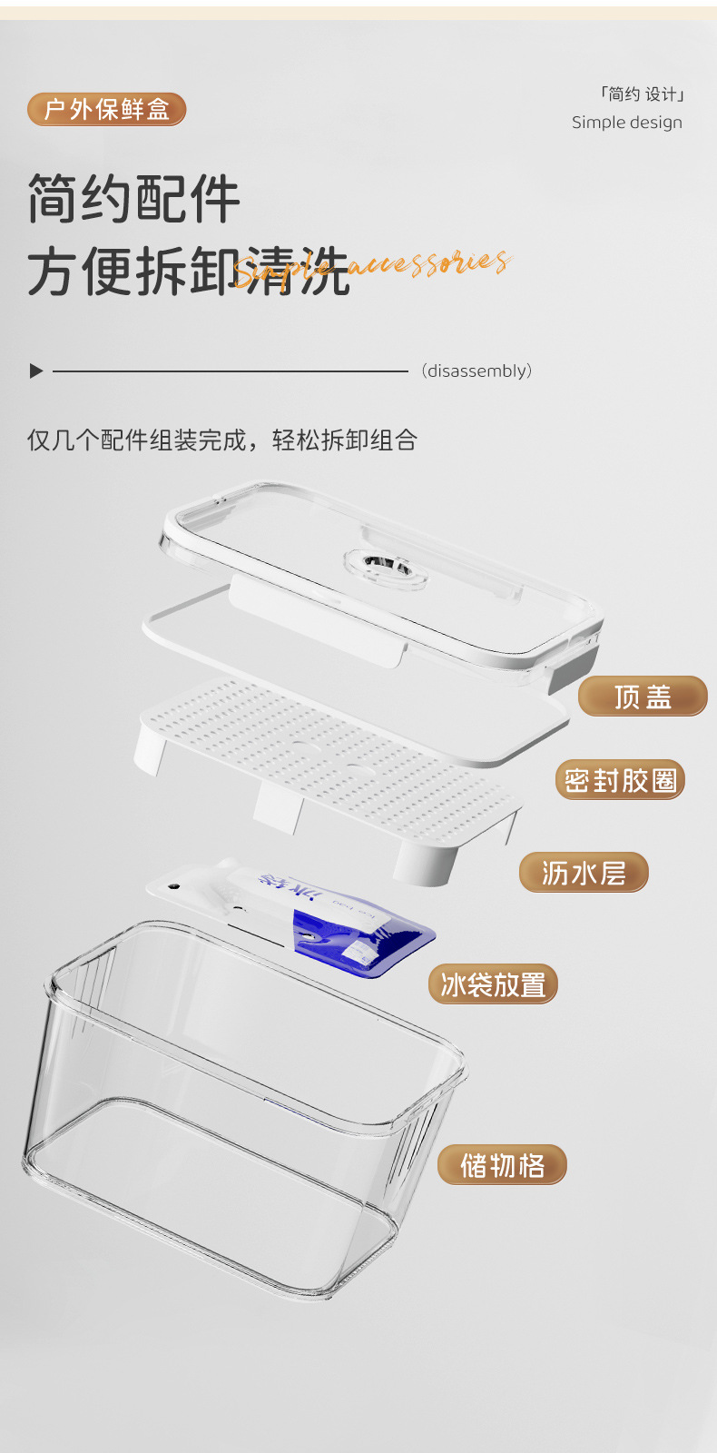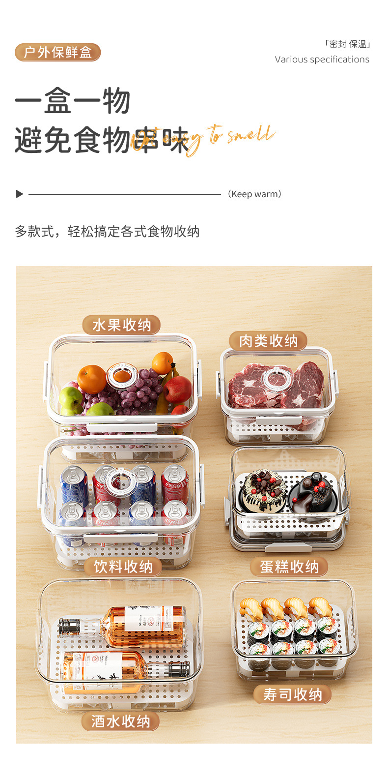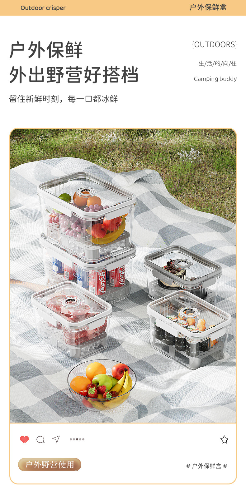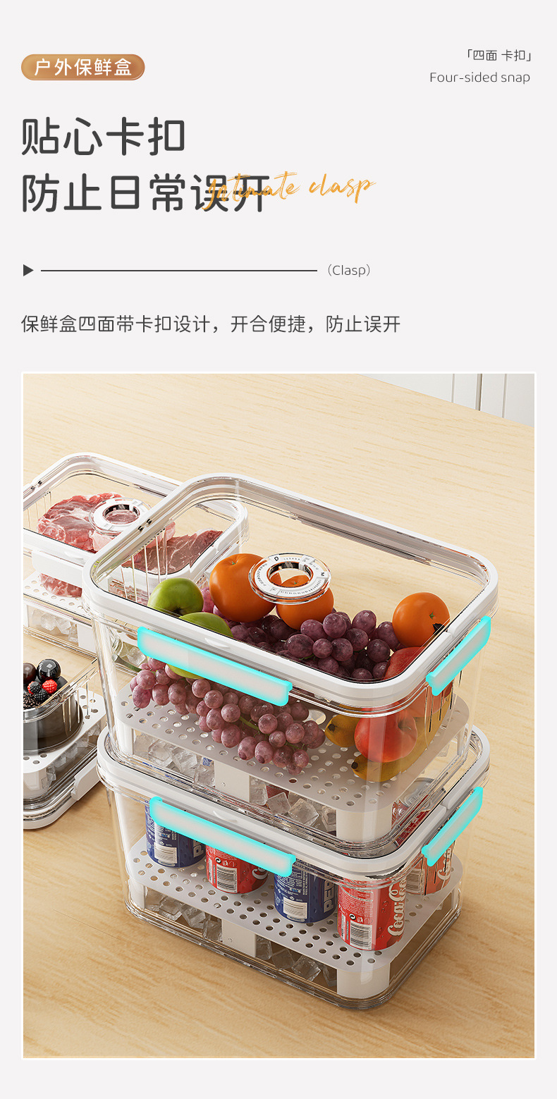 水果便当盒便携外出露营野餐手提保鲜盒食品级收纳密封盒