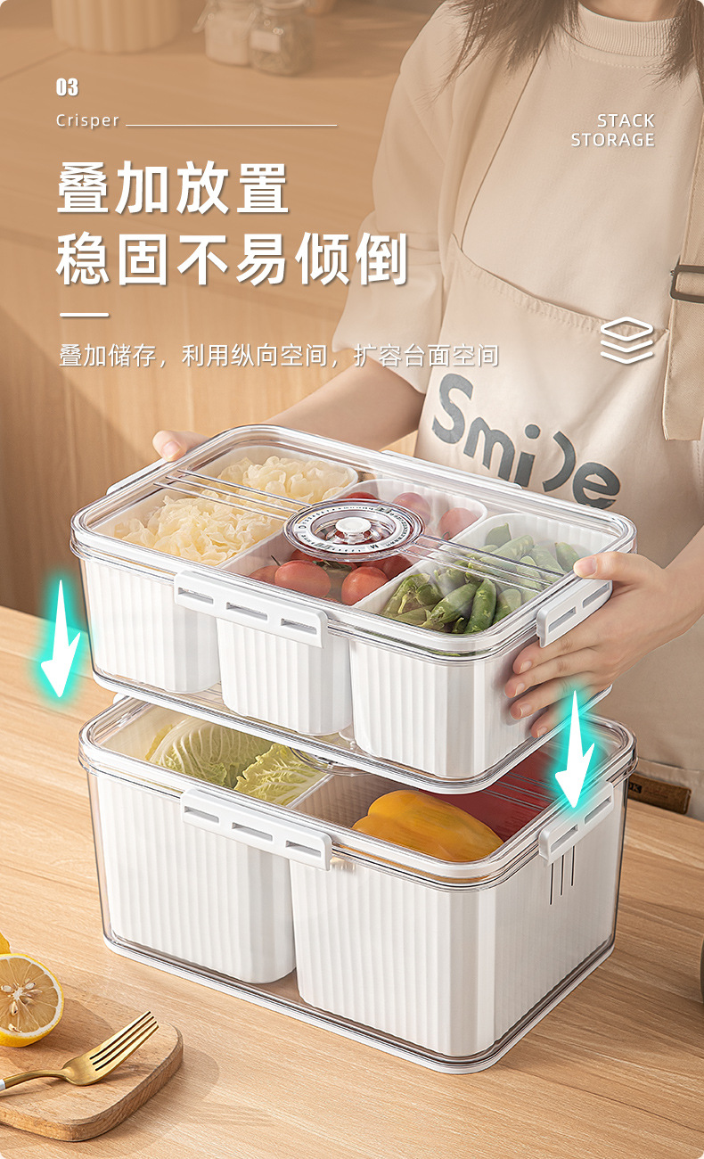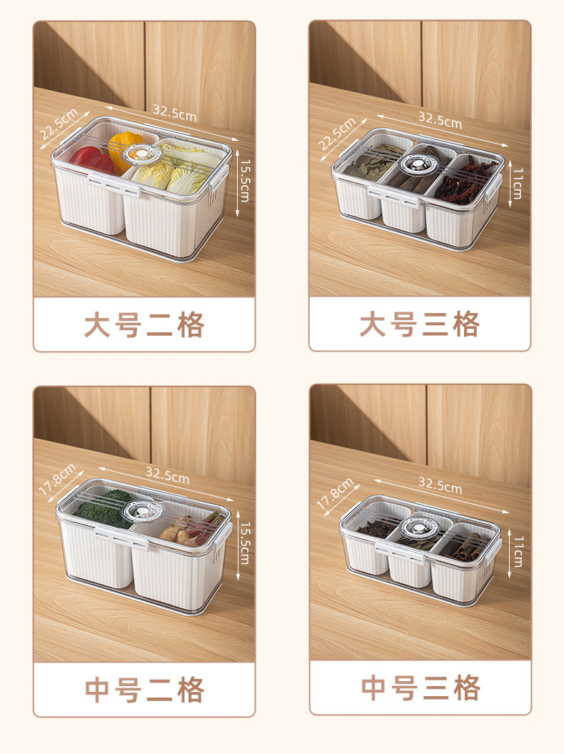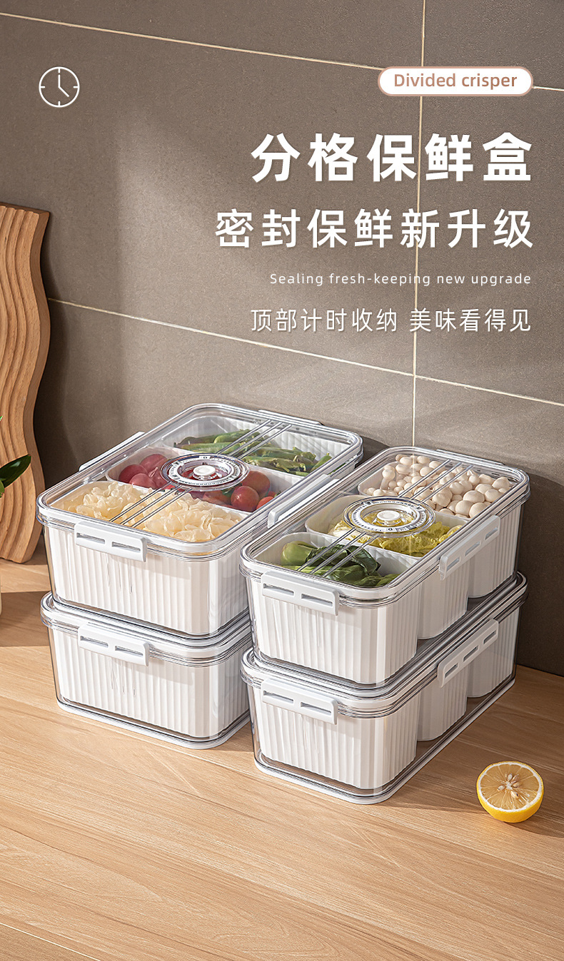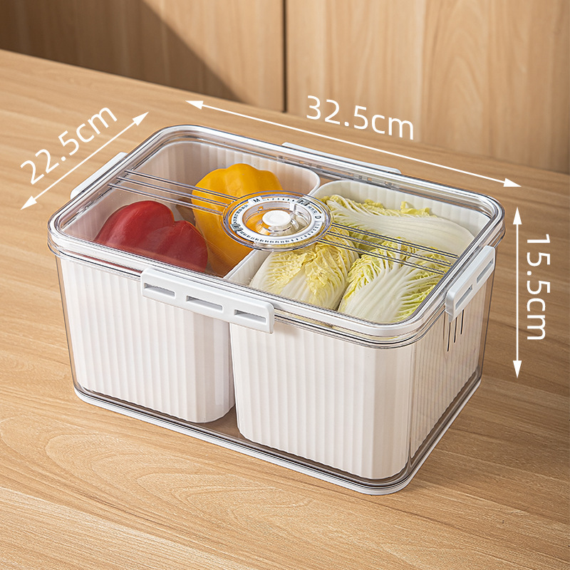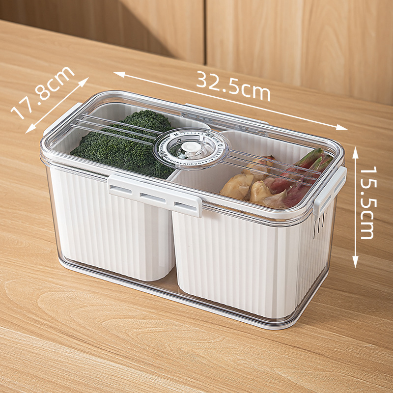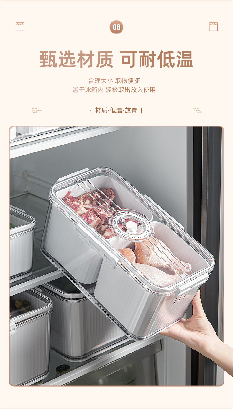 分格计时冰箱收纳格水果蔬菜冻肉保鲜盒双层沥水透气储物盒
