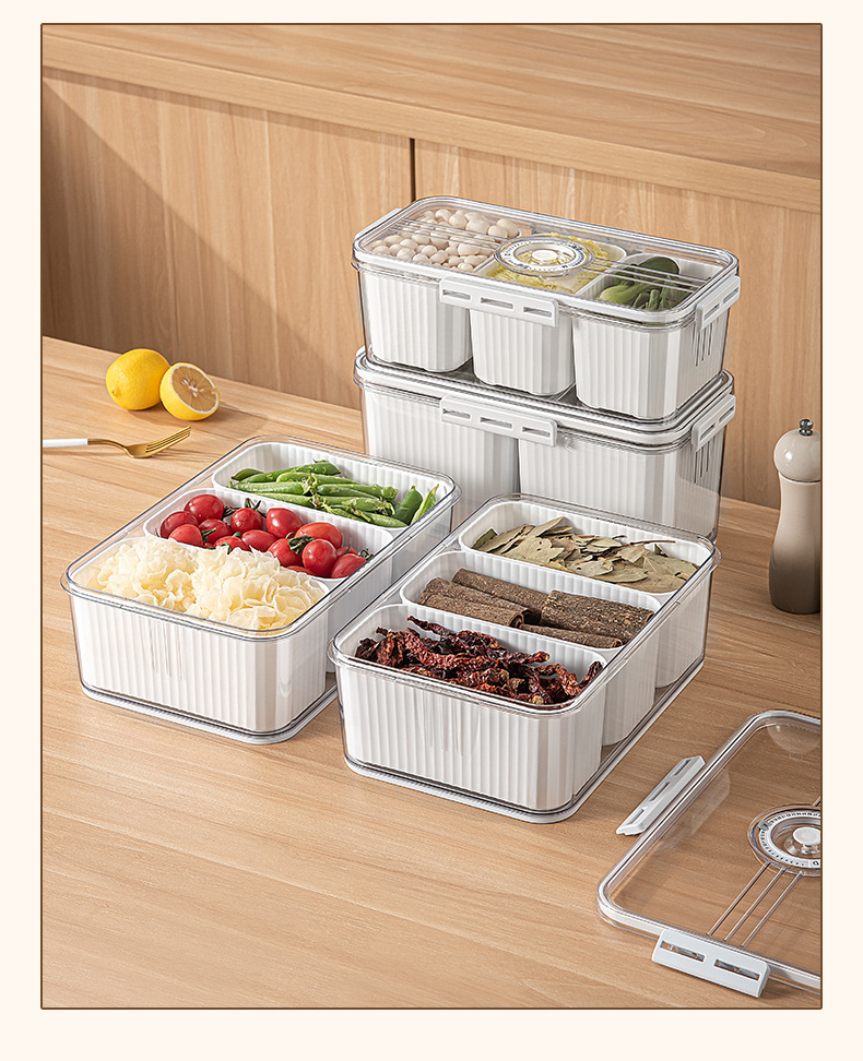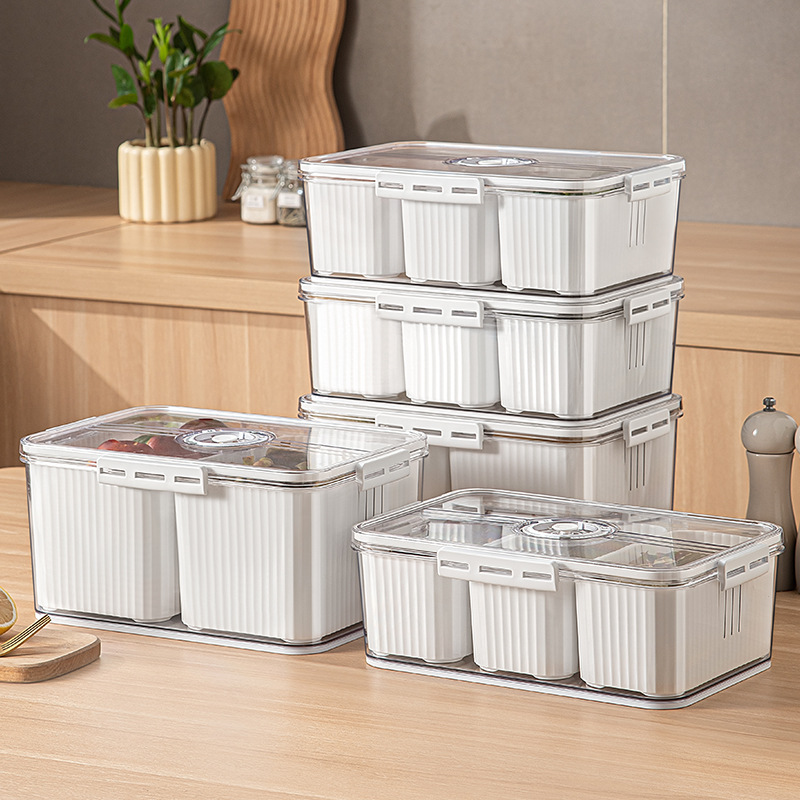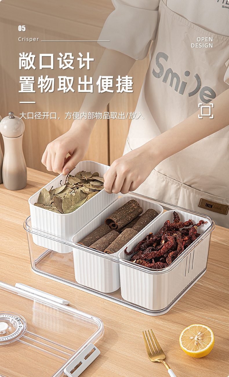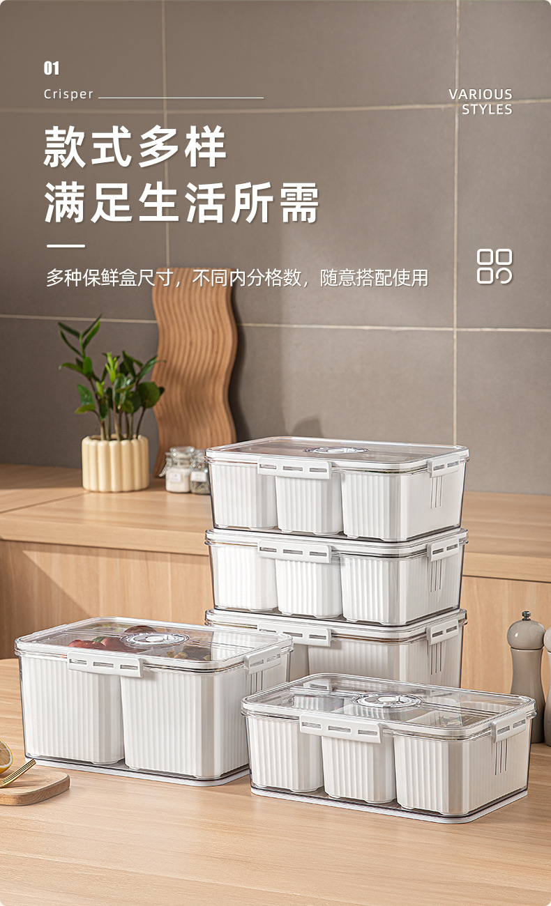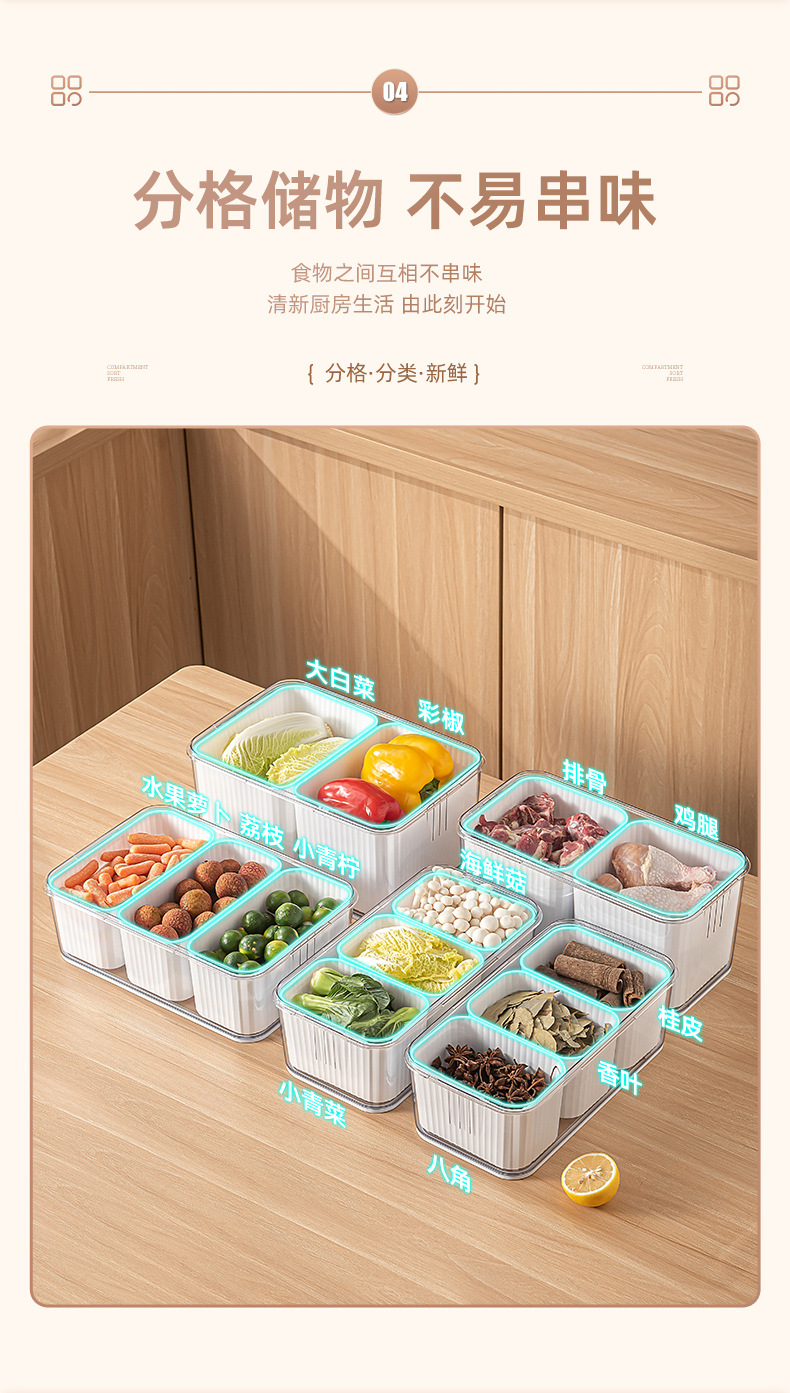 分格计时冰箱收纳格水果蔬菜冻肉保鲜盒双层沥水透气储物盒