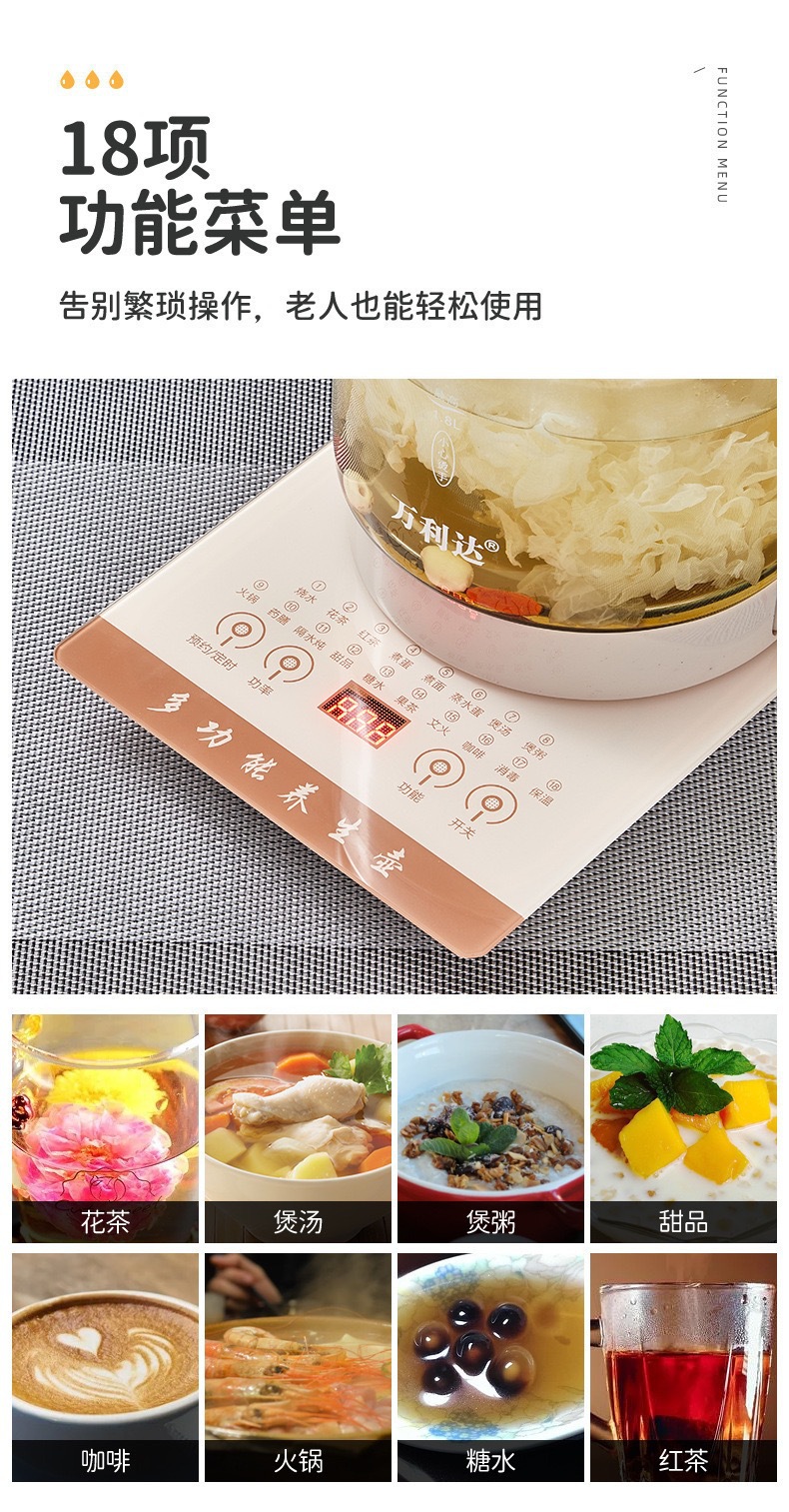 万利达多功能养生壶家用大容量恒温烧水壶全自动玻璃加厚煎药壶