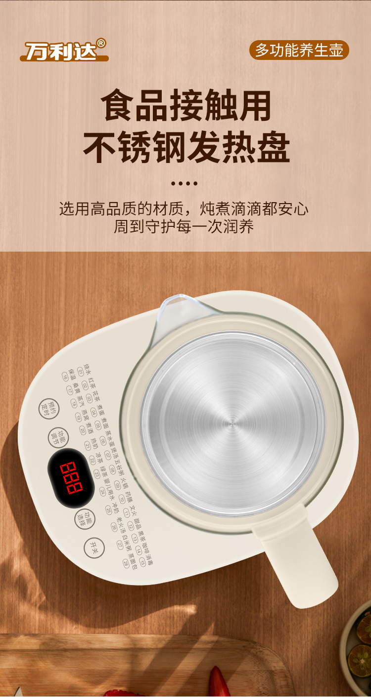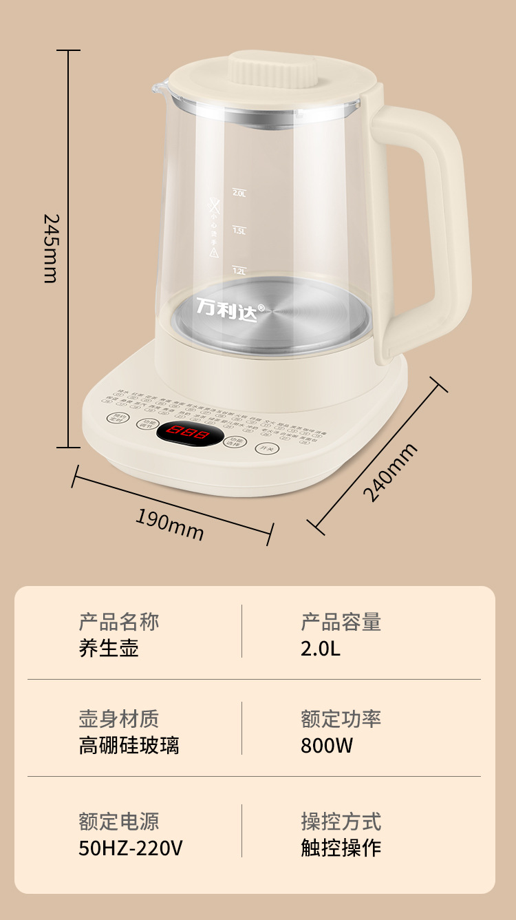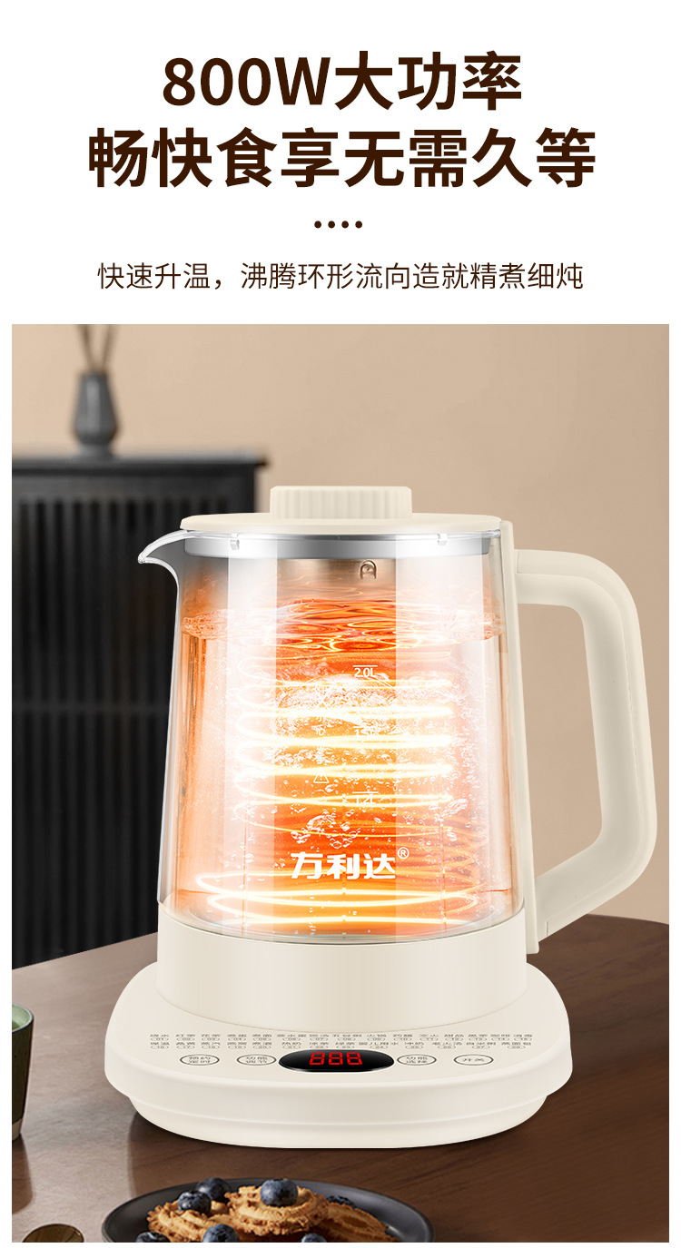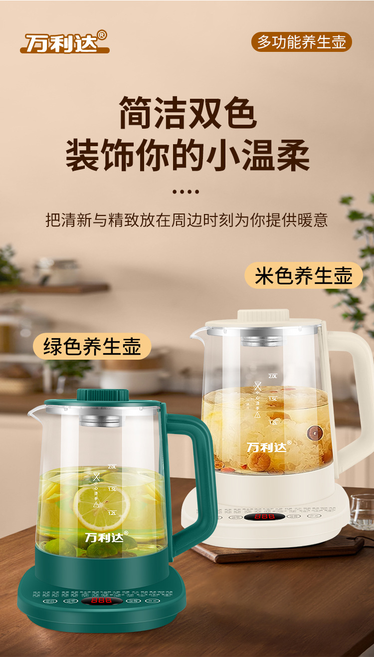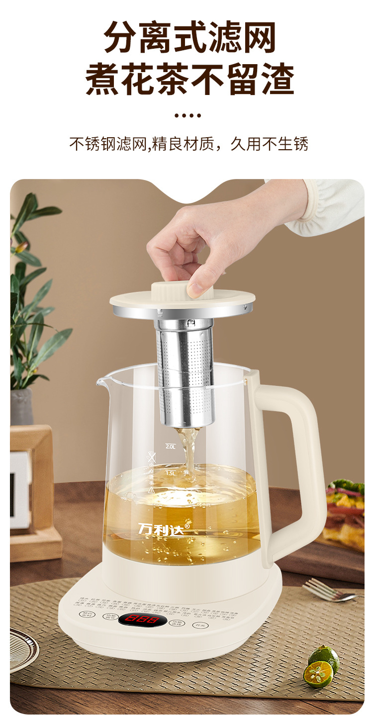 万利达养生壶2.0L大容量多功能煎药壶全自动办公室烧水壶煮花茶壶