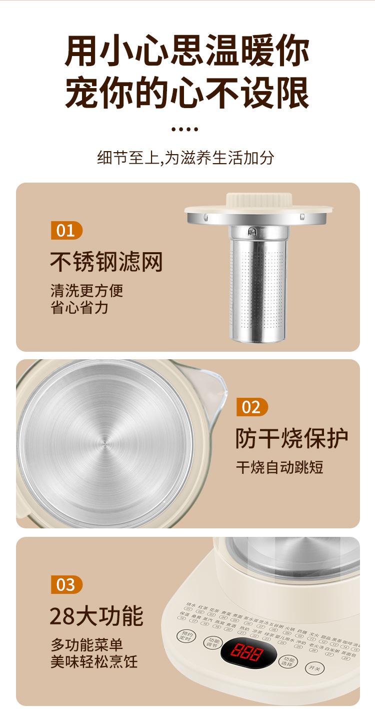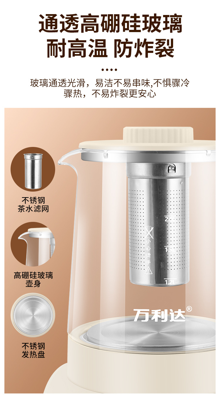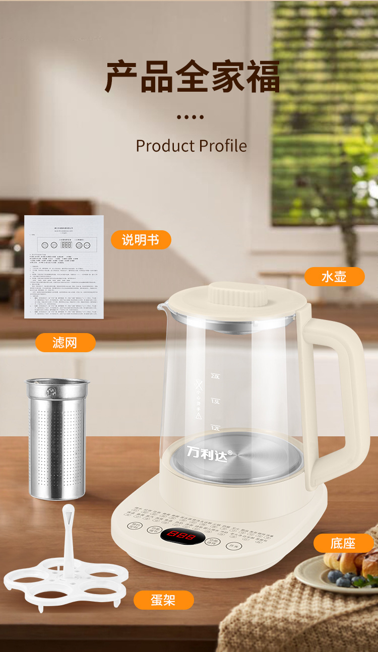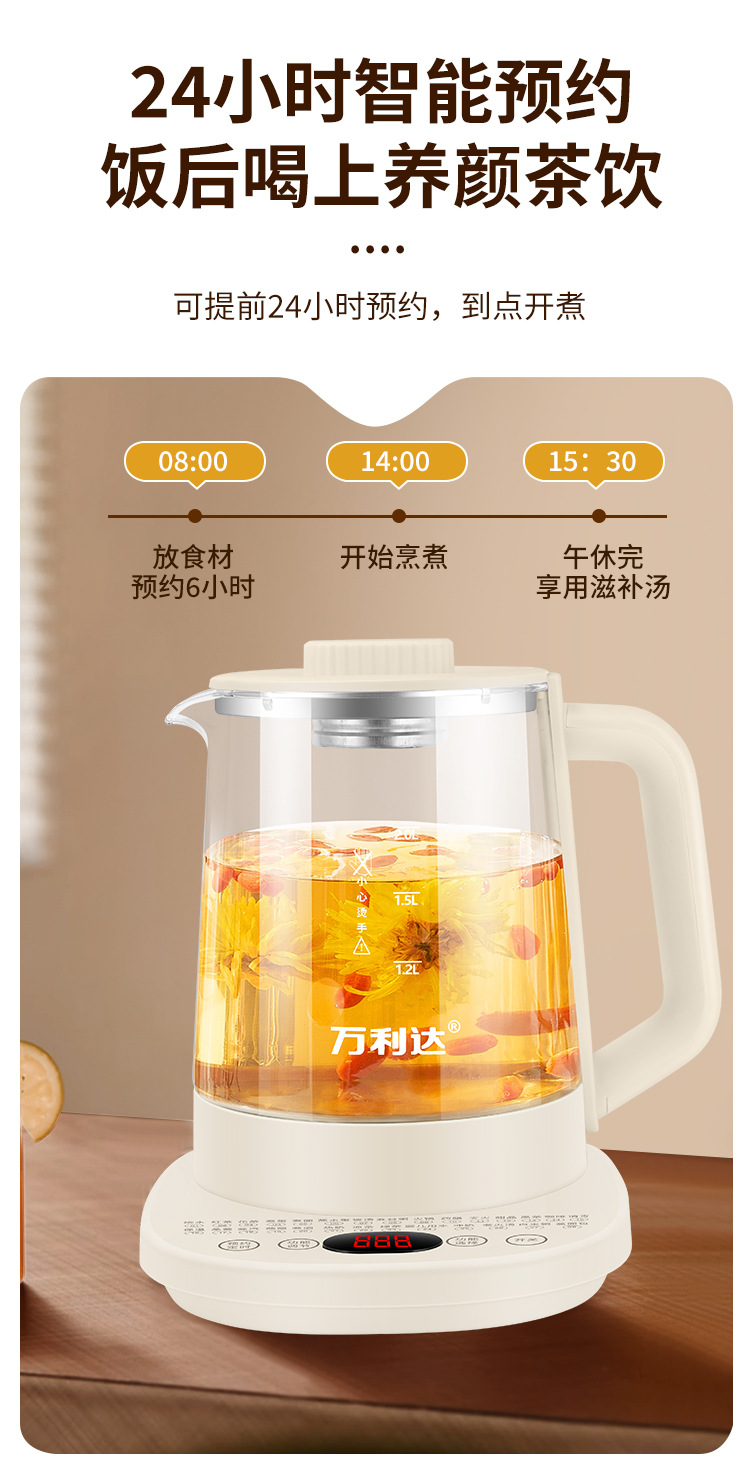万利达养生壶2.0L大容量多功能煎药壶全自动办公室烧水壶煮花茶壶