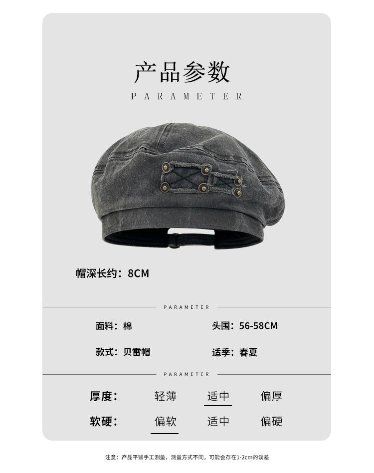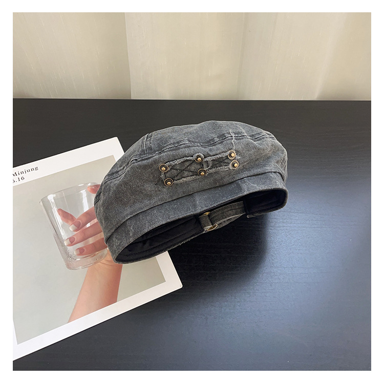 复古做旧水洗牛仔贝雷帽子女春夏季2025新款文艺百搭显脸小画家帽