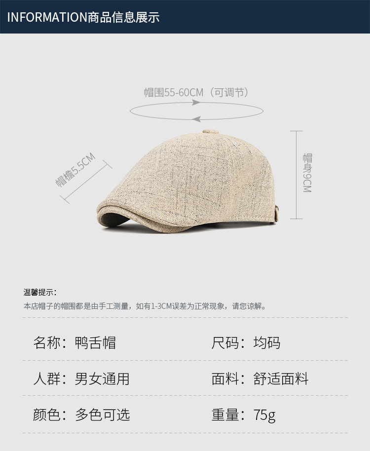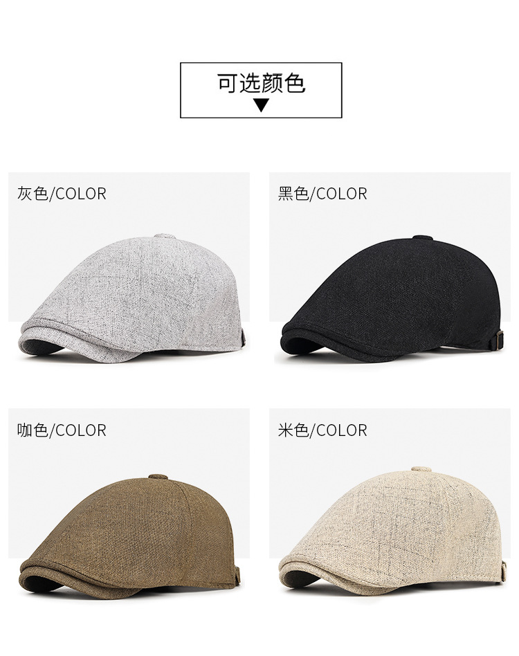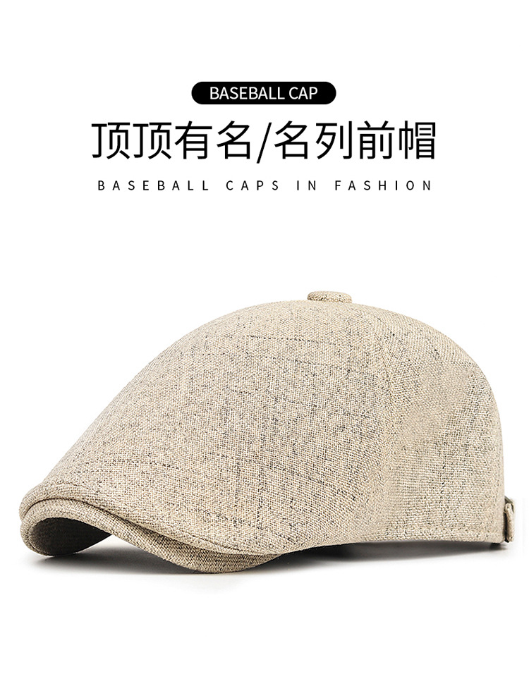 跨境亚麻韩版纯色前进帽春夏季女士复古鸭舌帽男士休闲百搭贝雷帽