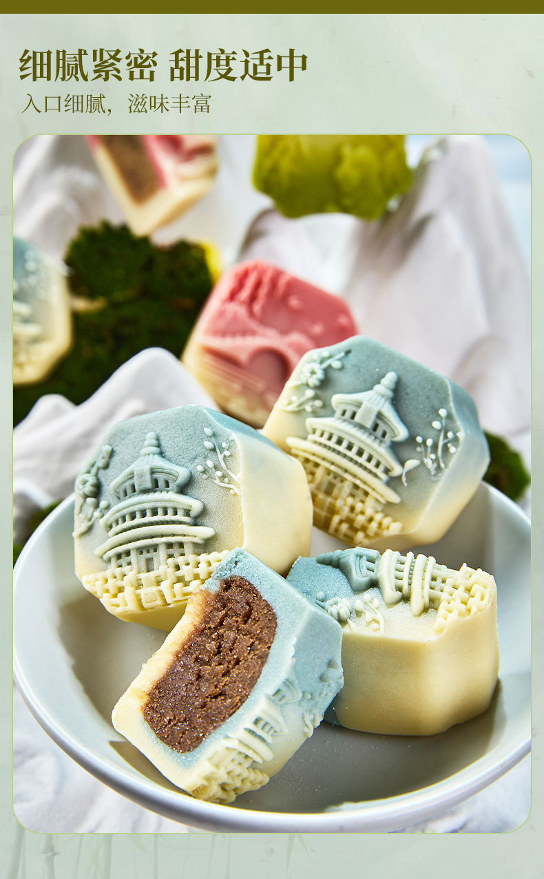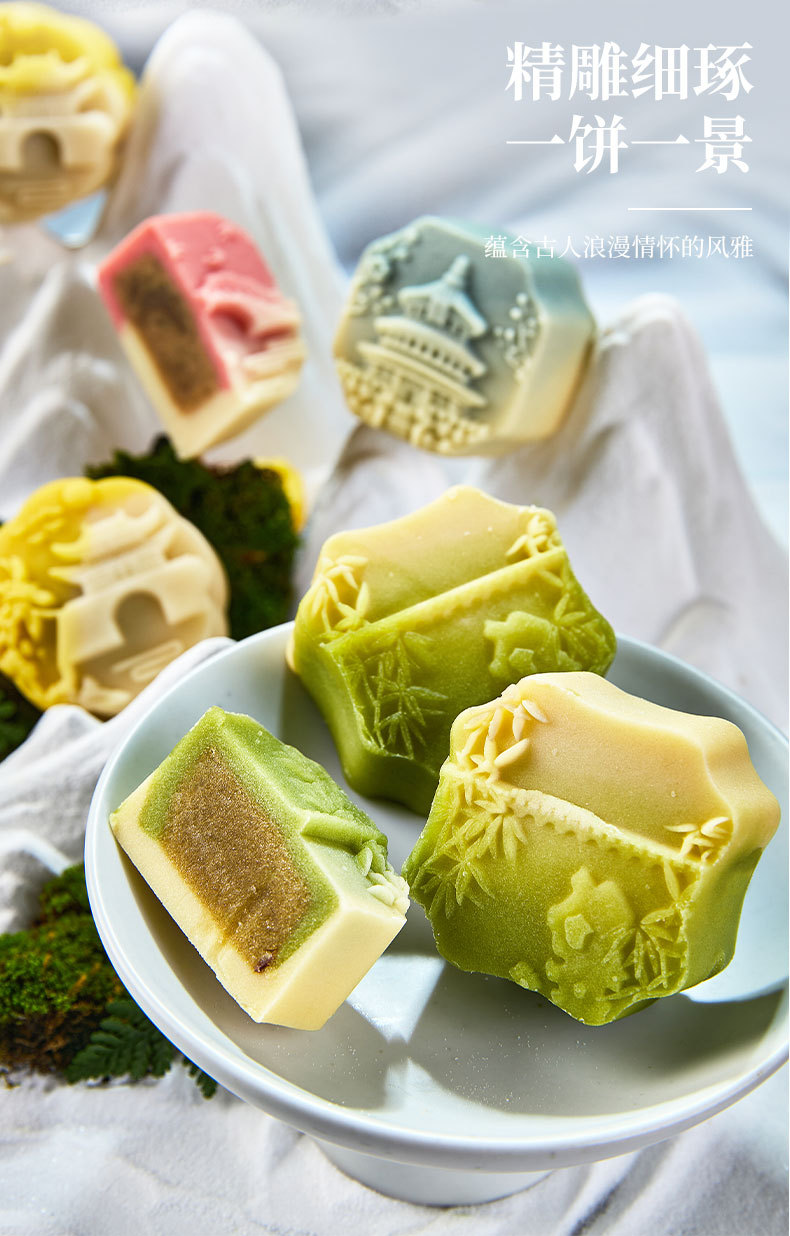 桃山皮月饼代工定制豆沙黑芝麻味中秋月饼礼盒渐变色月饼贴牌加工