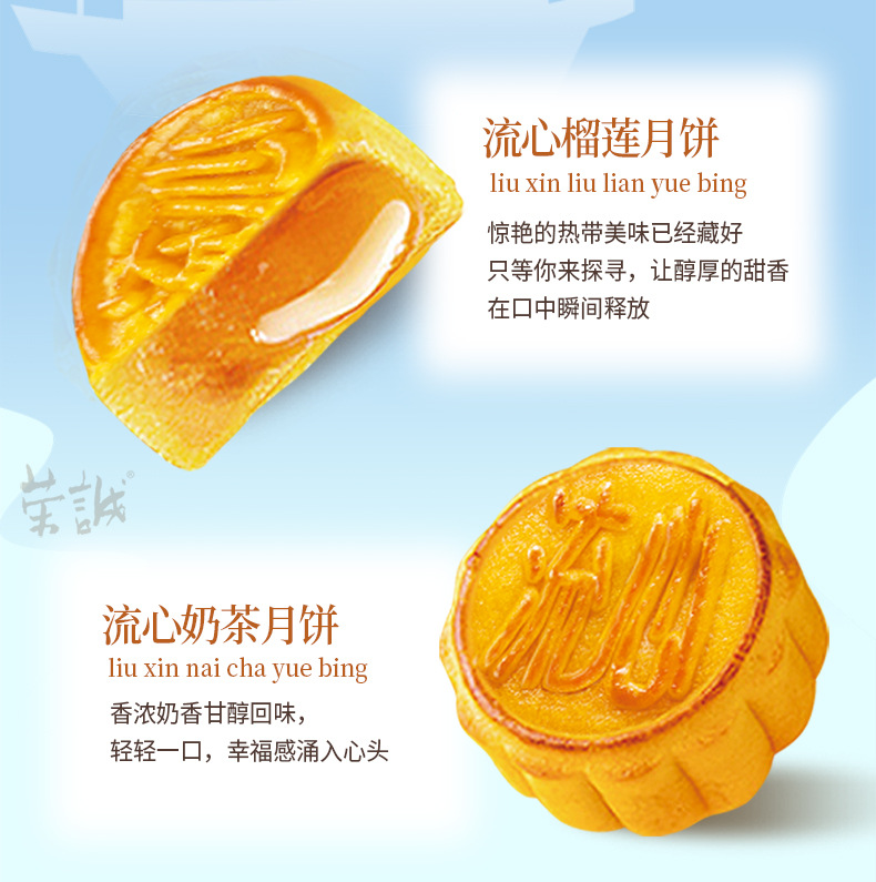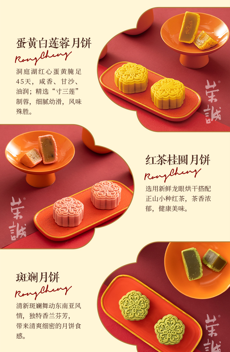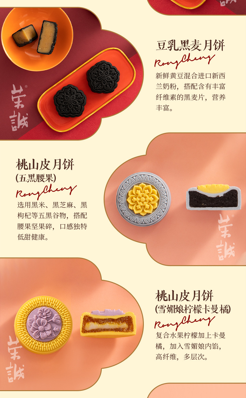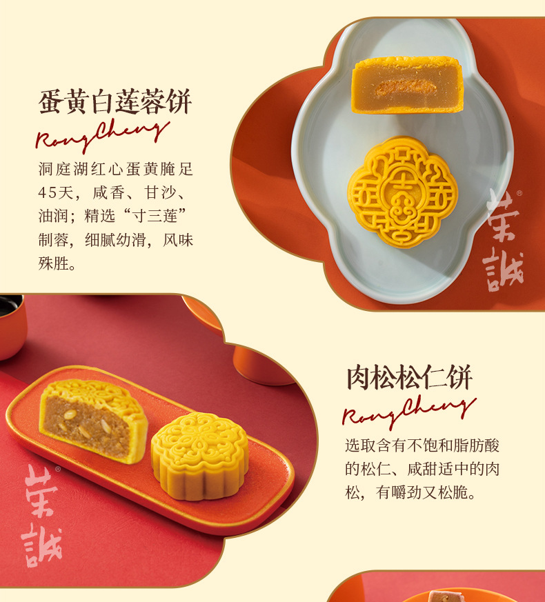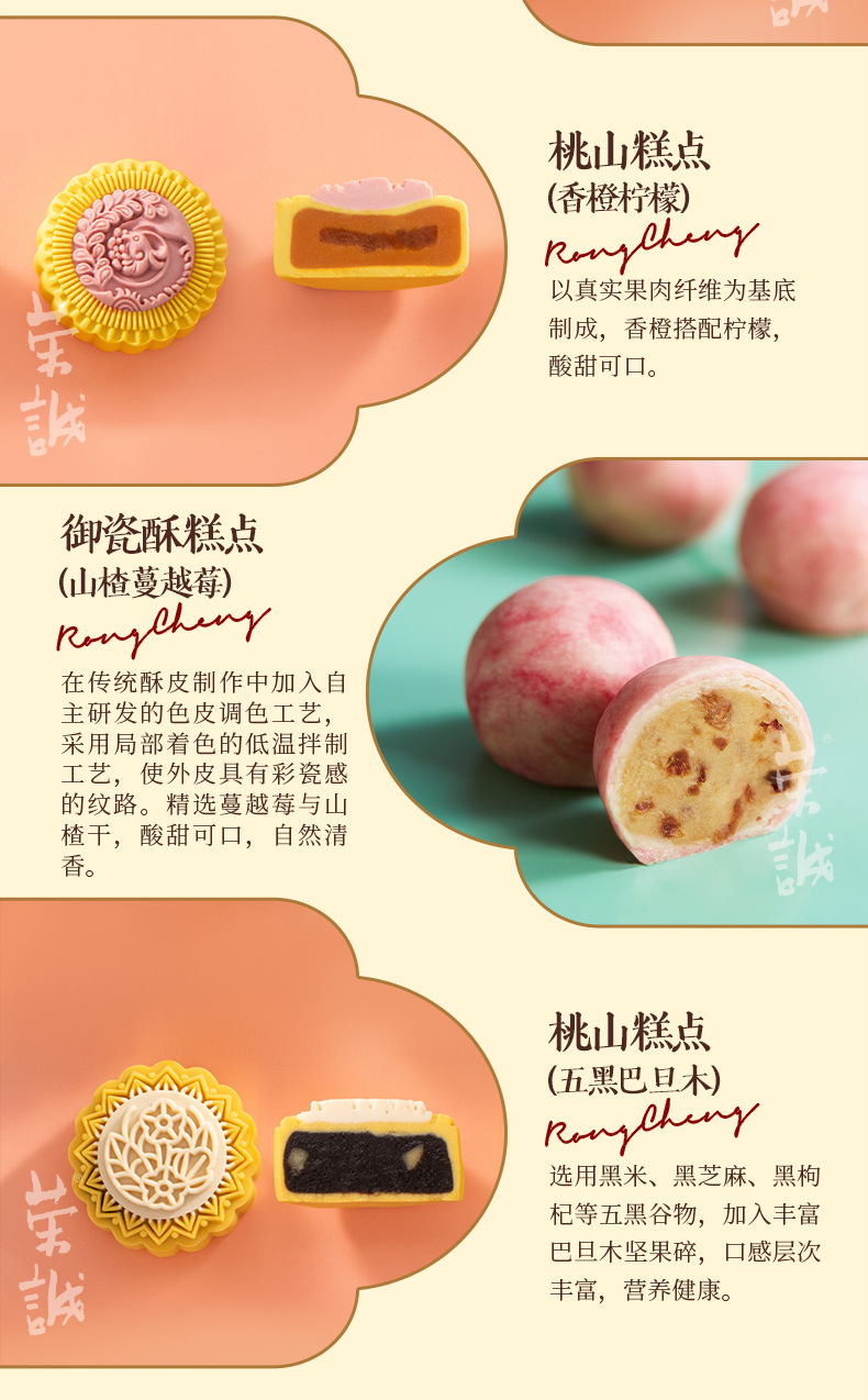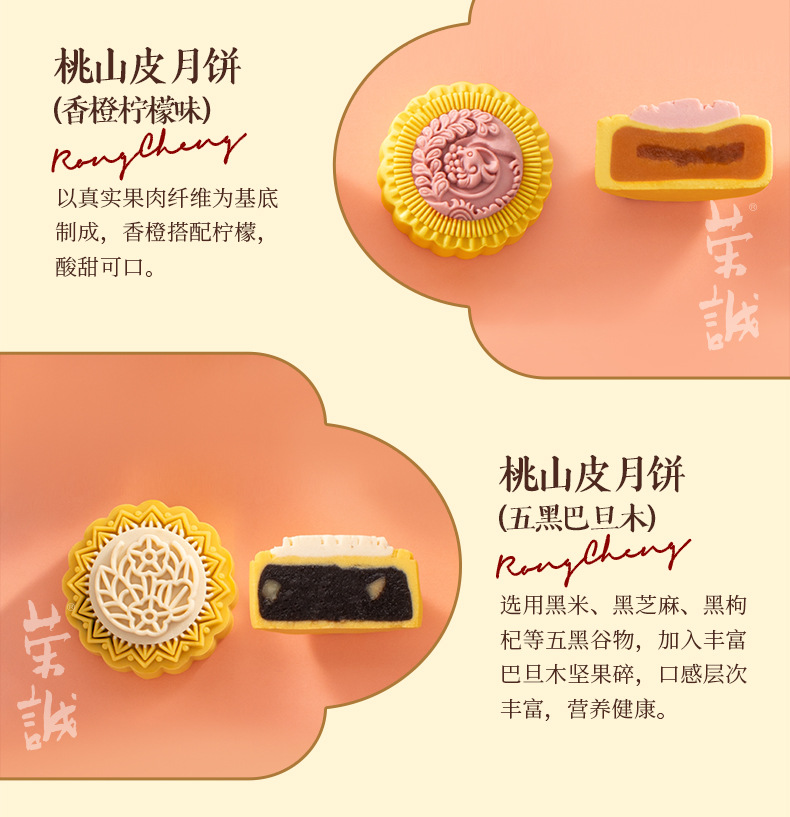 中秋节荣诚月饼桃山皮彩皮潮式蛋黄月饼高级感公司团购批发礼盒装