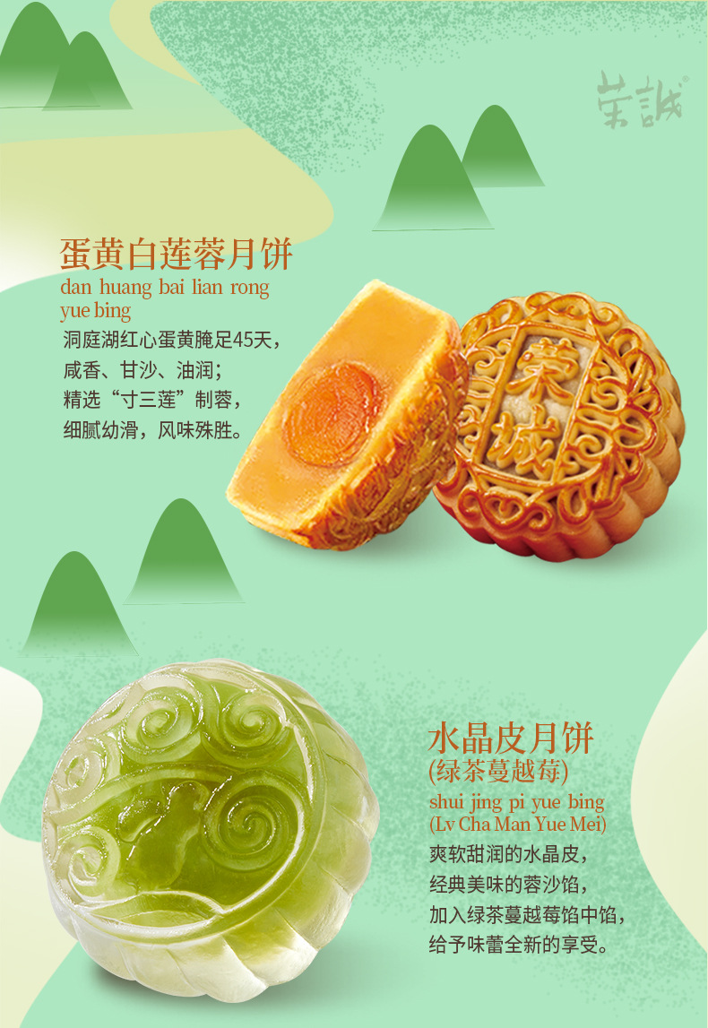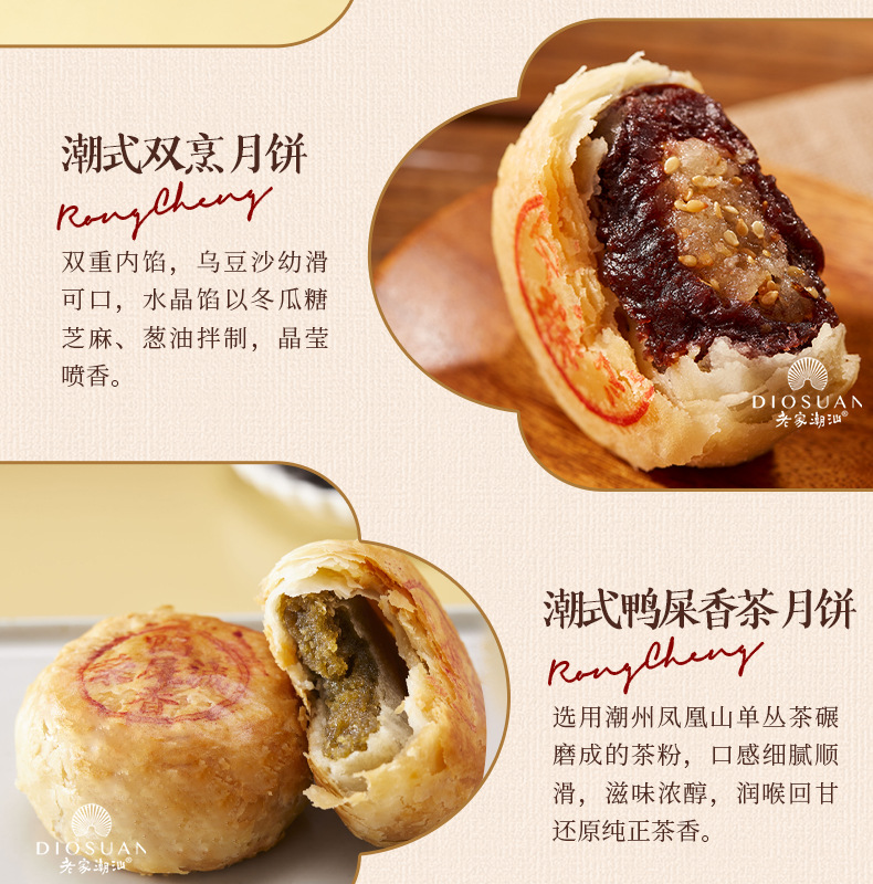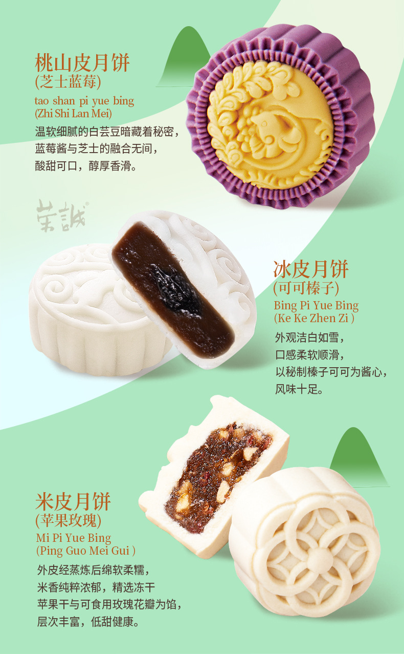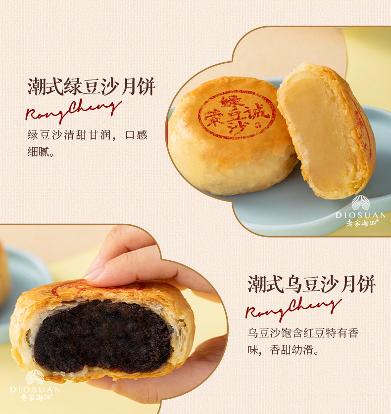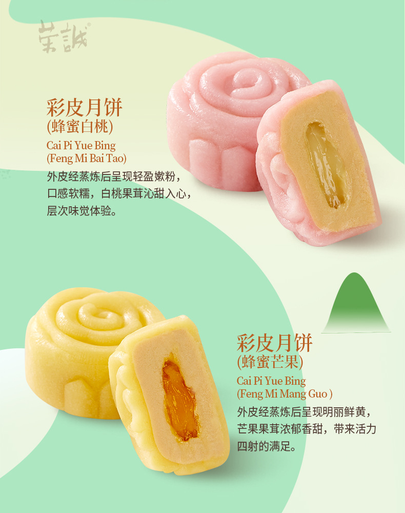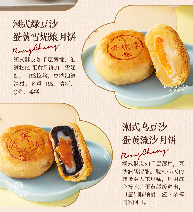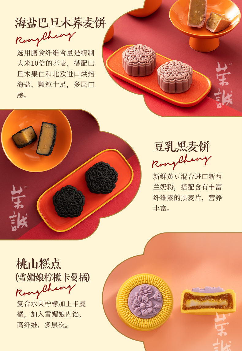 中秋节荣诚月饼桃山皮彩皮潮式蛋黄月饼高级感公司团购批发礼盒装