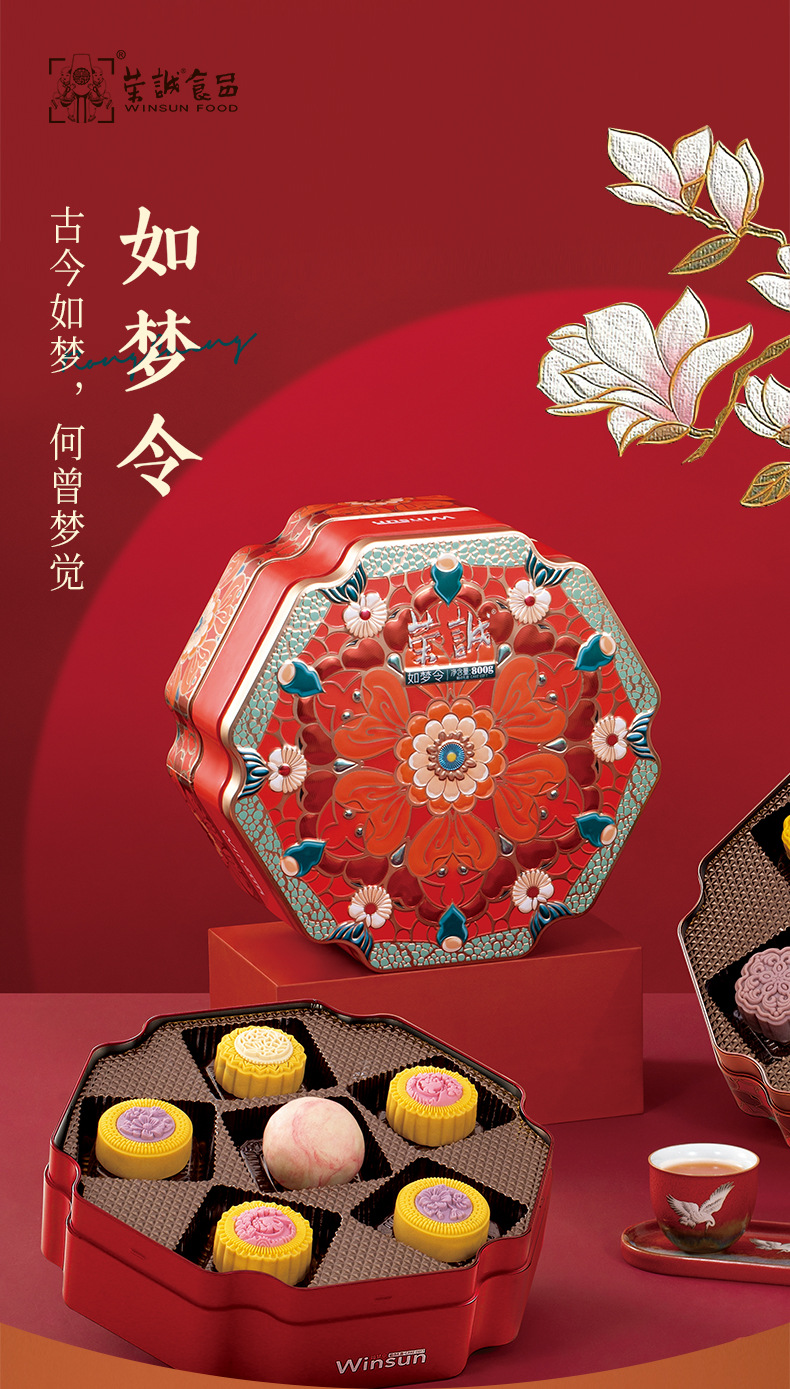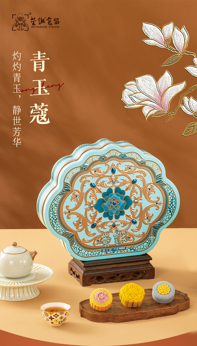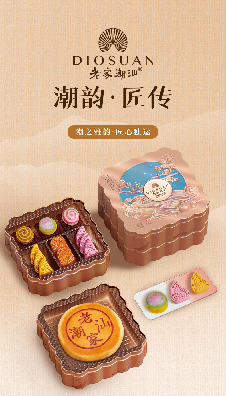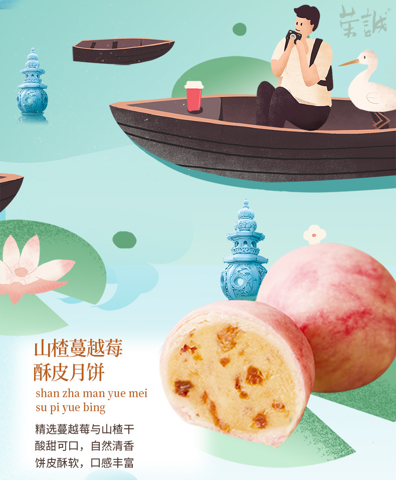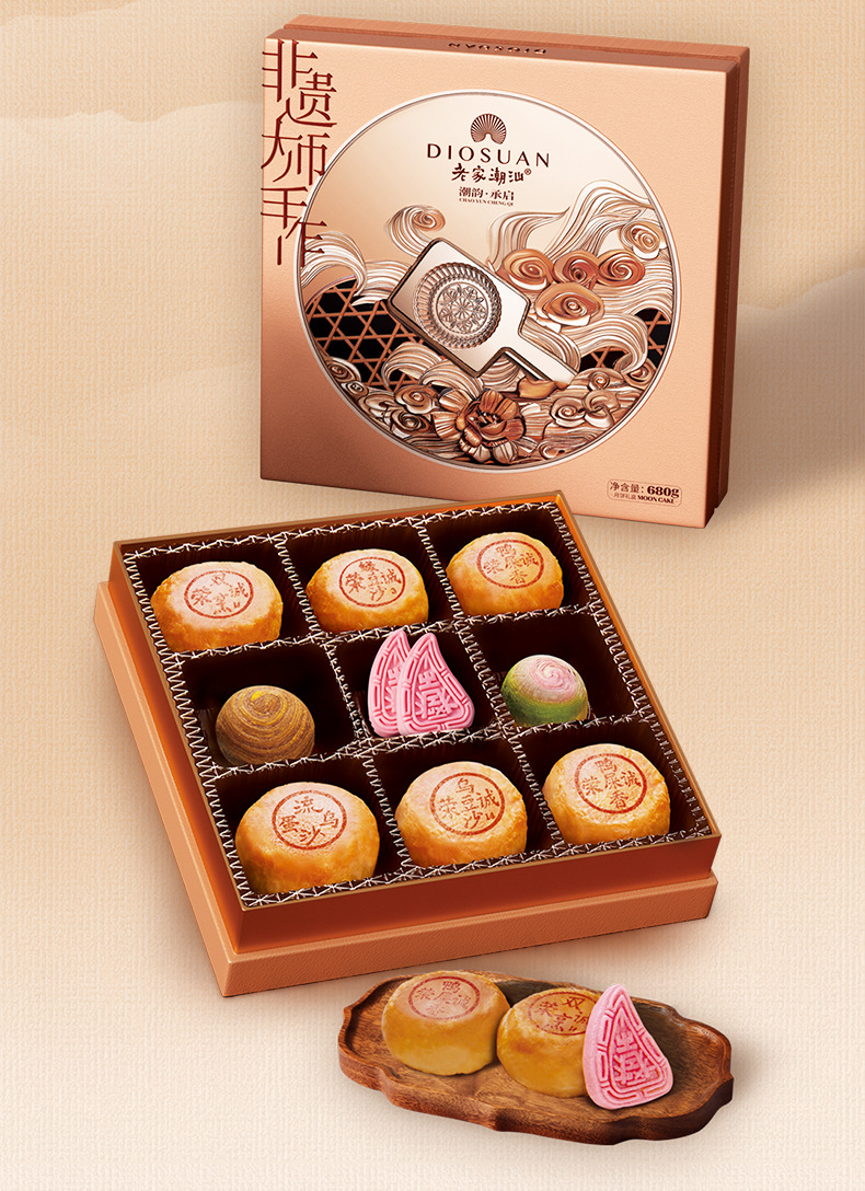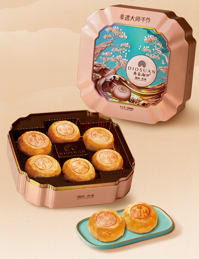 中秋节荣诚月饼桃山皮彩皮潮式蛋黄月饼高级感公司团购批发礼盒装
