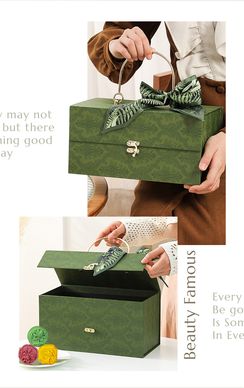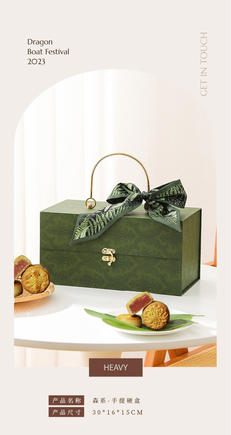 中秋月饼包装盒高档广式桃山皮流心酒店公司礼盒员工绿色丝带企业