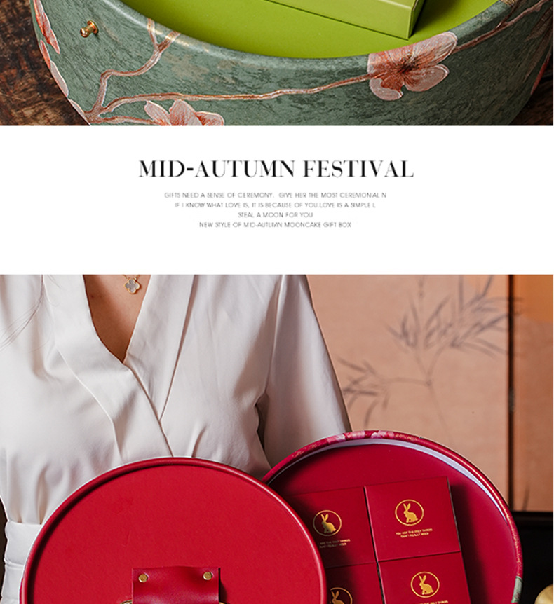 盒2025中秋节月饼包装盒中国风手提圆桶硬盒子冰皮流心蛋黄酥礼盒