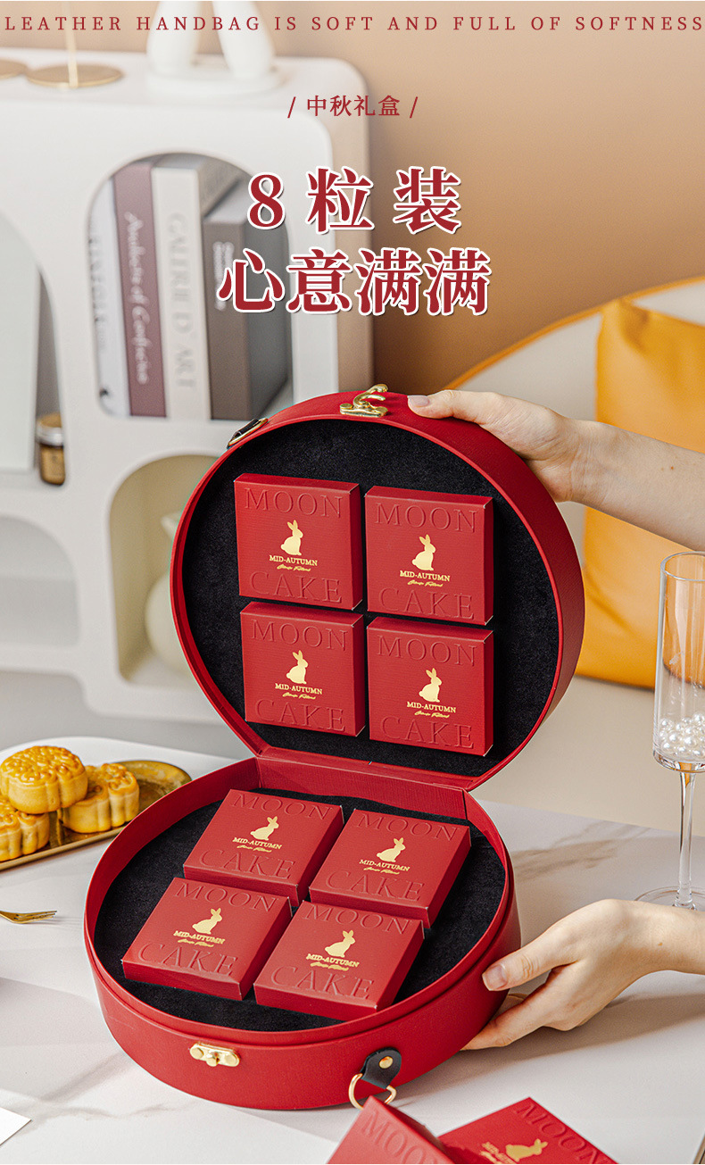 现货中秋节月饼礼盒8粒装高档红色包装盒定批货制2025年新款盒子