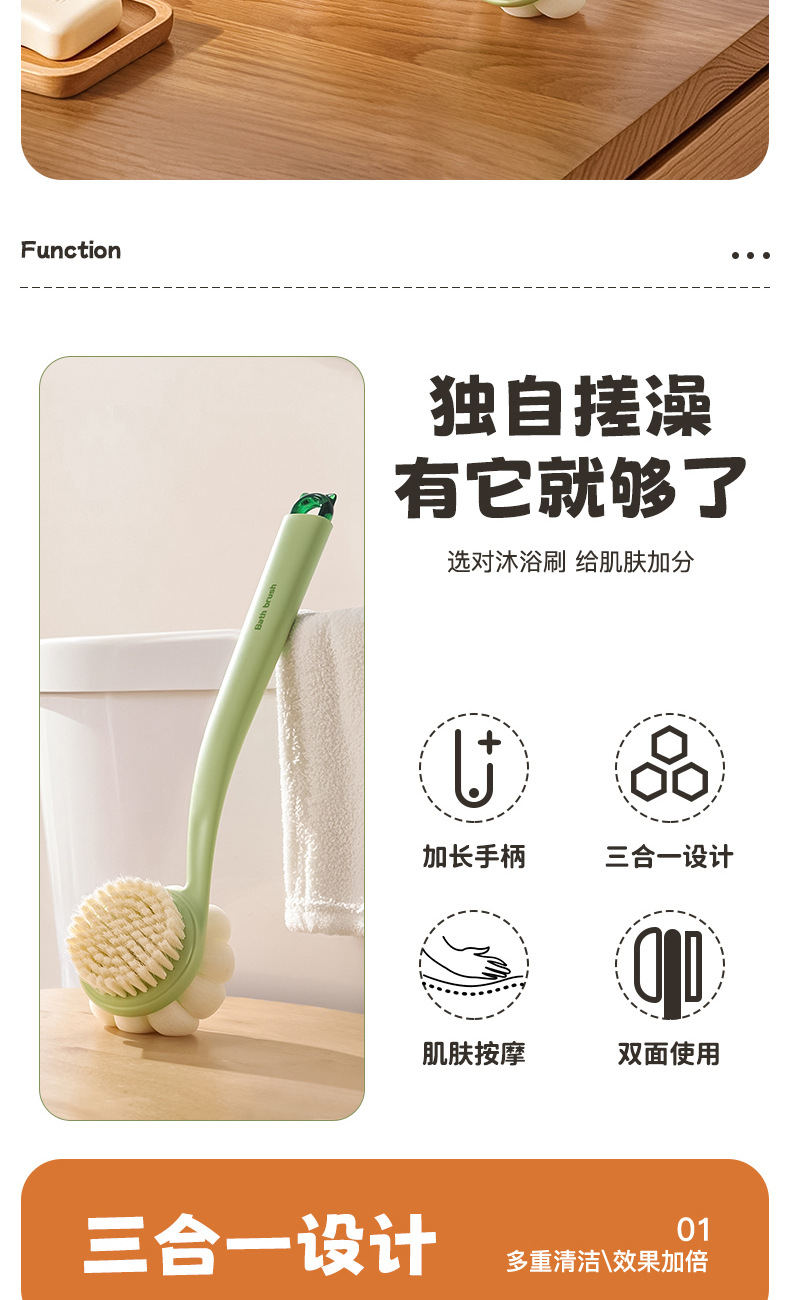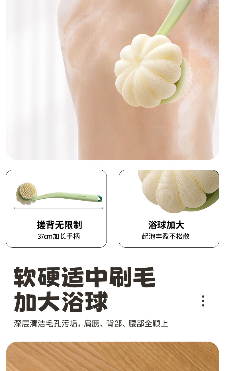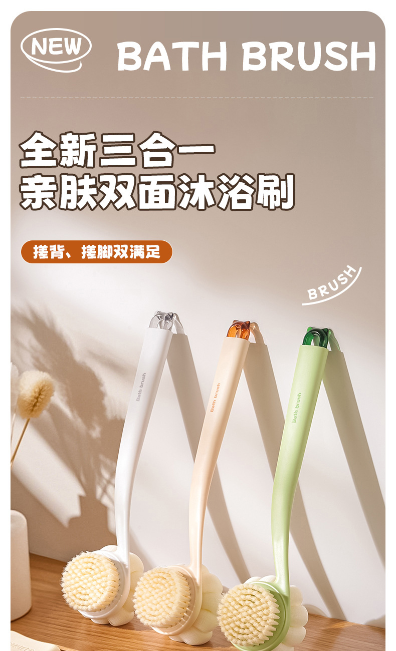 三合一双面洗澡刷长柄软毛搓背多功能沐浴刷家用悬挂式网红搓澡刷