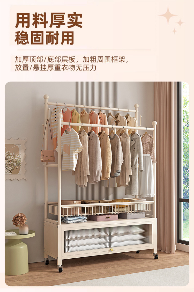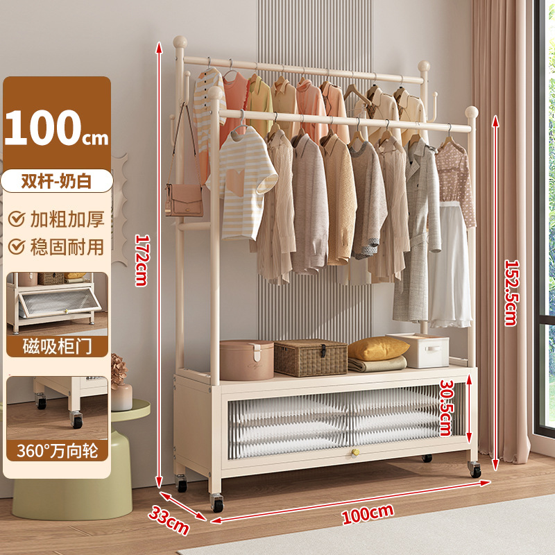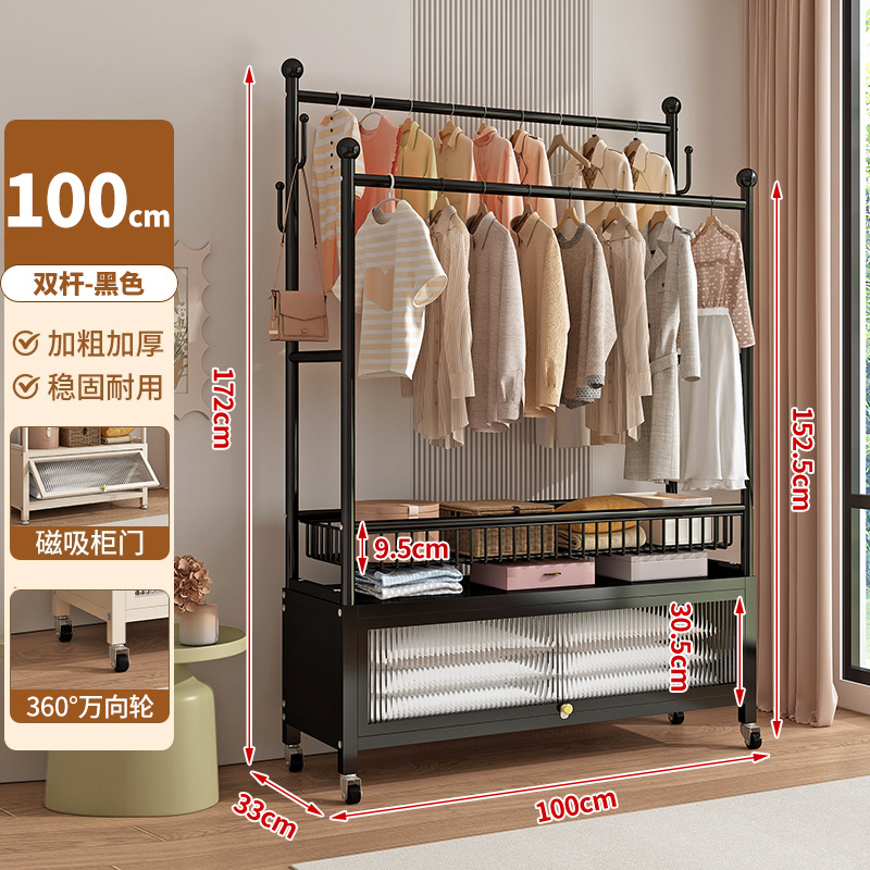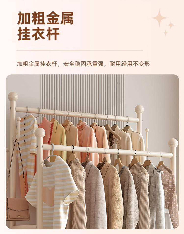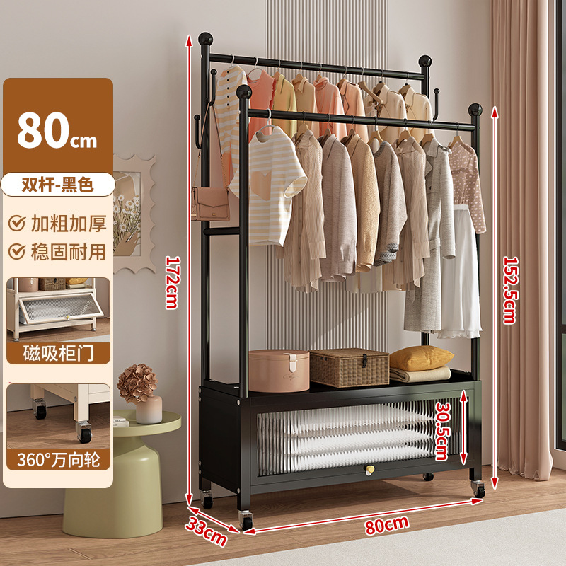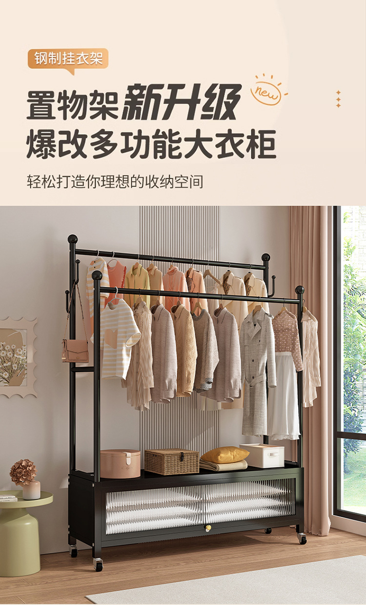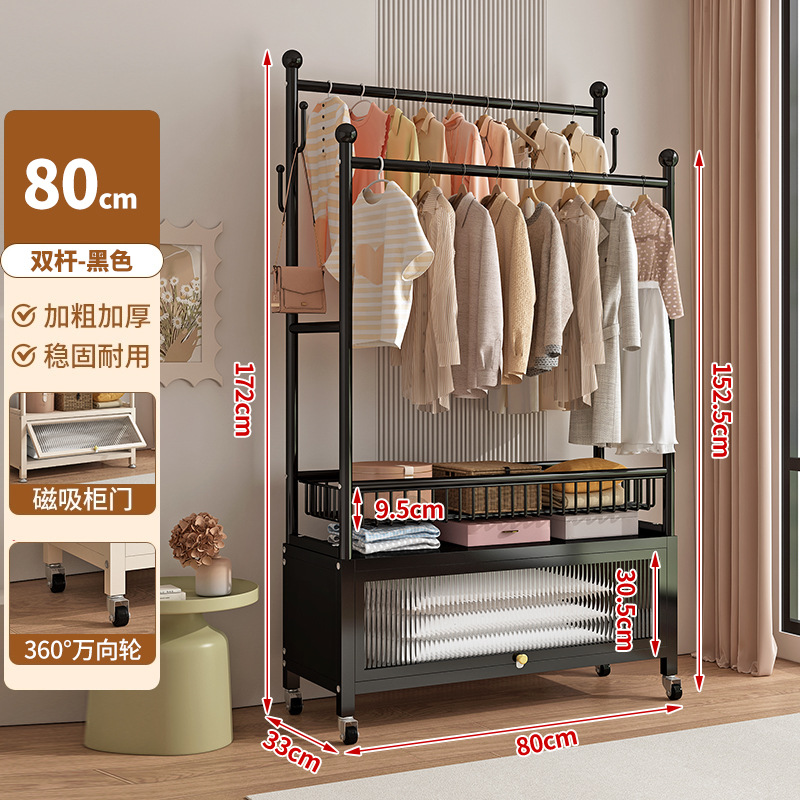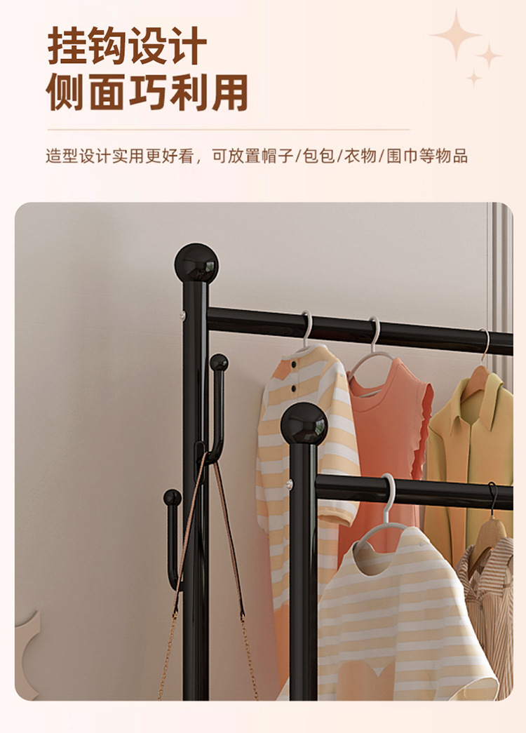 挂衣架落地卧室家用可移动挂衣服架子室内双杆晾衣架多功能衣帽架