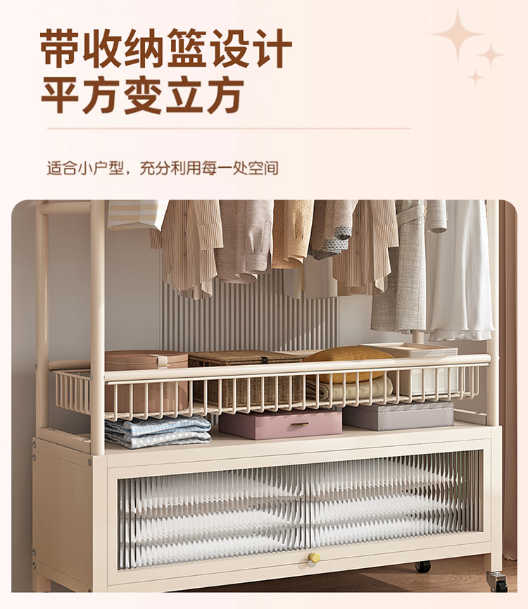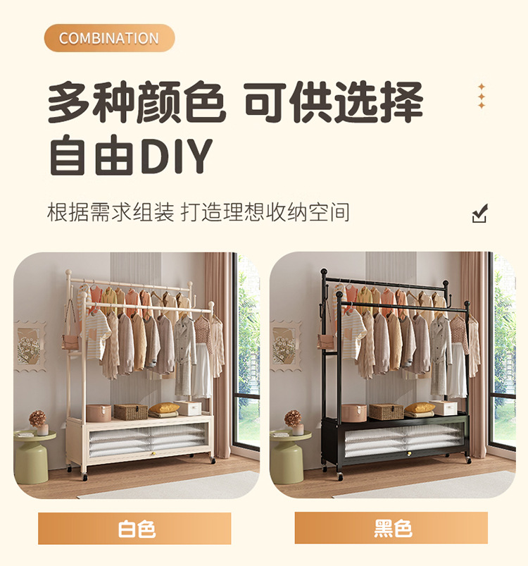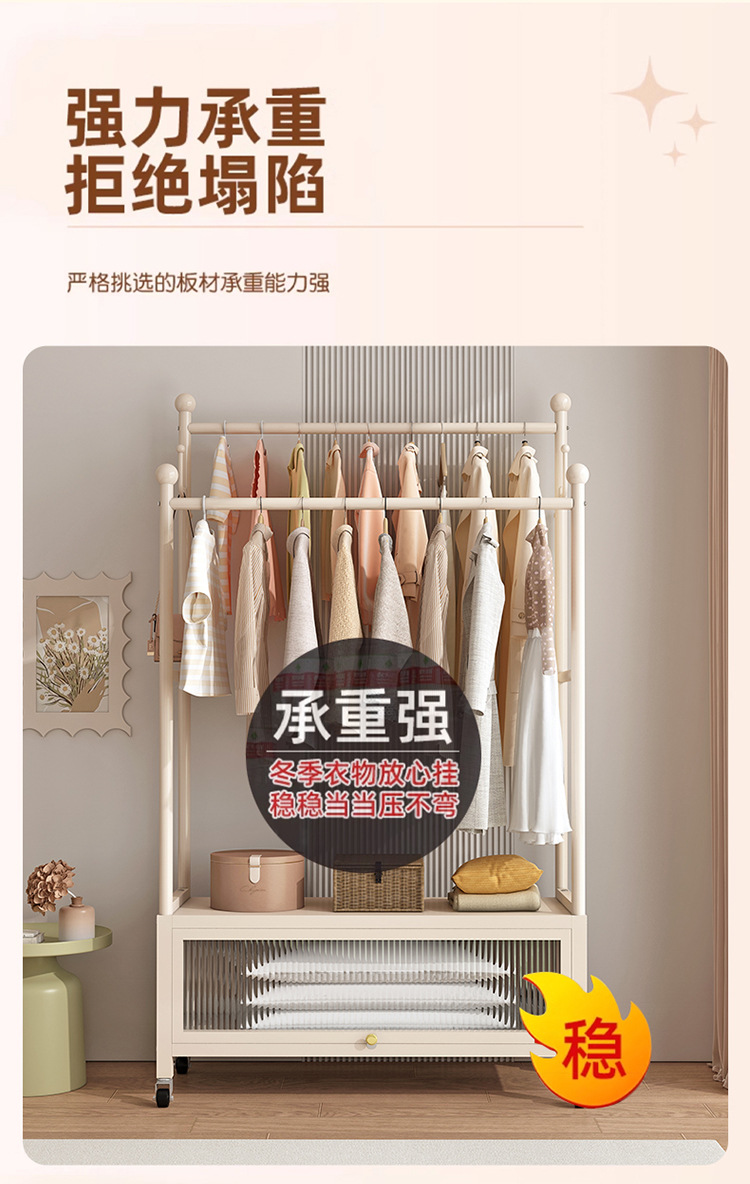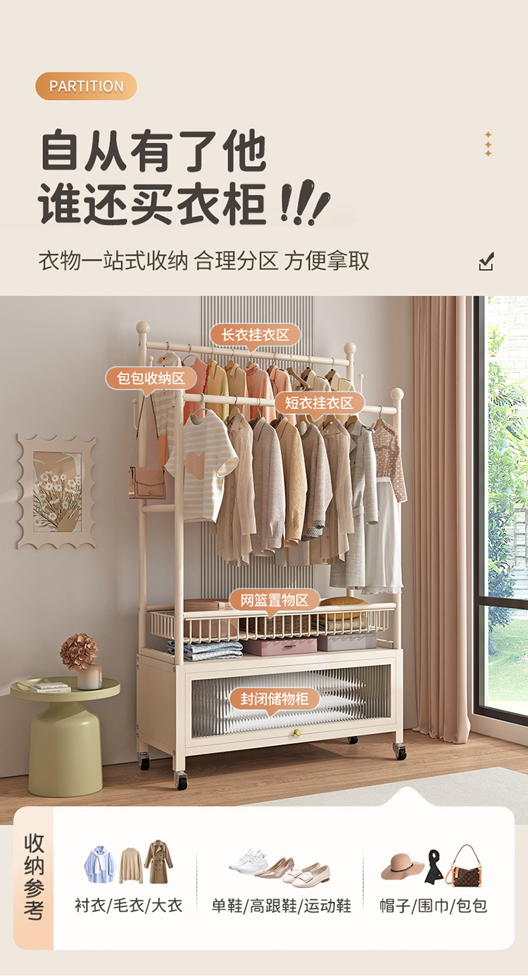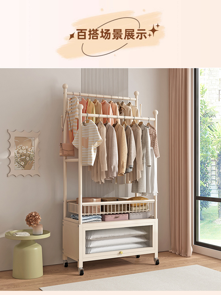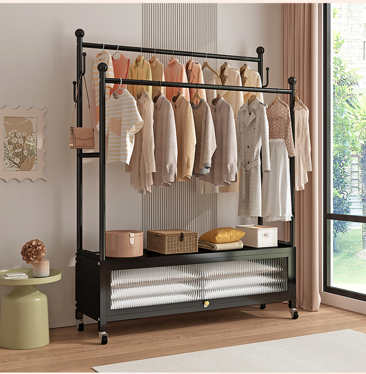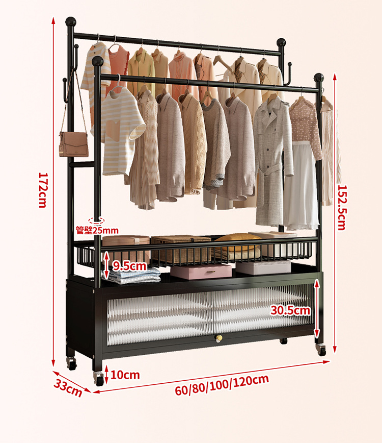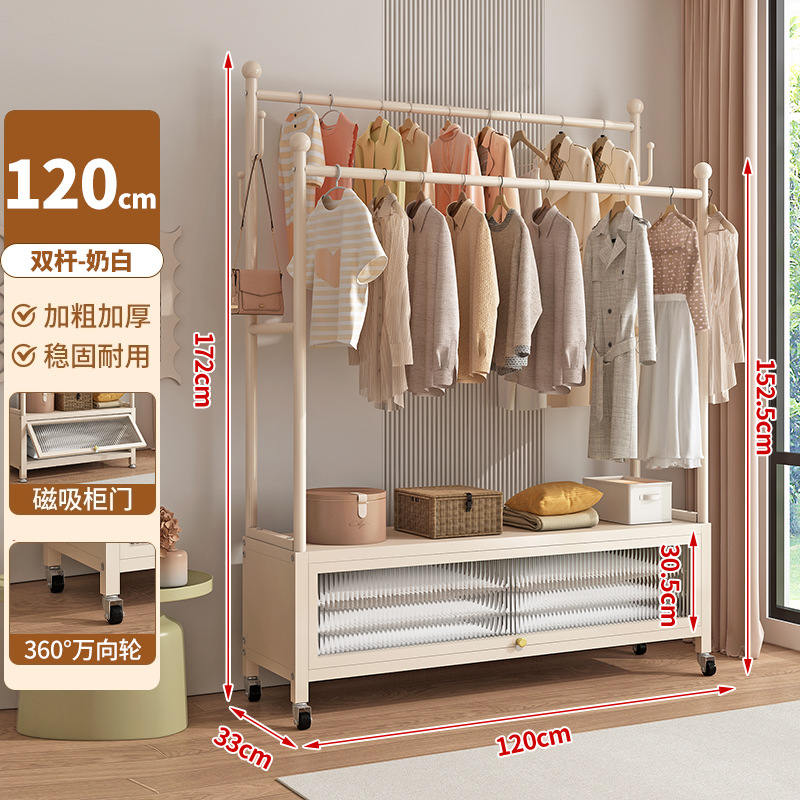 挂衣架落地卧室家用可移动挂衣服架子室内双杆晾衣架多功能衣帽架