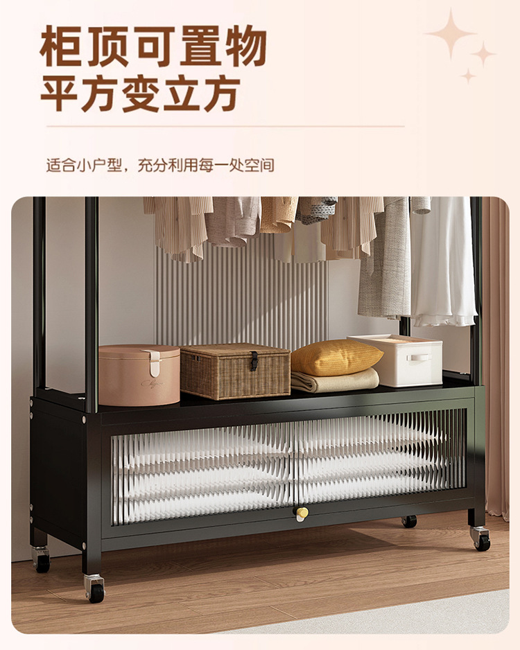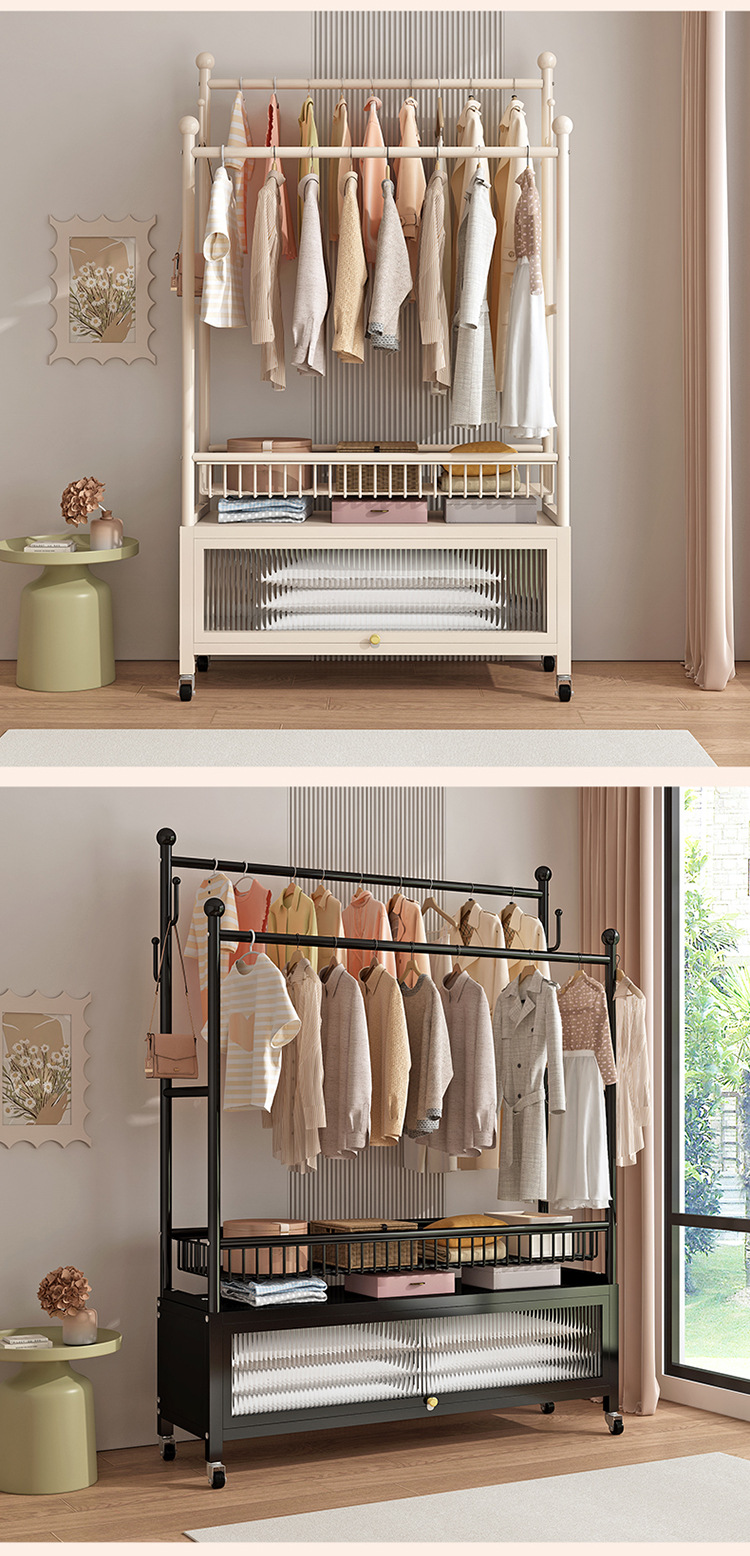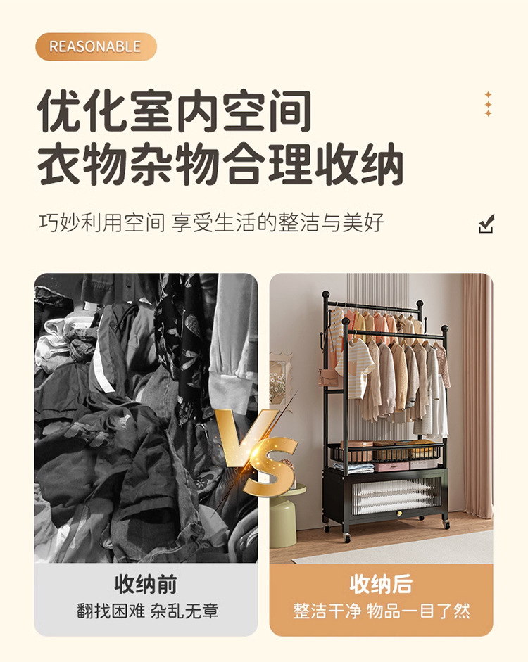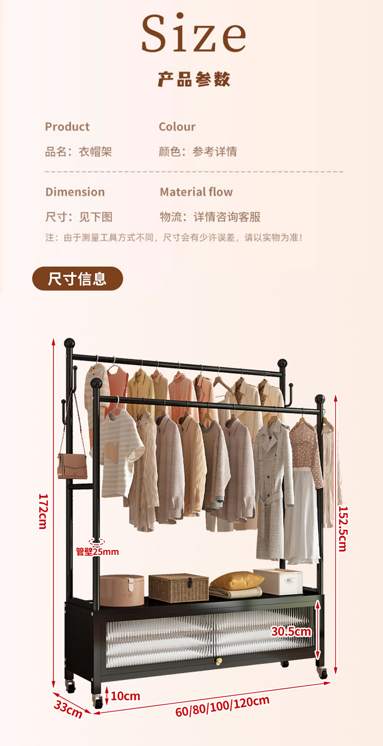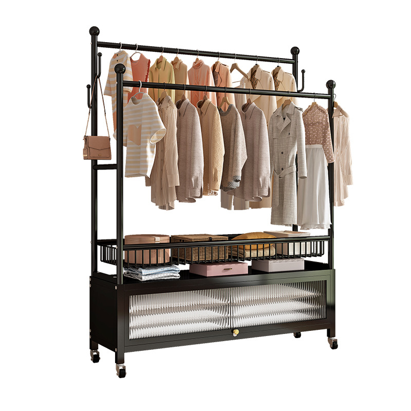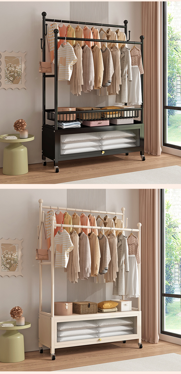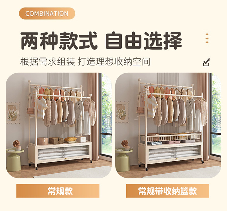 挂衣架落地卧室家用可移动挂衣服架子室内双杆晾衣架多功能衣帽架