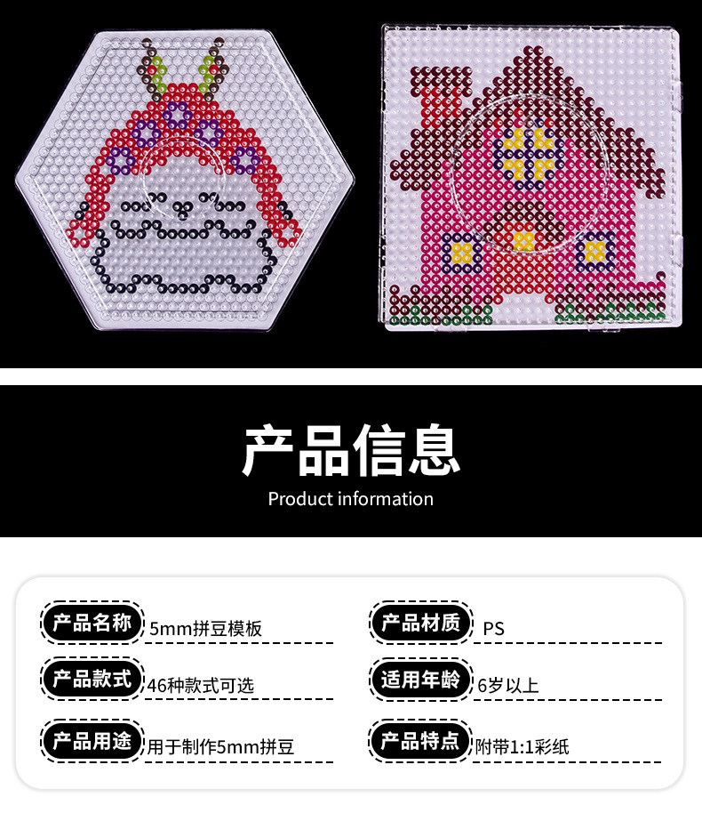 5mm拼豆模板配件底座 儿童益智DIY拼图几何模板圆形大四方可拼接