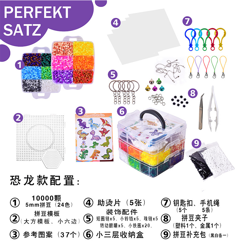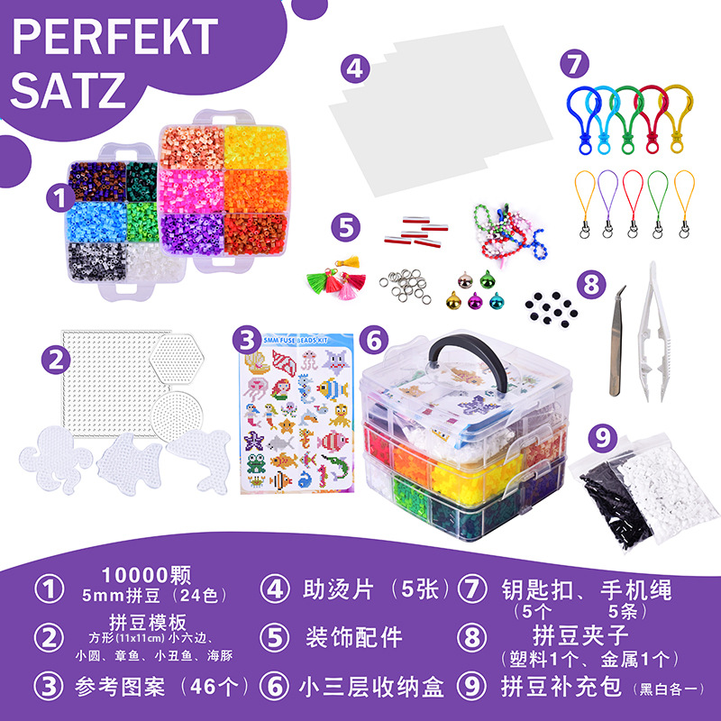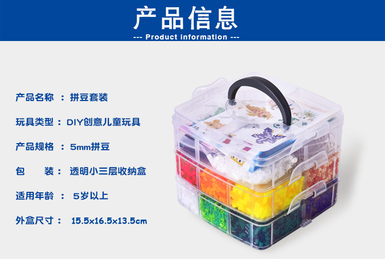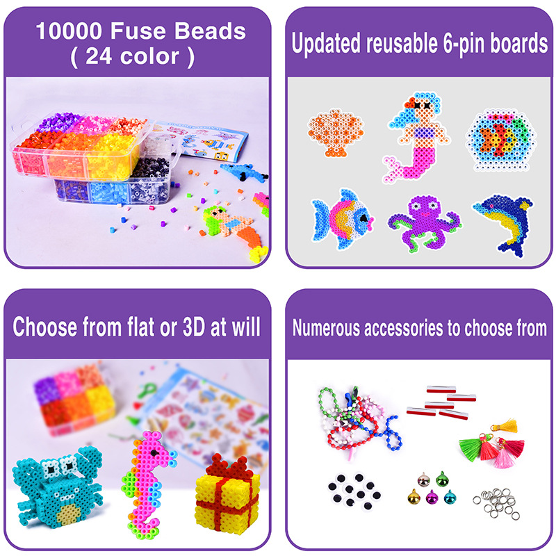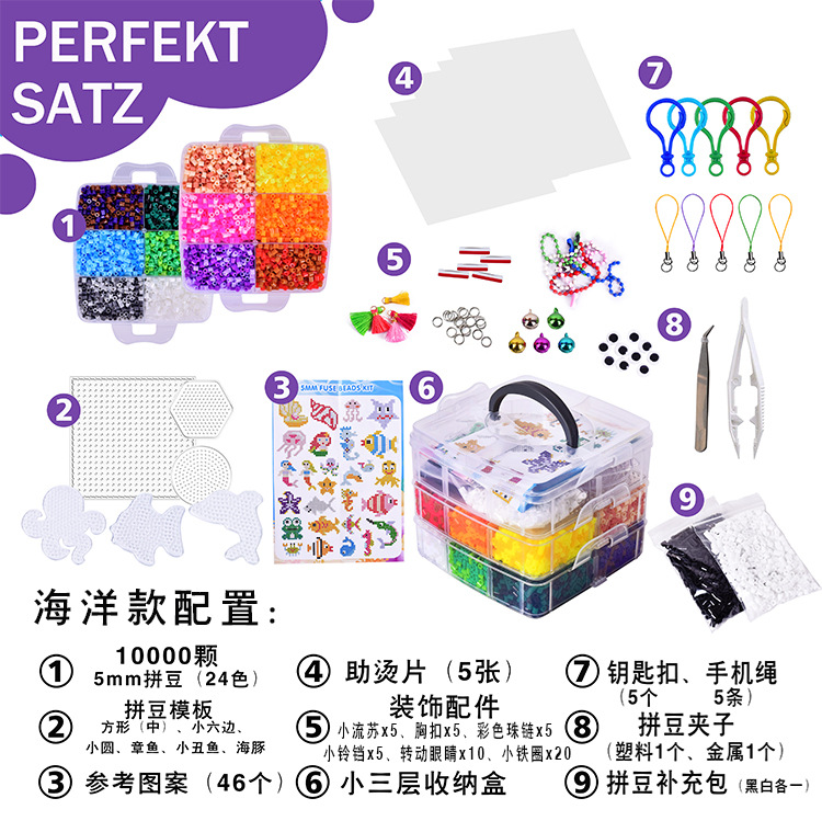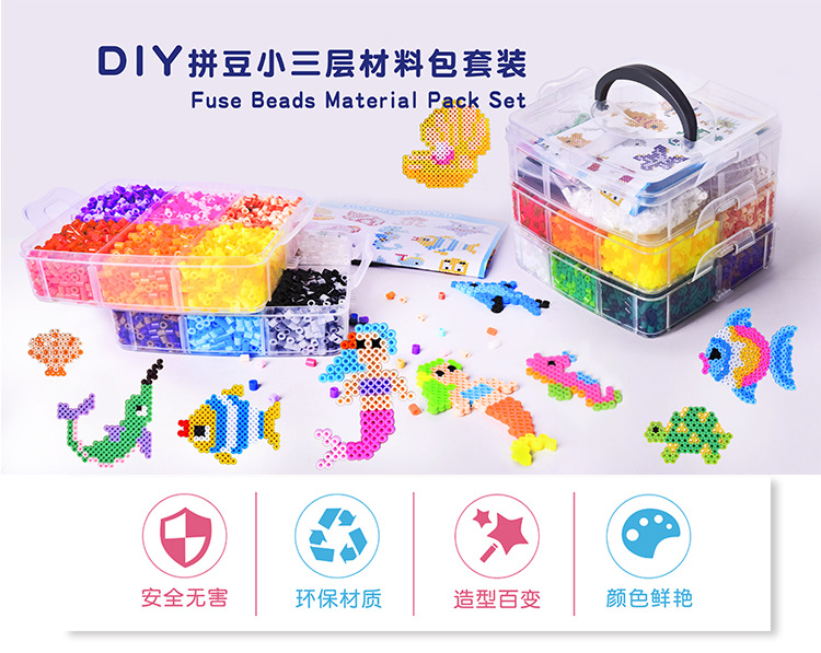 亚马逊热销海洋系列拼豆豆24色豪华套装儿童DIY益智亲子套装拼豆