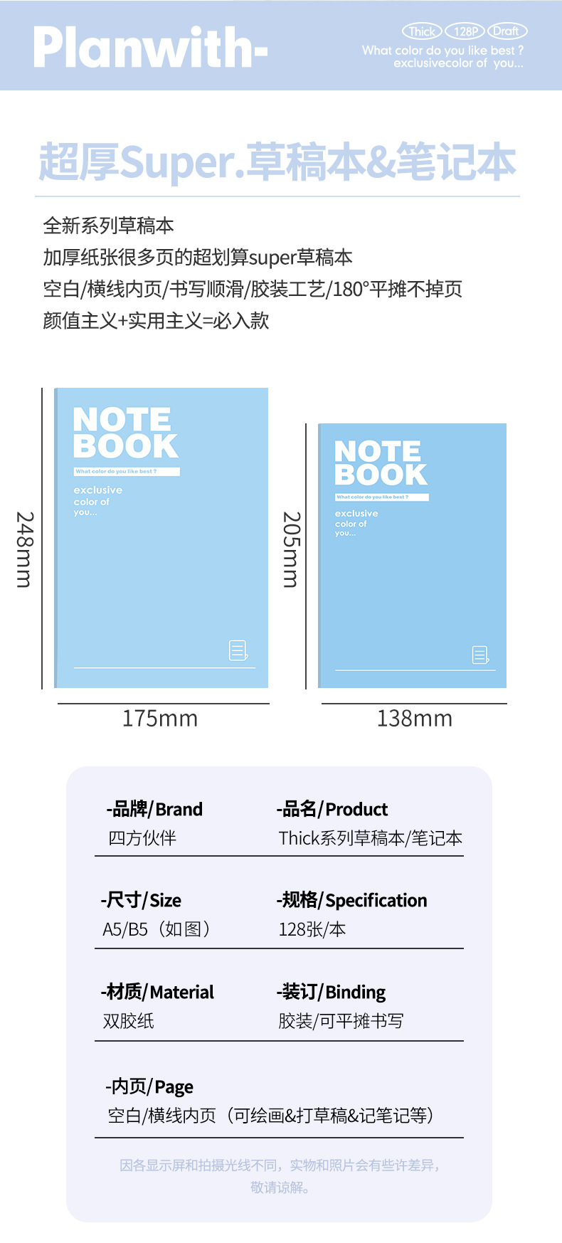 四方伙伴b5跨境笔记本a5加厚办公简约横线空白学生记事本子批发