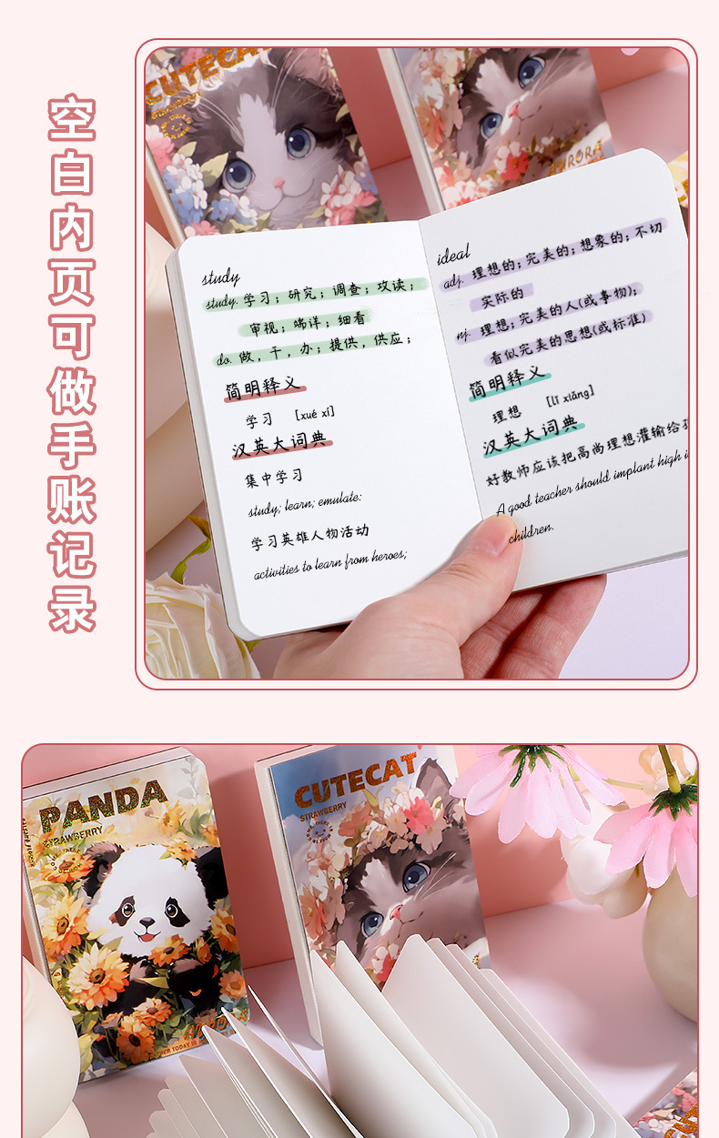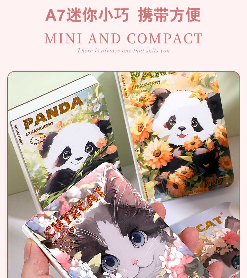四方伙伴A7空白裸背精装本迷你盖章口袋手账本学生专用记事本子