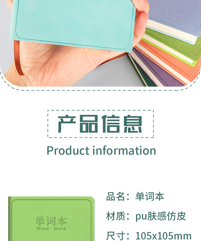 方形皮面单词本随身便携英语笔记本初高中考研艾宾浩斯英语记忆本